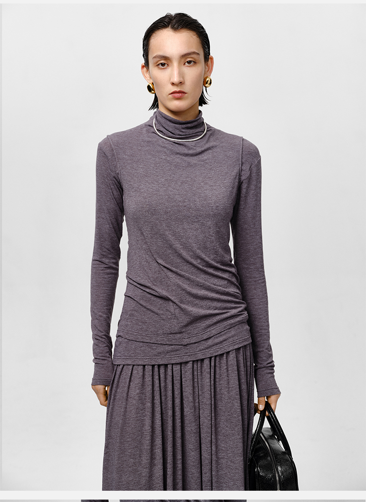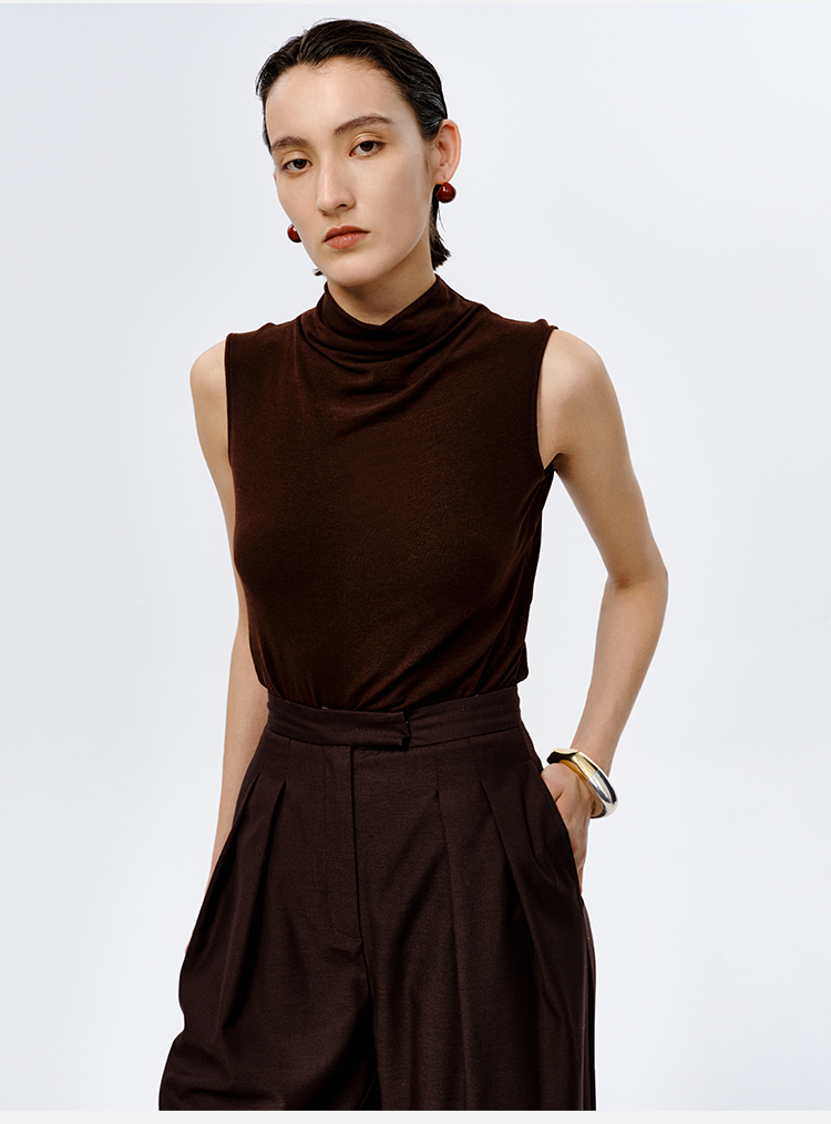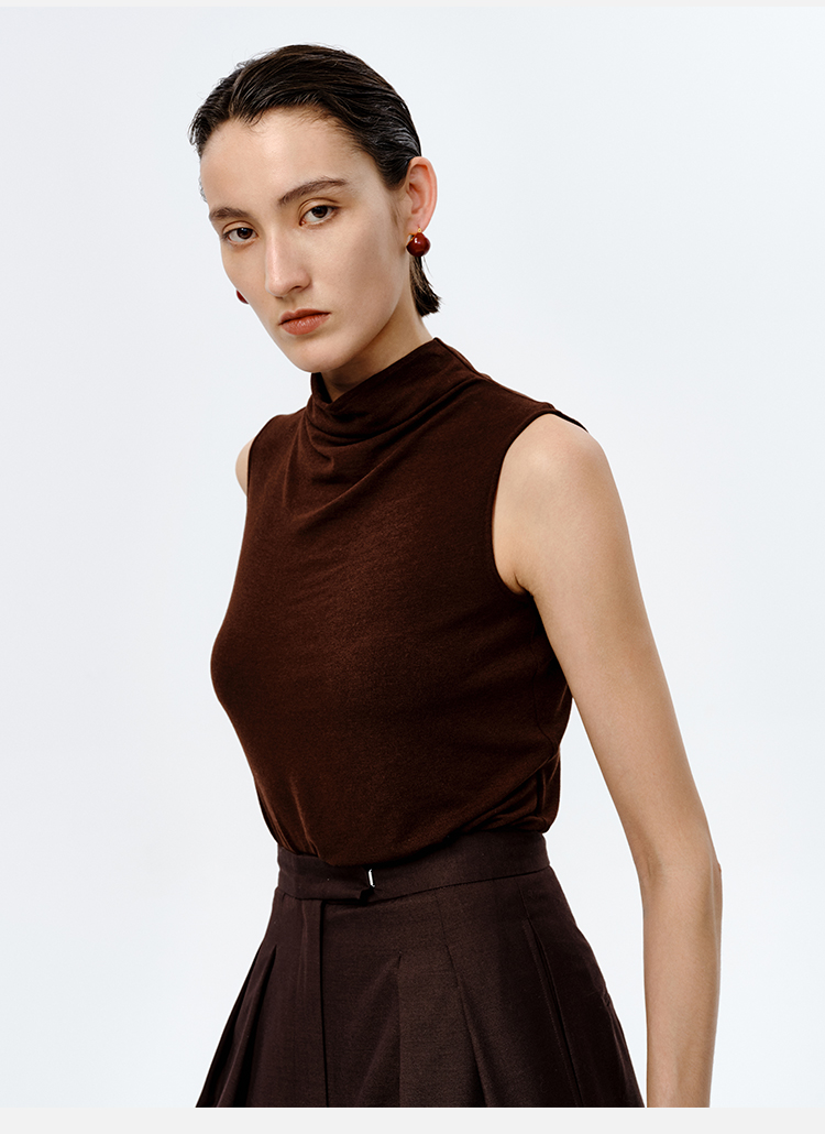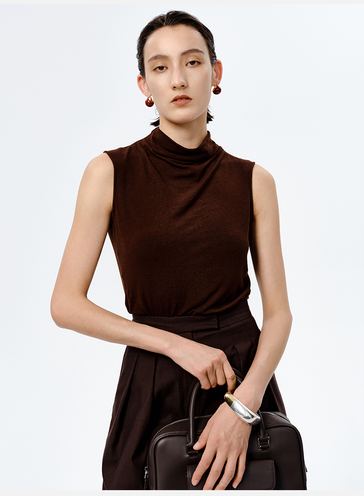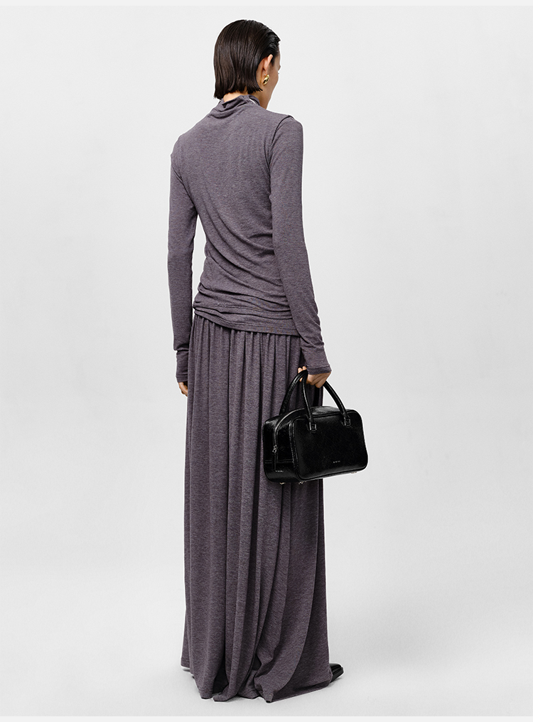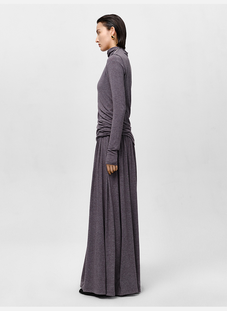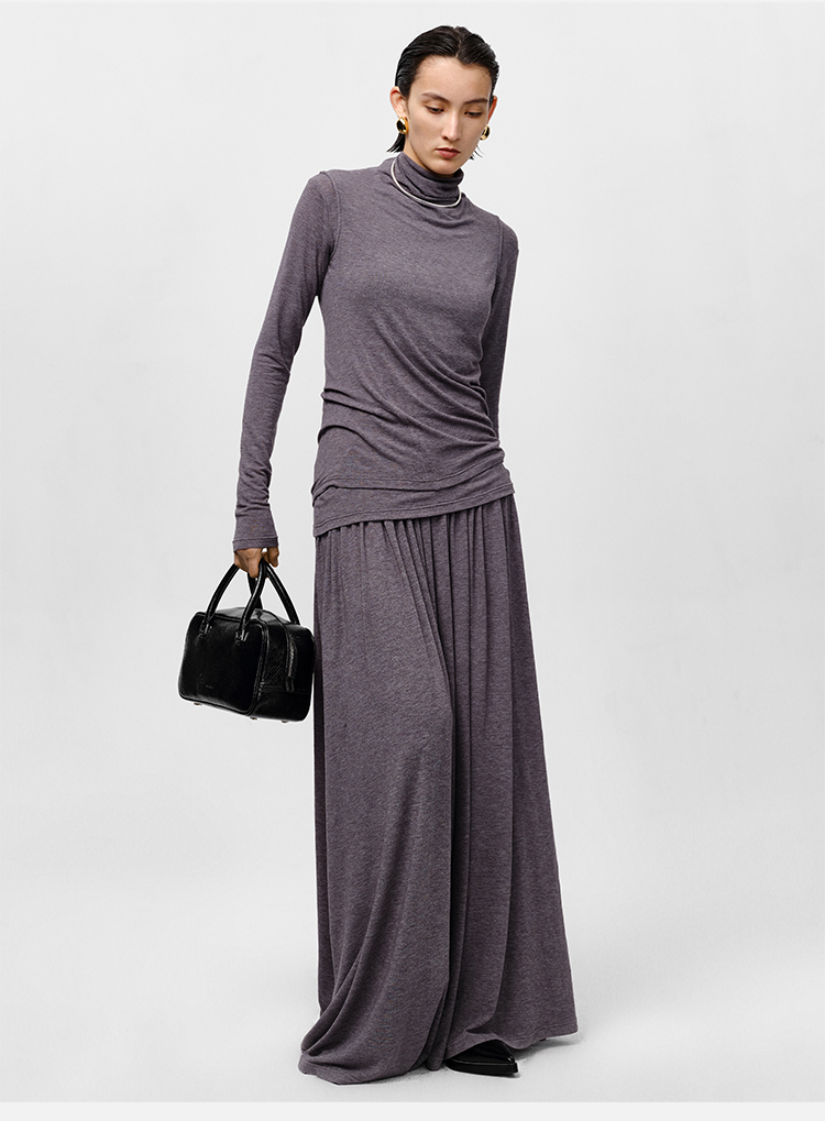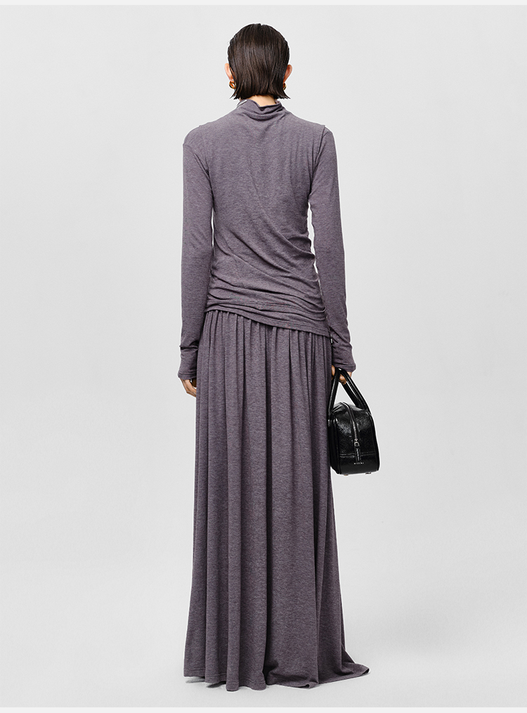 HIDEMI 【董生活同款】云朵系列亲肤柔软薄针织软糯三件套 背心/长袖上衣/百褶半身裙 灰色/巧克力色