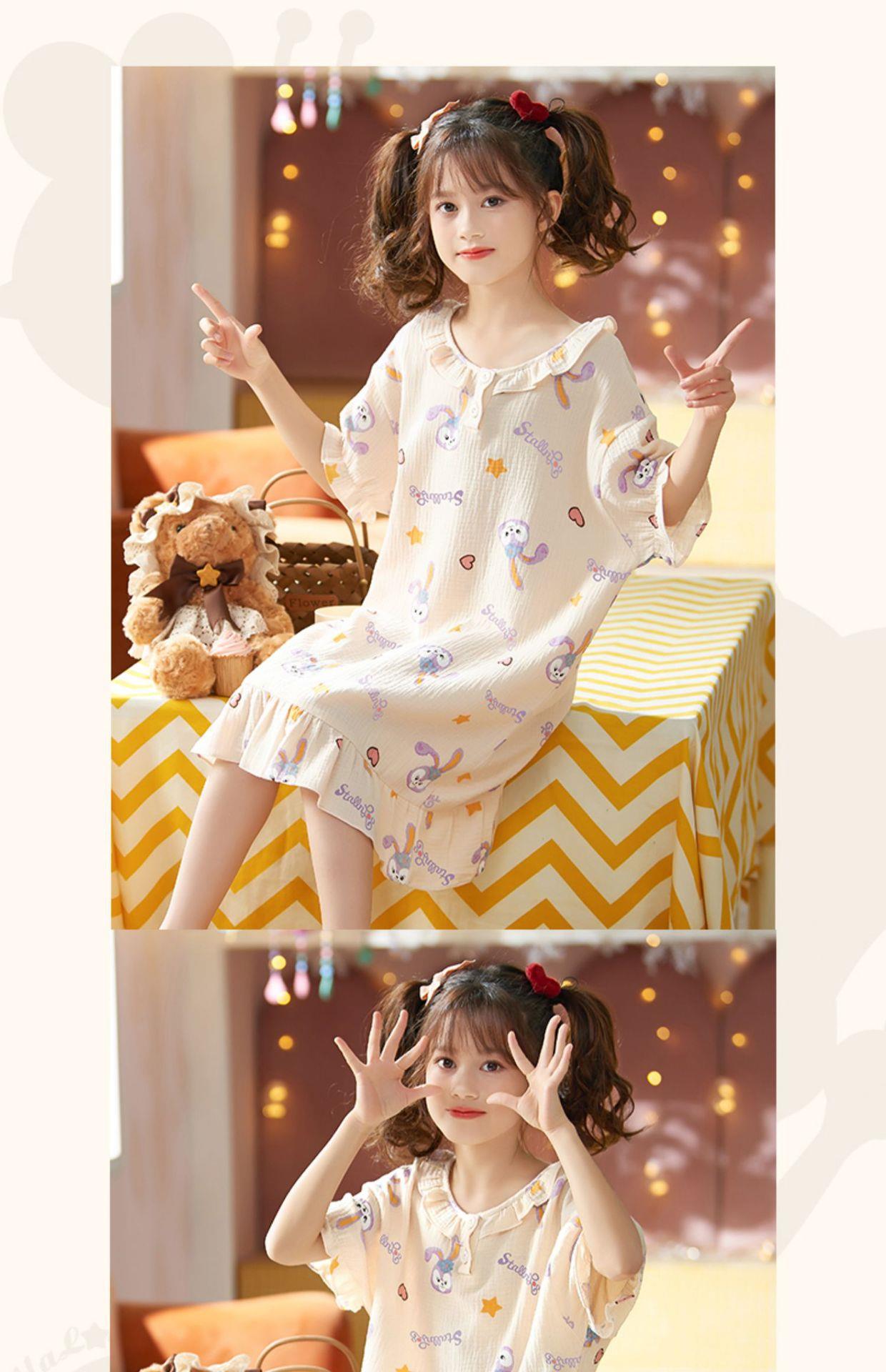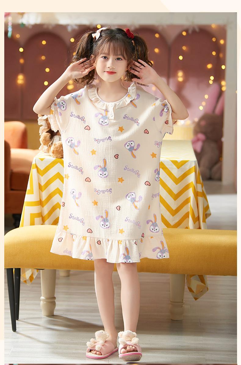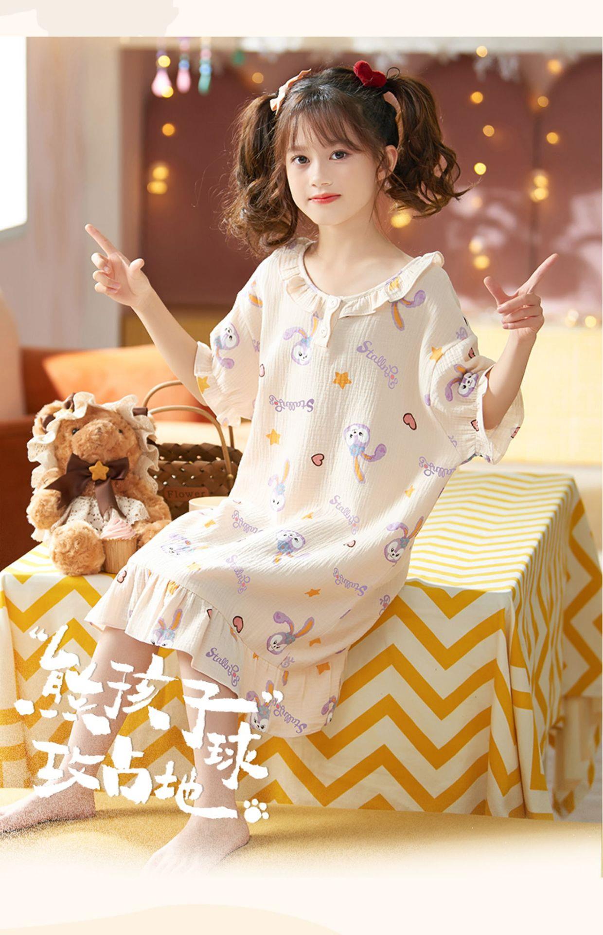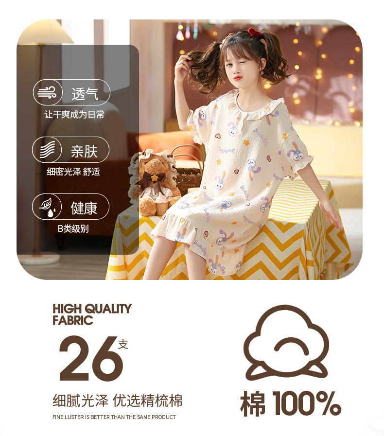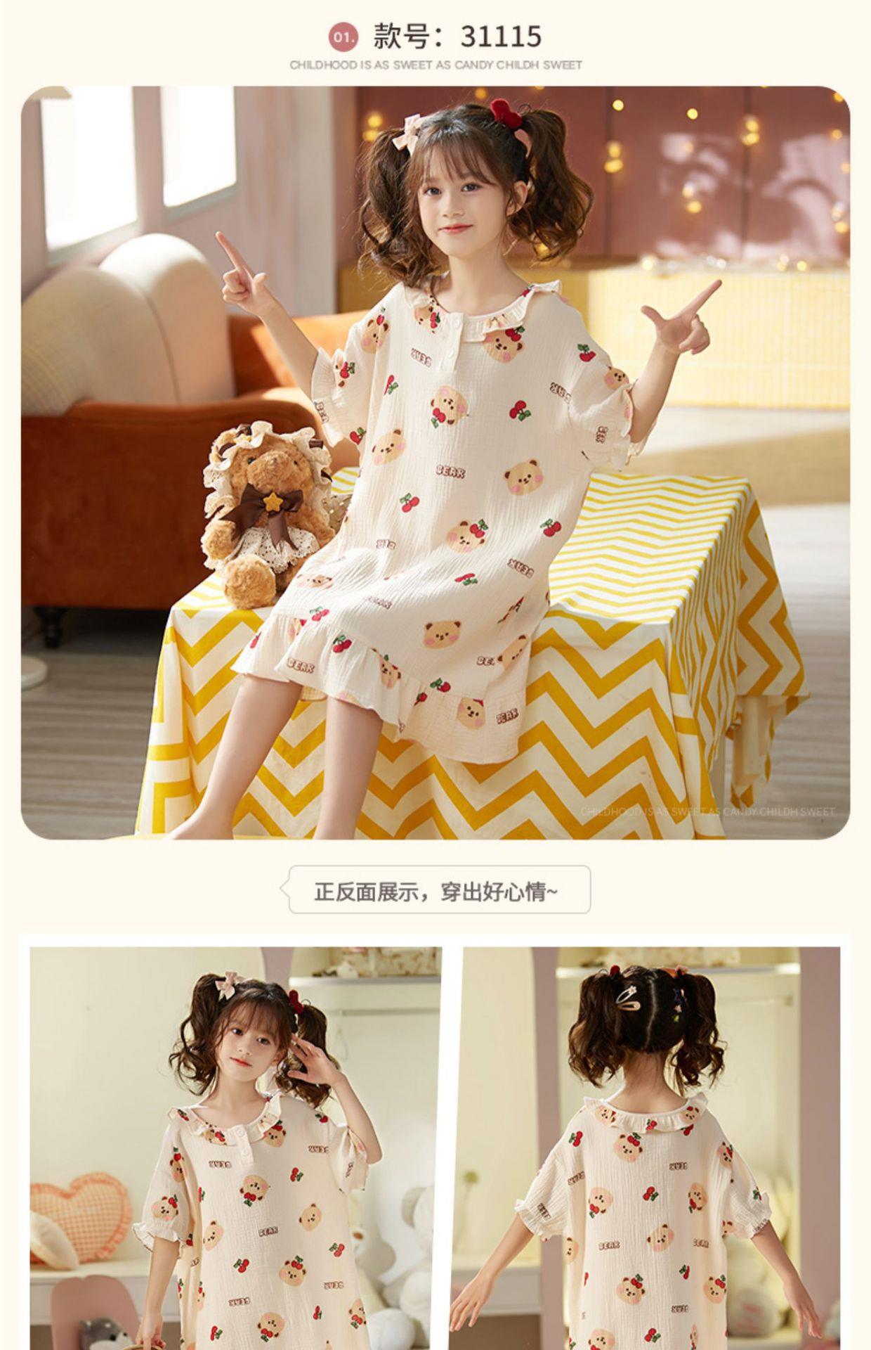 儿童睡衣夏季新款纯棉短袖女童睡裙中大童棉纱布女孩亲子装连衣裙