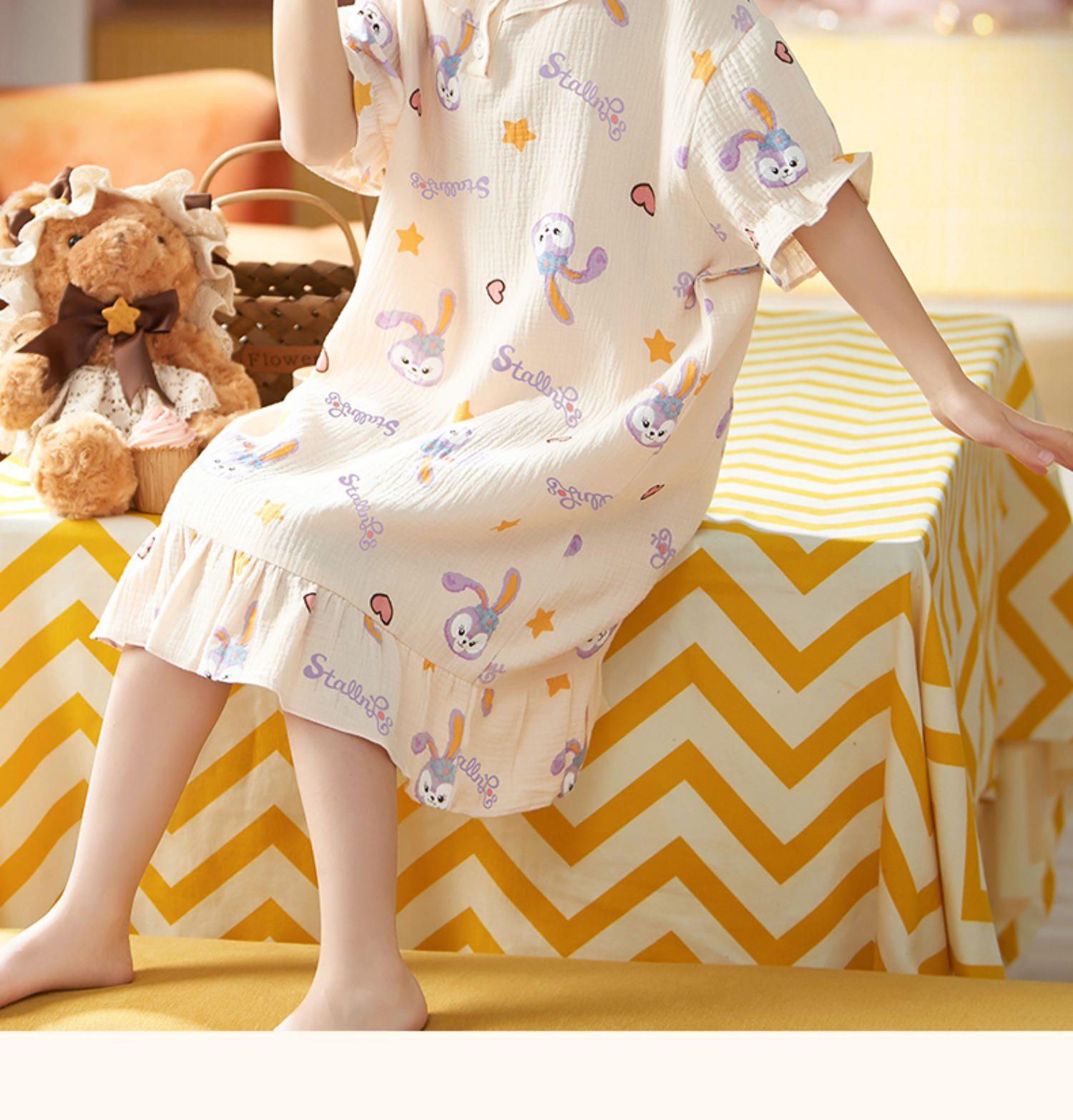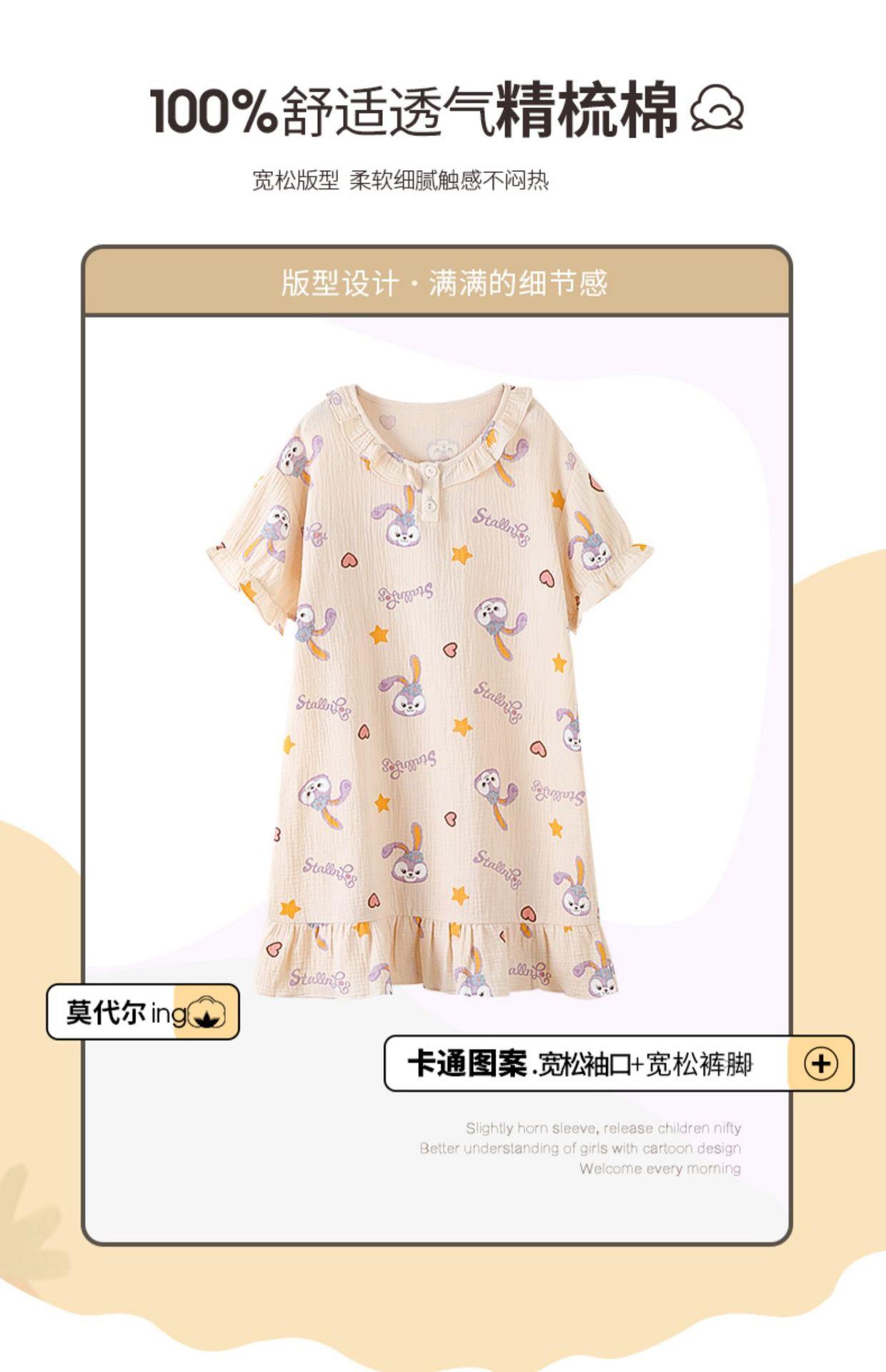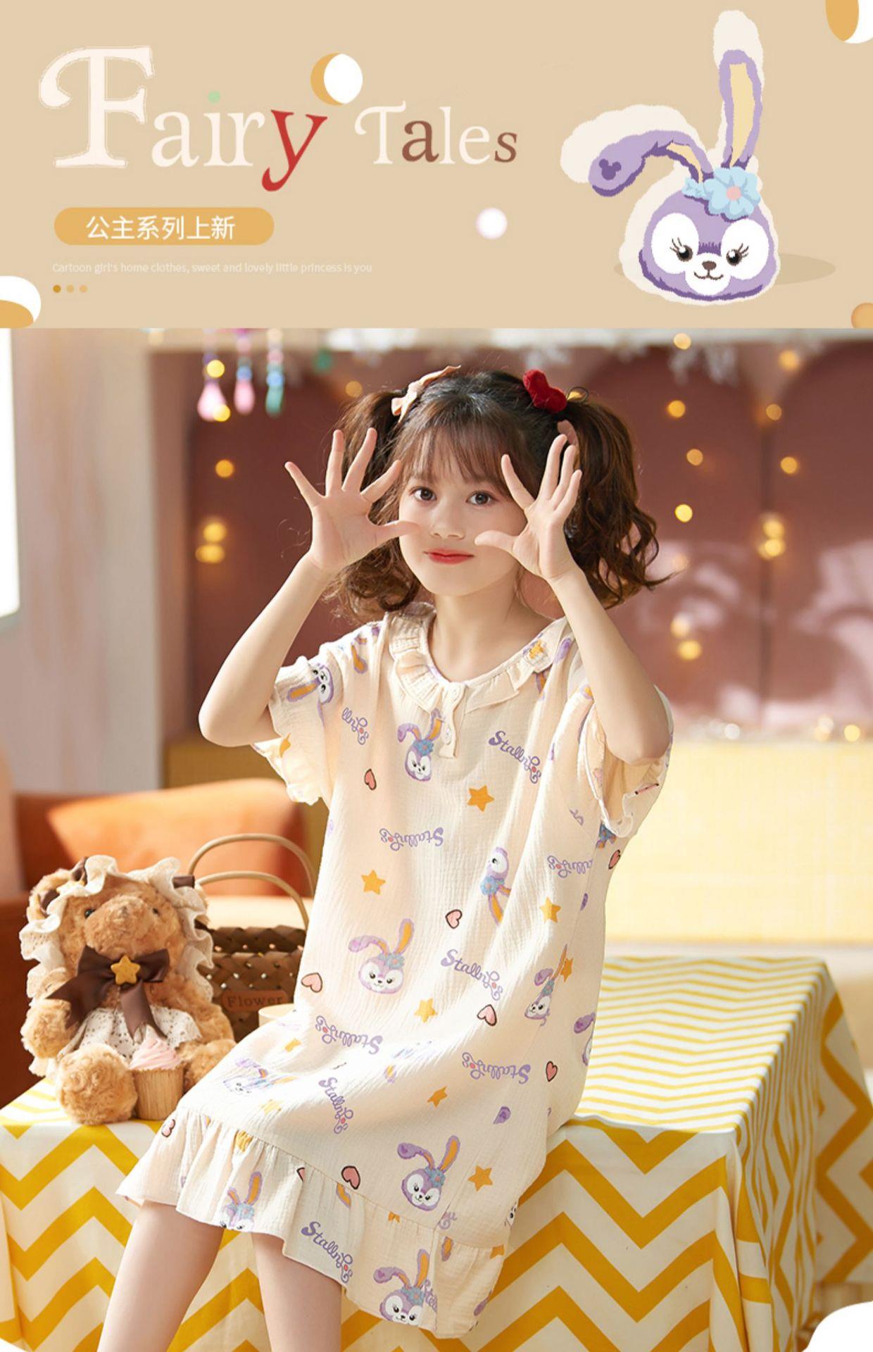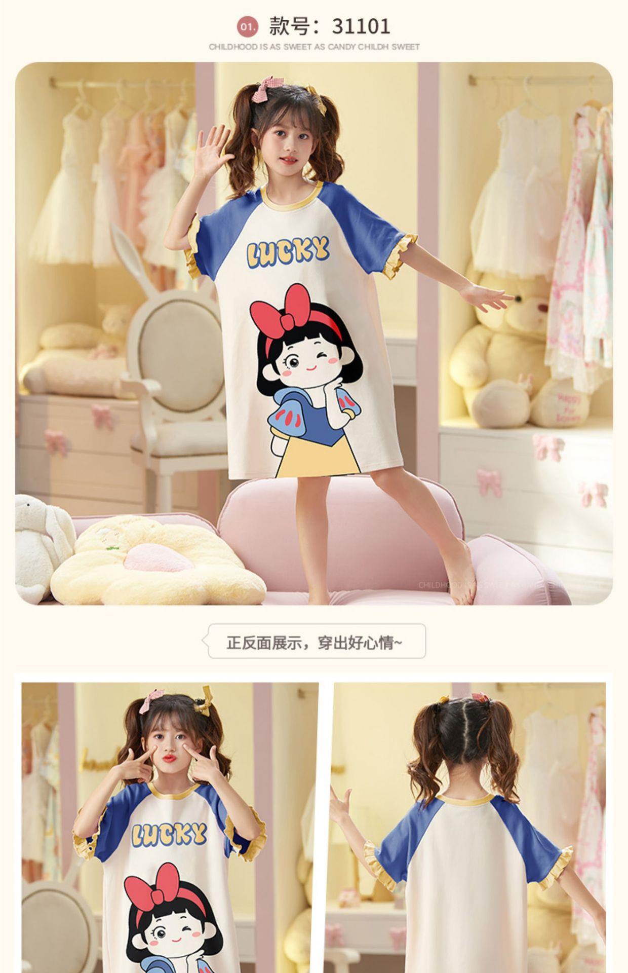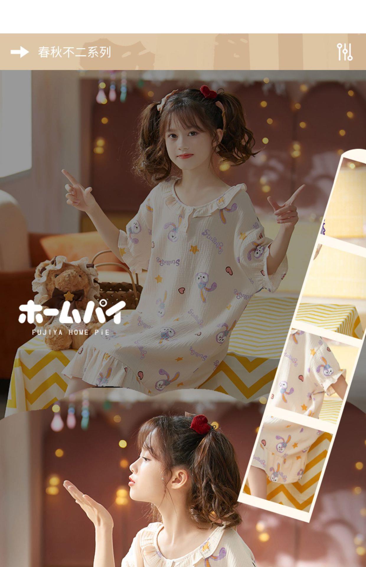 儿童睡衣夏季新款纯棉短袖女童睡裙中大童棉纱布女孩亲子装连衣裙