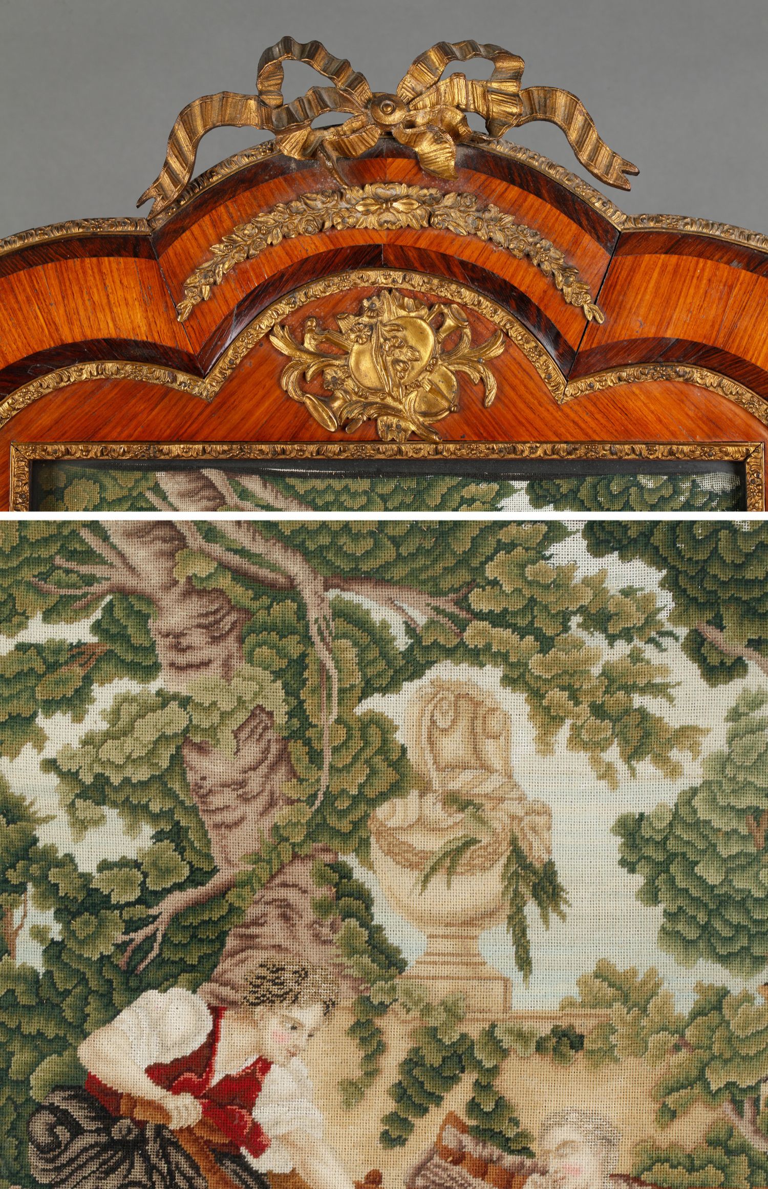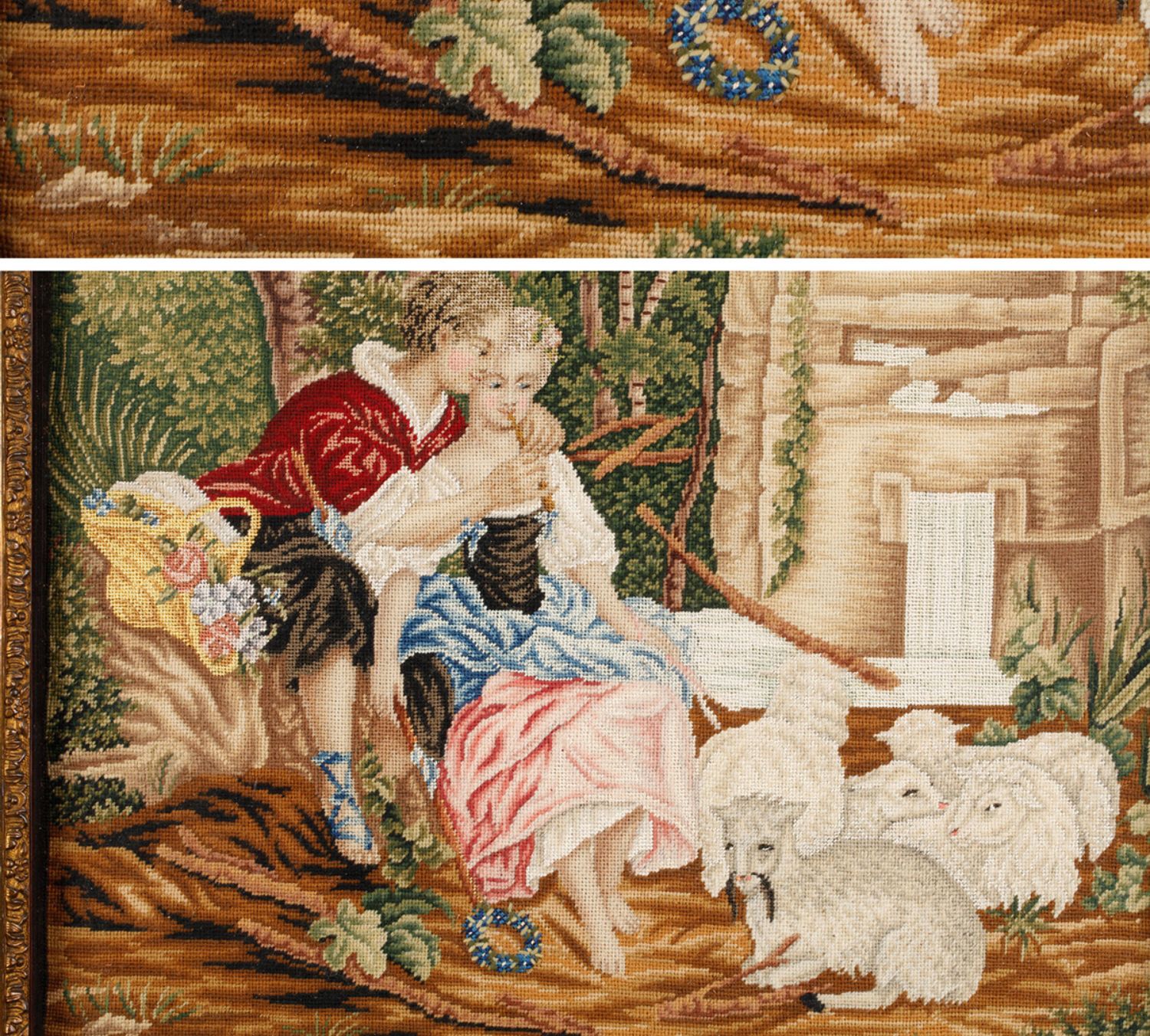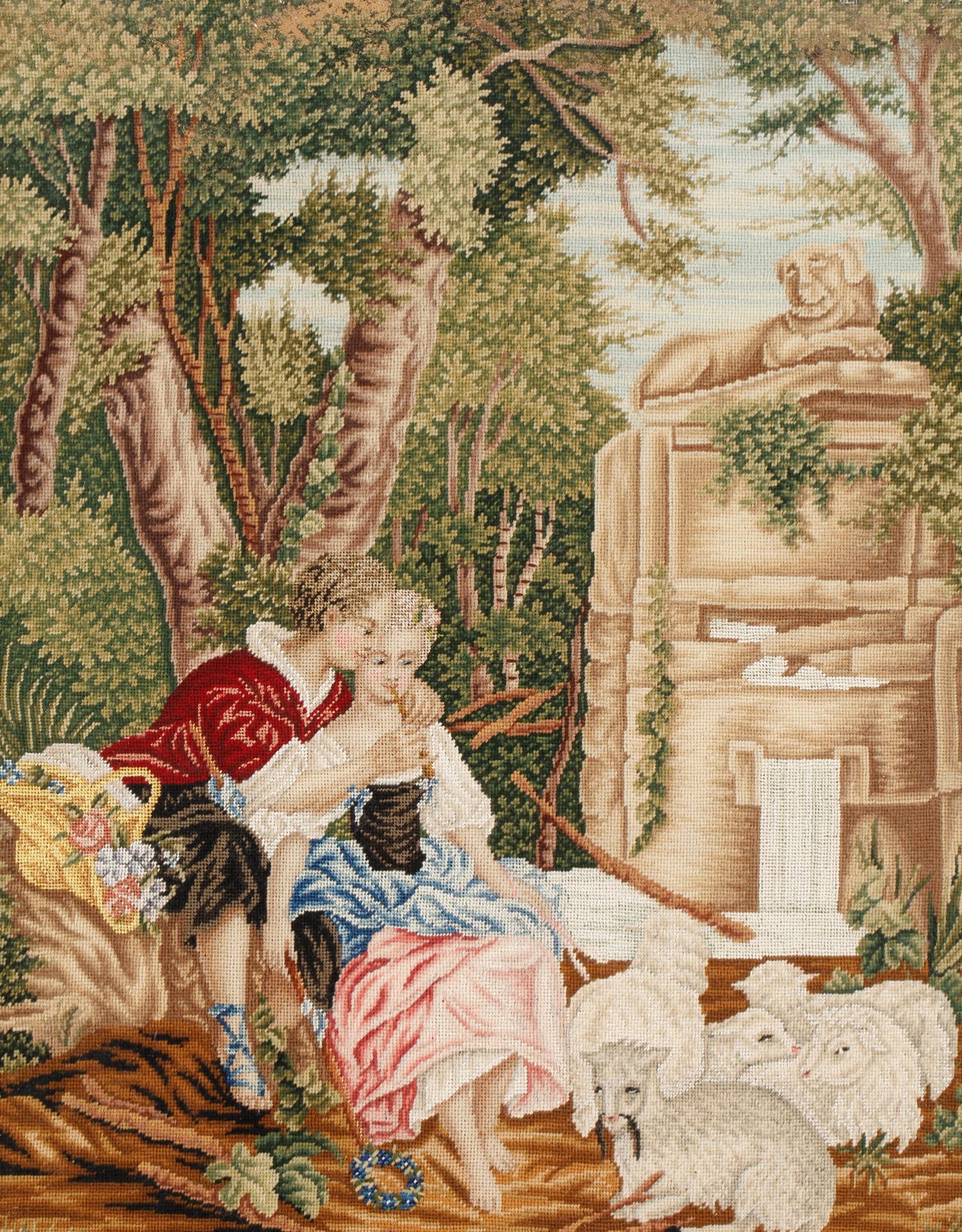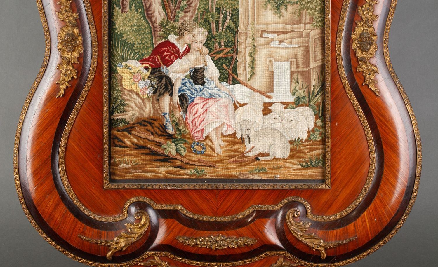 独角鹿西洋古董家居摆件欧洲玫瑰木画框田园爱恋主题刺绣画一对