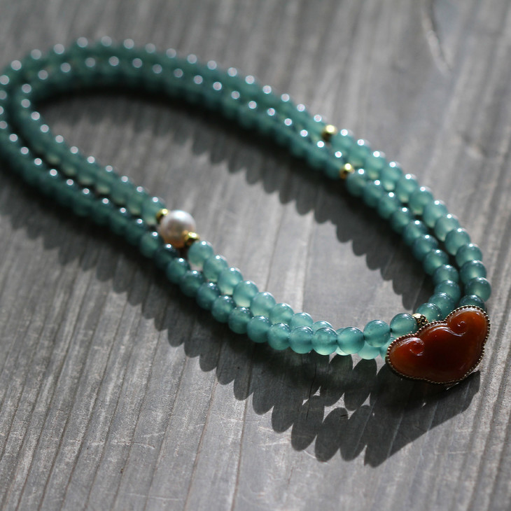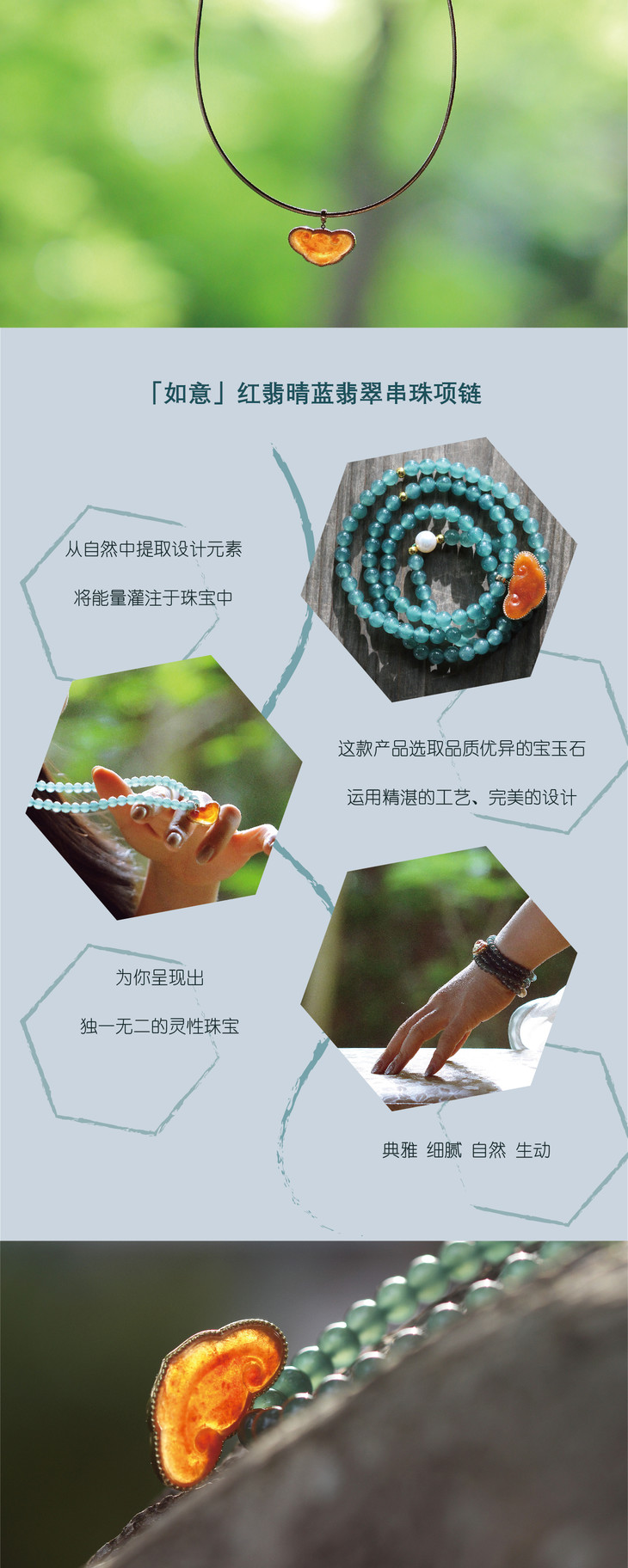 蓝水珠链和吊坠青花绿翡翠均为多年收藏的品质缅甸料,下图大如意红翡吊坠已售罄,仅供搭配参考。