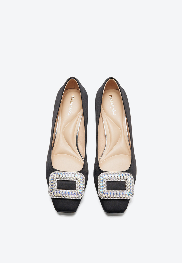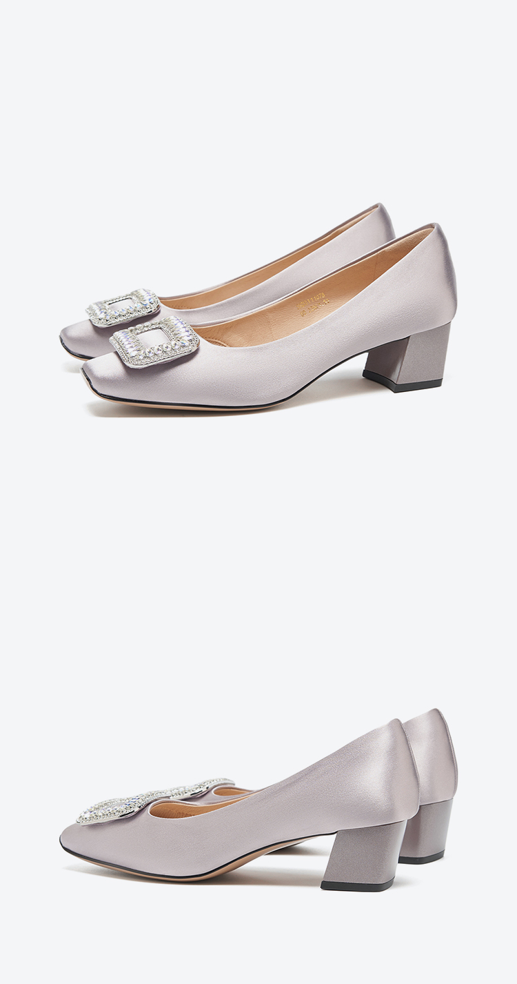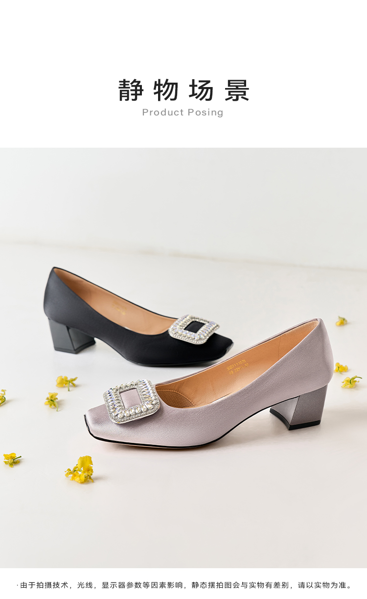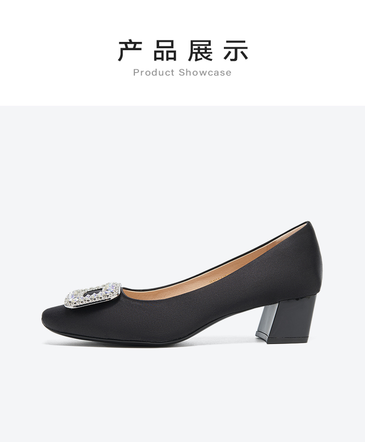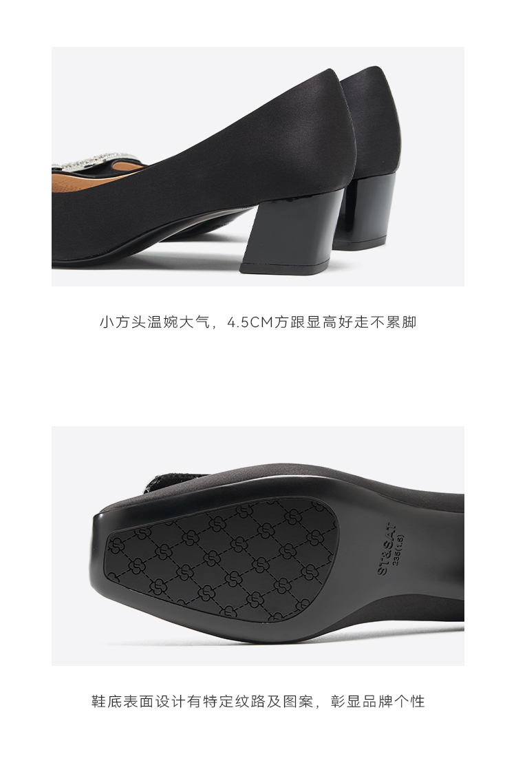 【小方镜系列】星期六26春新款优雅风缎面晶扣中低跟单鞋SSE1111030/SSE1111035