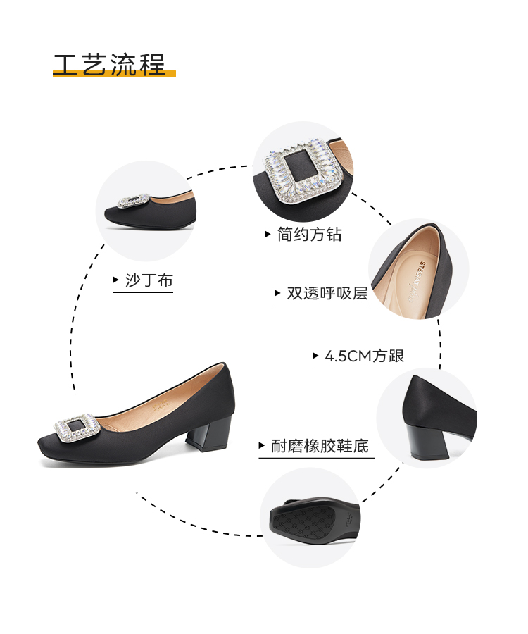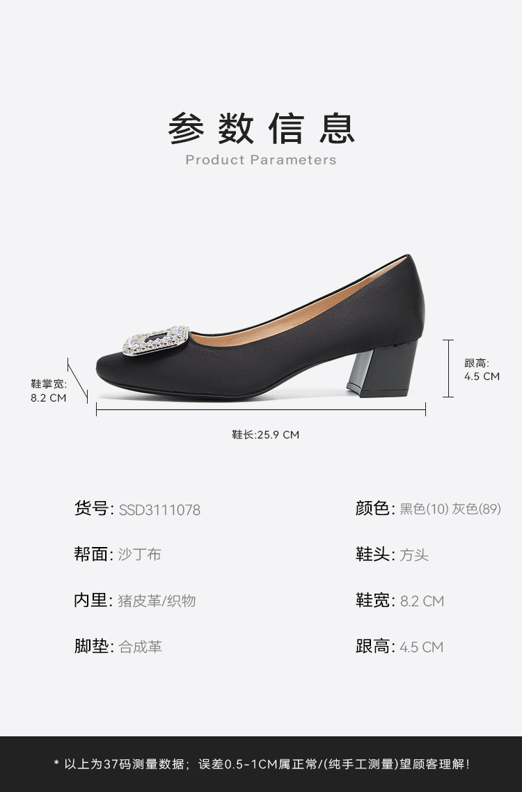 星期六通勤宝藏缎面水钻粗跟单鞋SSD3111078
