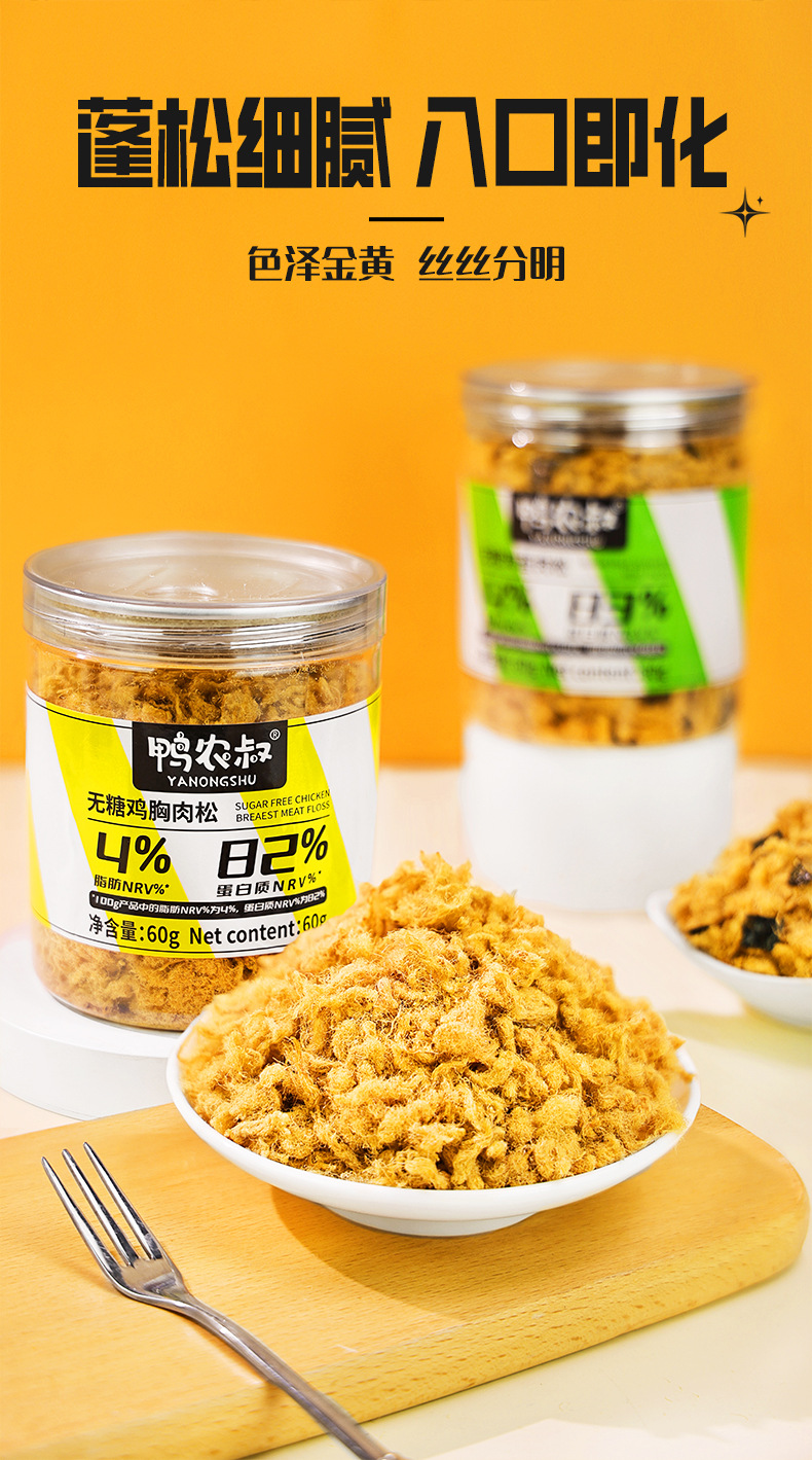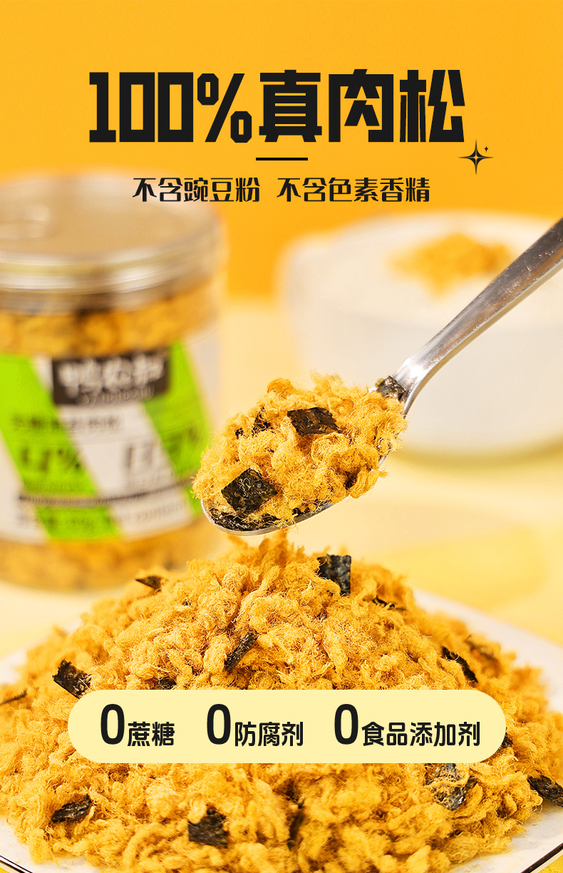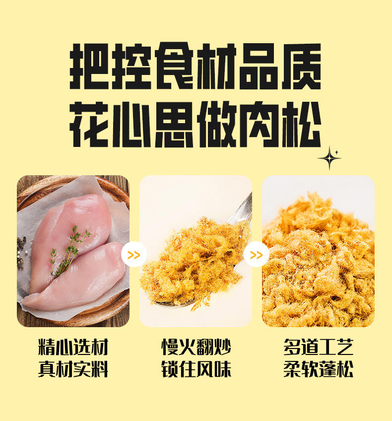 【真肉松不单独添加!无糖鸡胸肉松】精心选材 真鸡胸肉慢火翻炒而制,蓬松细腻 入口即化,色泽金黄 丝丝分明,鸡胸肉松儿童寿司健身辅料小零食品Y