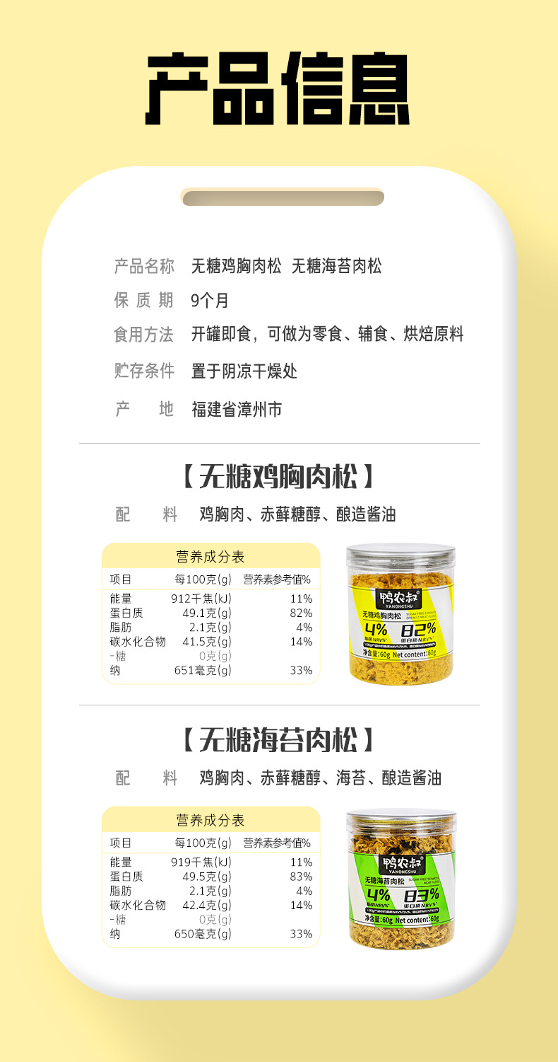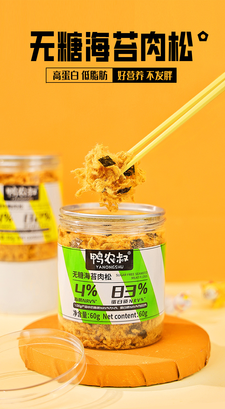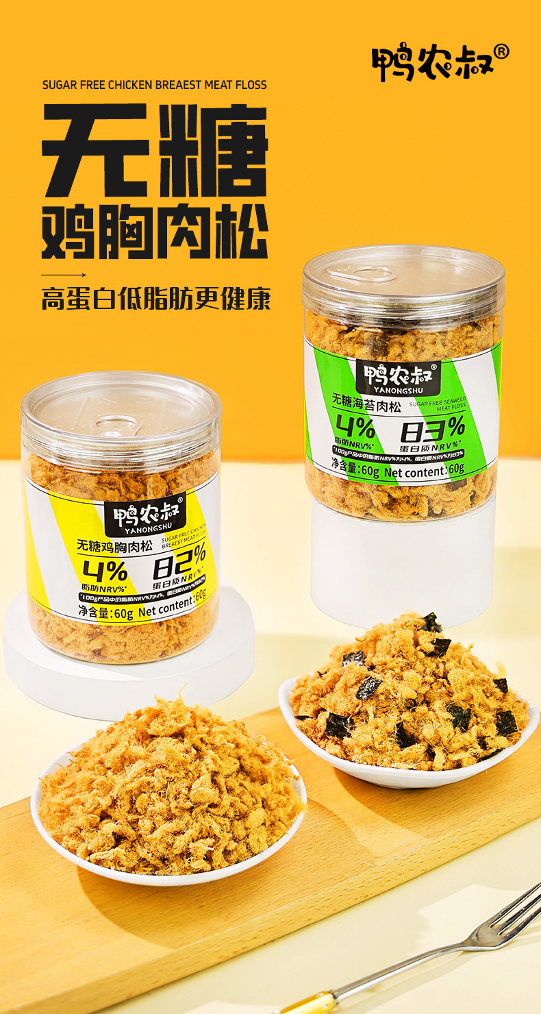 【真肉松不单独添加!无糖鸡胸肉松】精心选材 真鸡胸肉慢火翻炒而制,蓬松细腻 入口即化,色泽金黄 丝丝分明,鸡胸肉松儿童寿司健身辅料小零食品Y