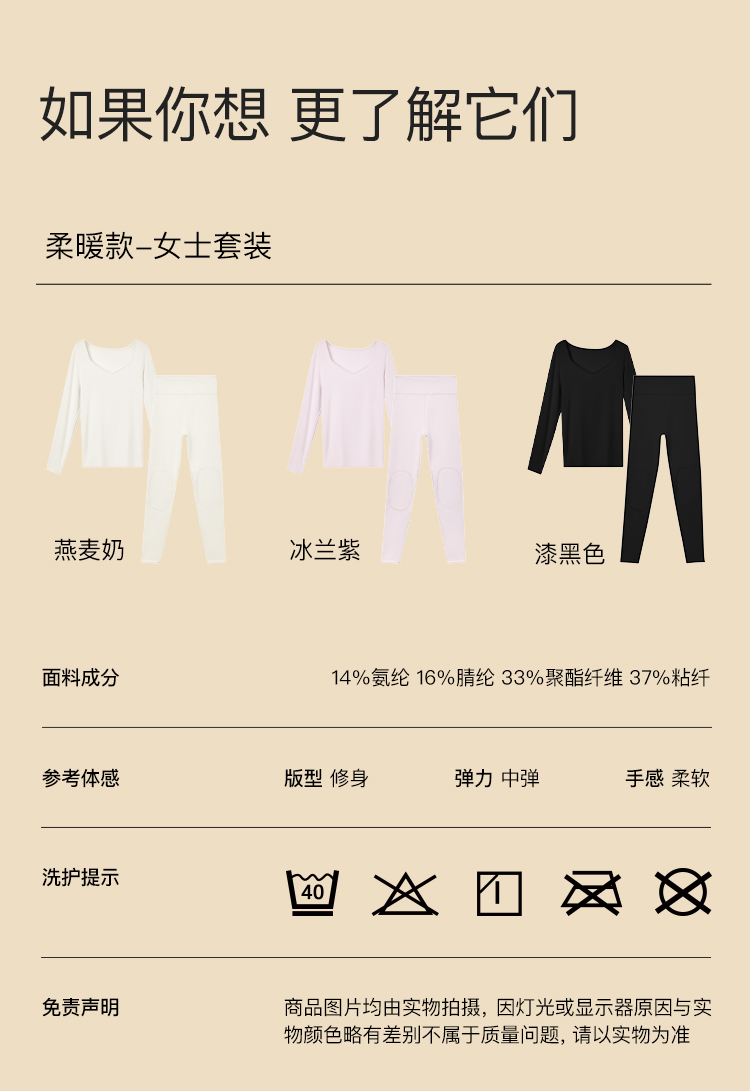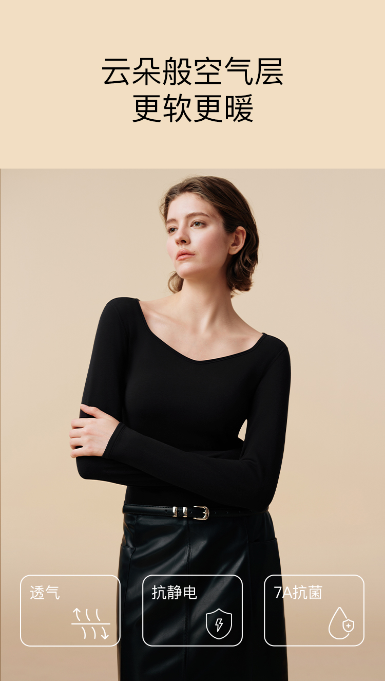 ubras加倍暖钻石领柔暖肌底衣套装(女款)