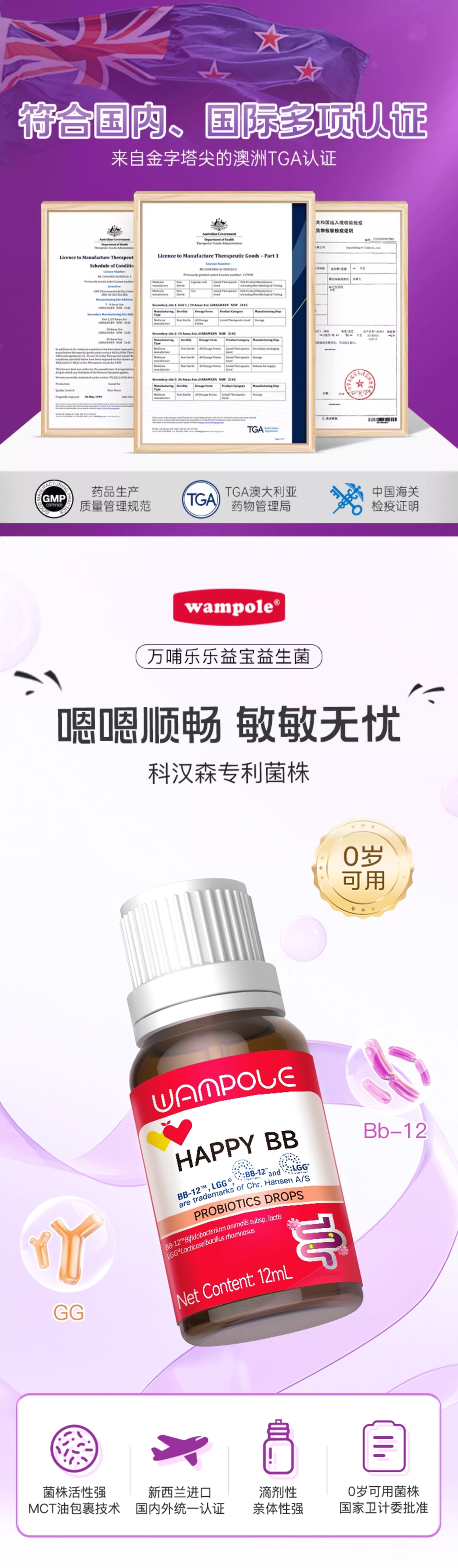 万哺乐 Bb-12+LGG益生菌 新生婴幼儿肠胃敏敏宝宝滴剂