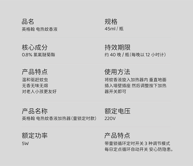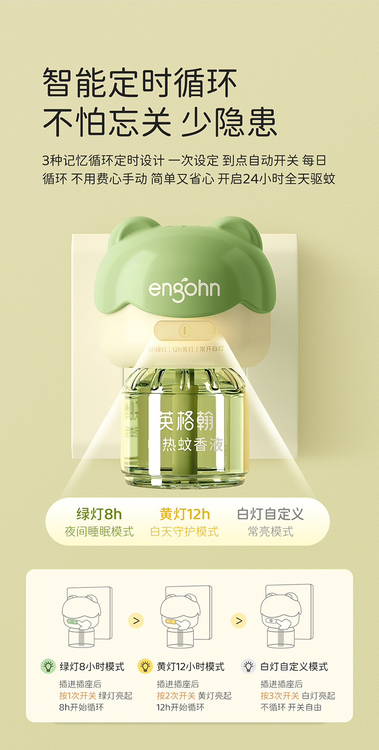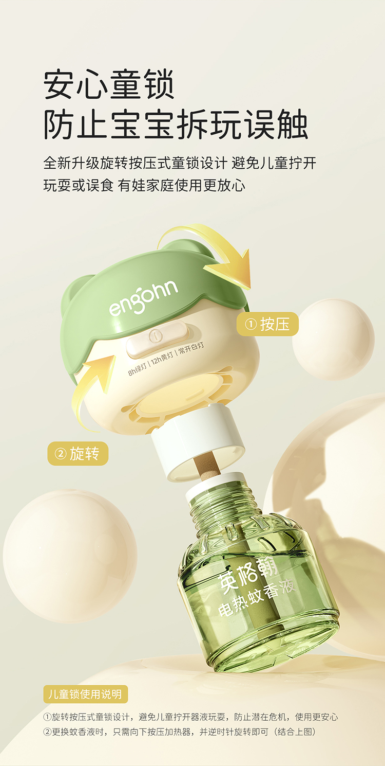 【驱蚊液/4液+1器】英格翰婴儿电热蚊香液驱蚊液防蚊新品童锁款智能定时童锁防宝宝误触误拆