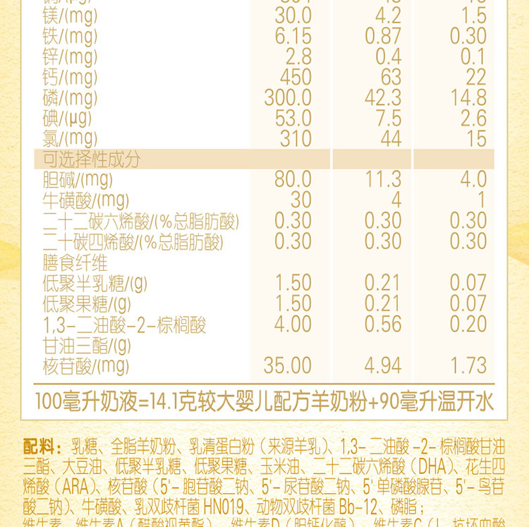金领冠悠滋小羊较大婴儿配方羊奶粉(听装)1×12×405g