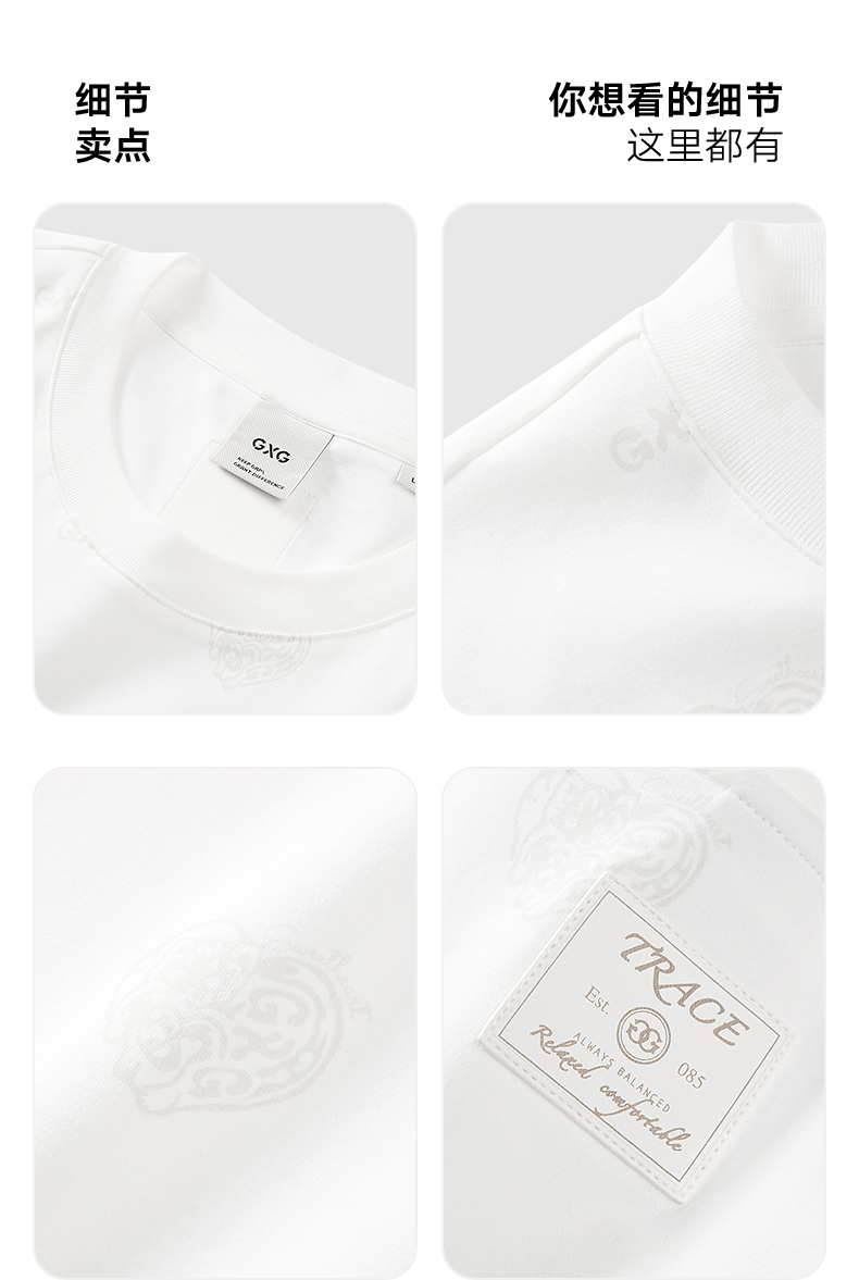 GXG男装 白色肌理面料短袖T恤 舒适简约休闲夏季热卖G24X442083
