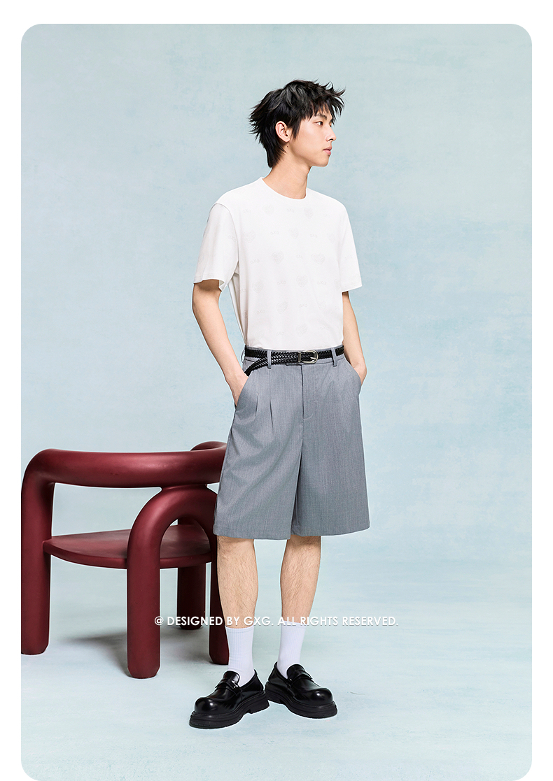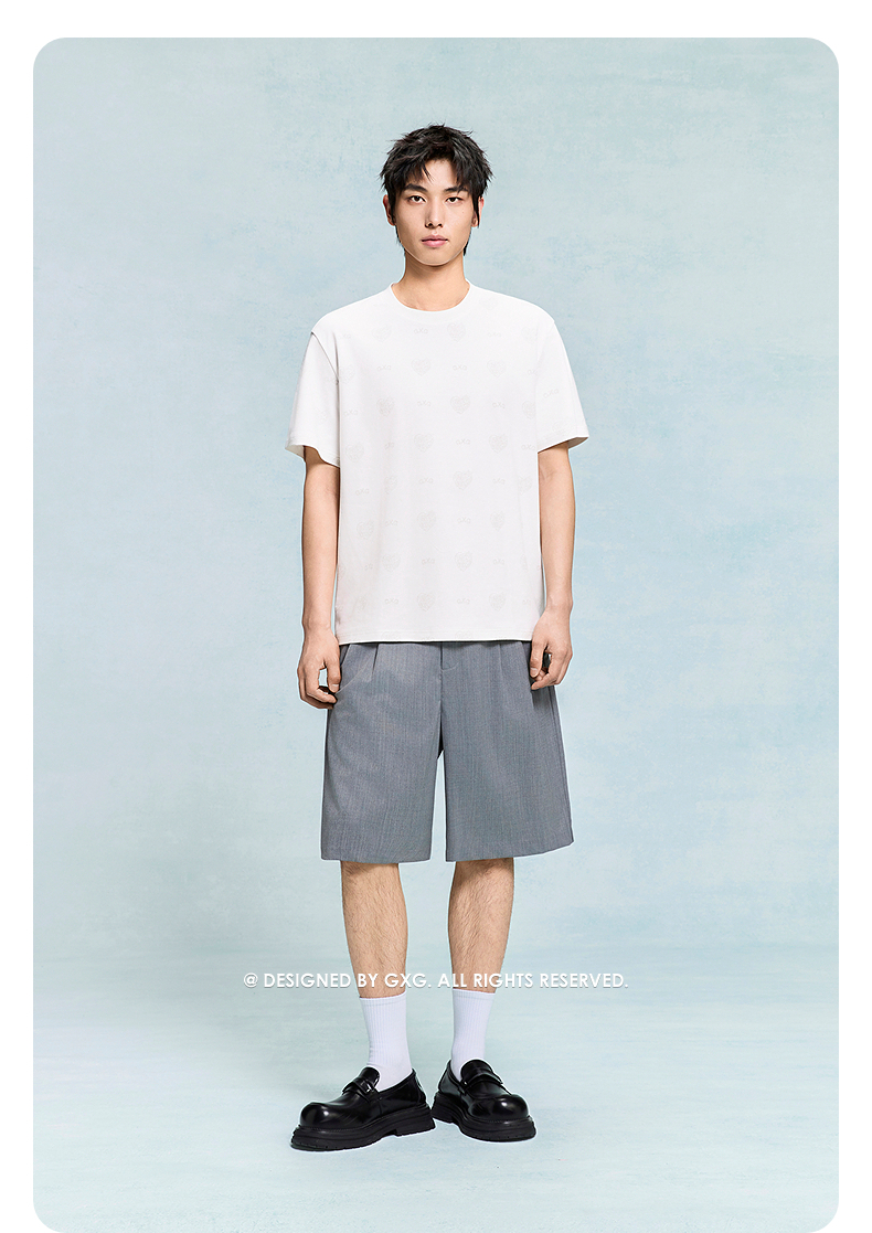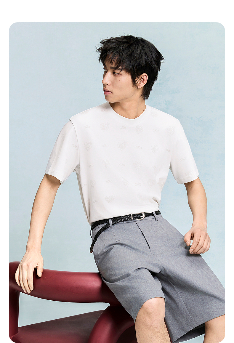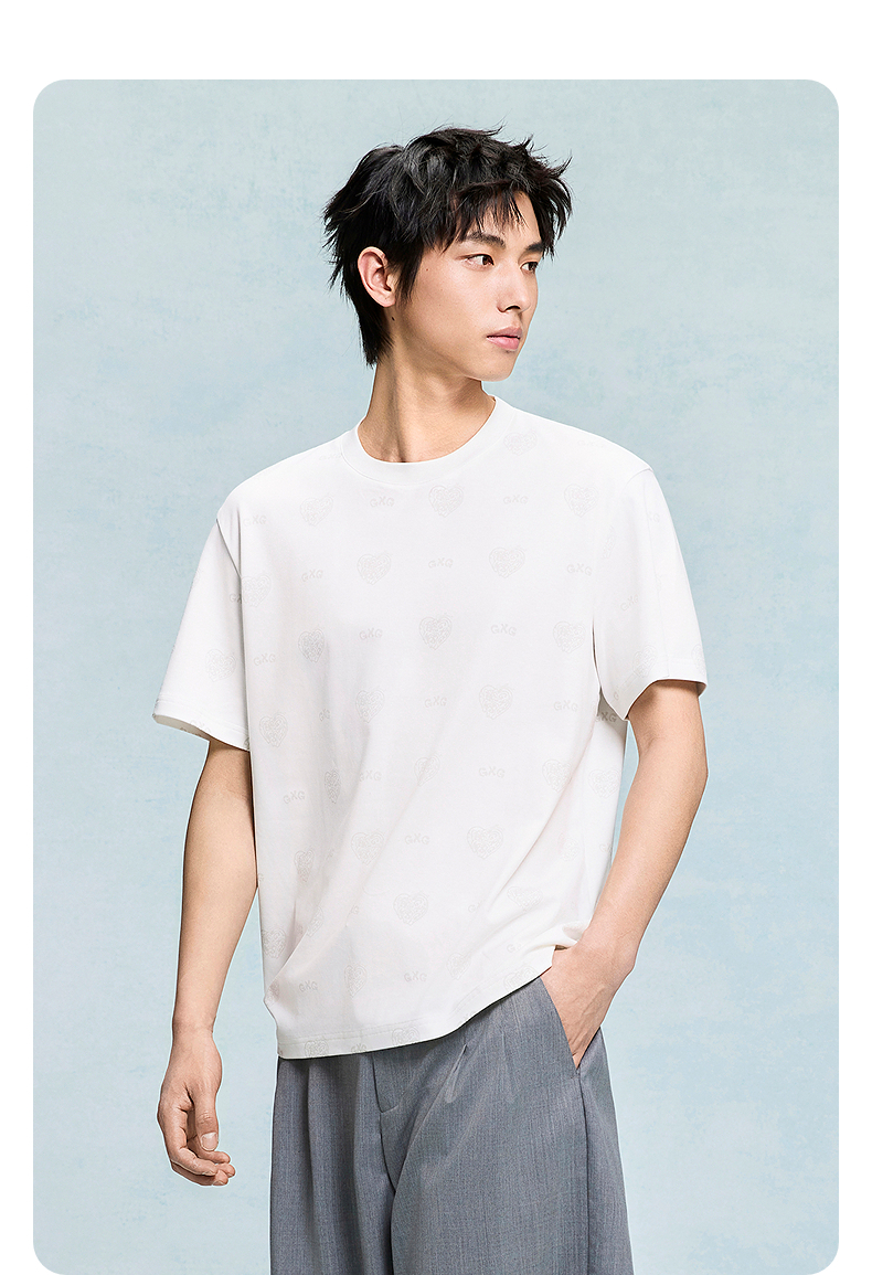 GXG男装 圆领T恤暗纹满印上衣短袖针织 2025年夏季热卖