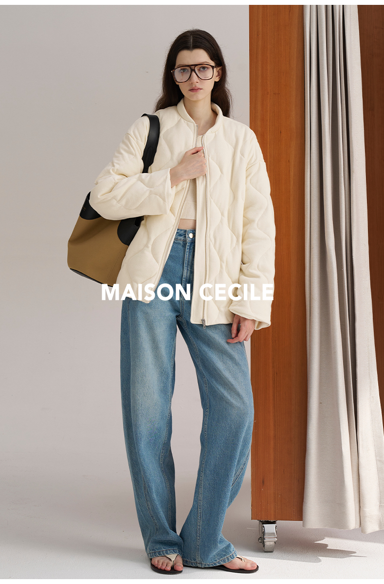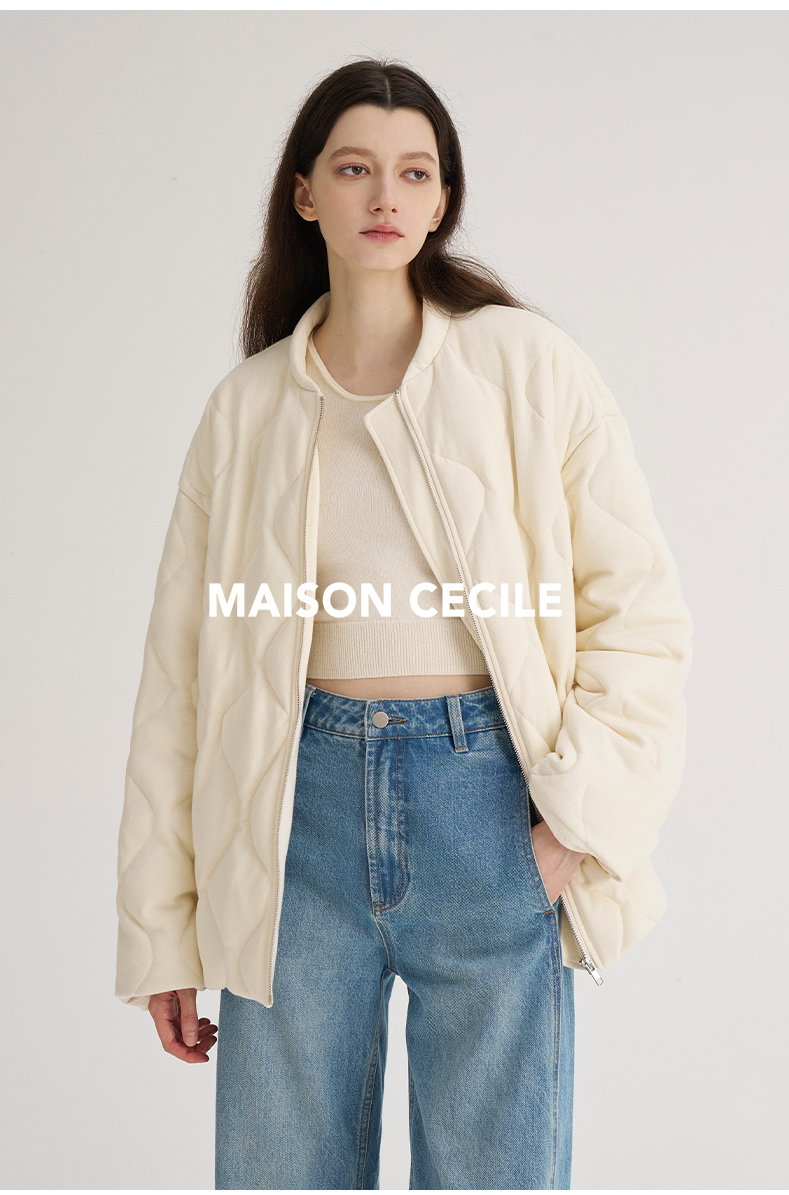 MAISON CECILE三色|百搭灯芯绒领廓形工装感可立领棉服夹克外套