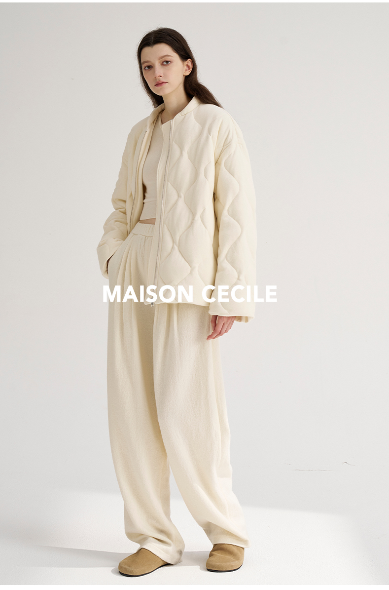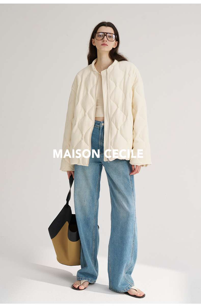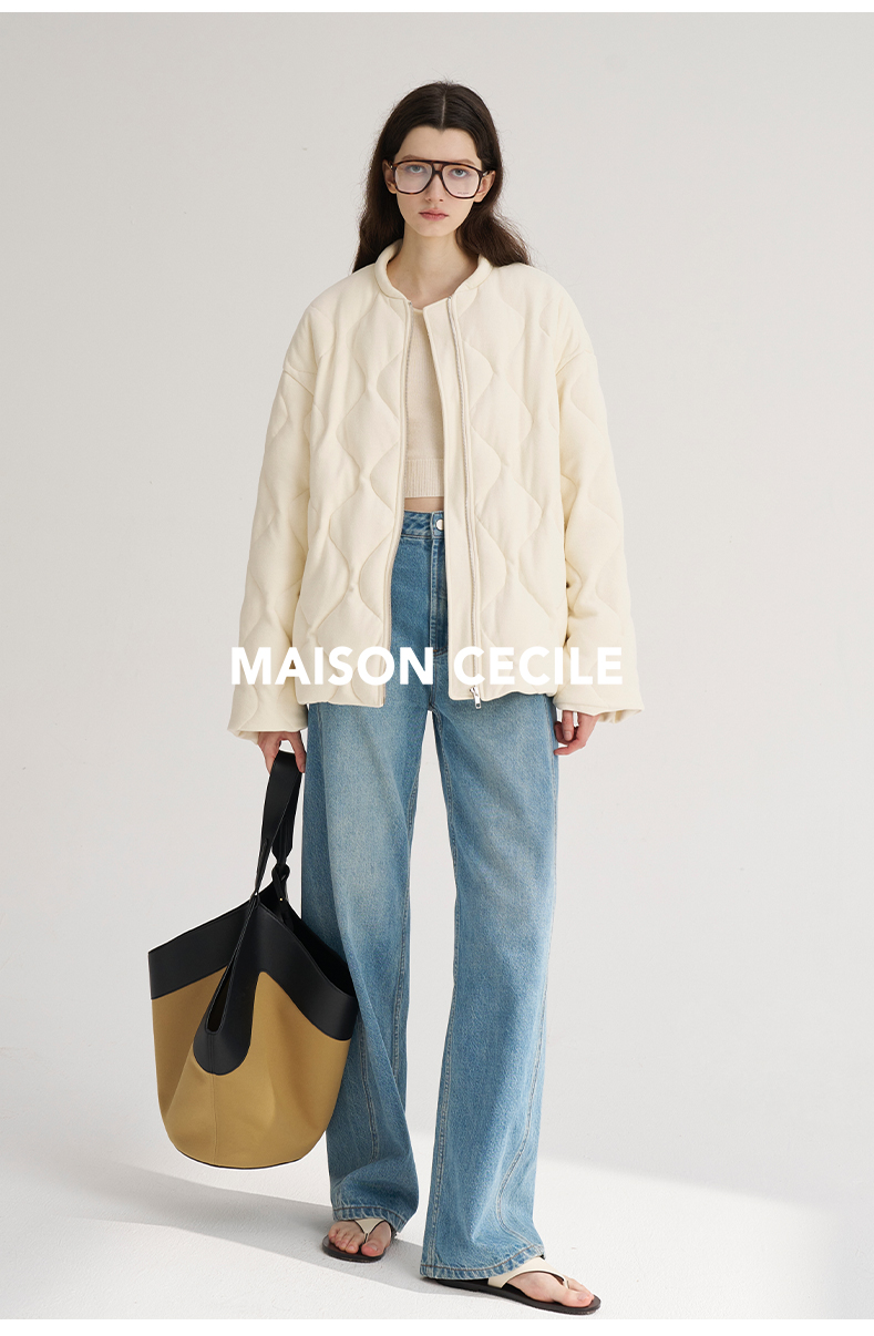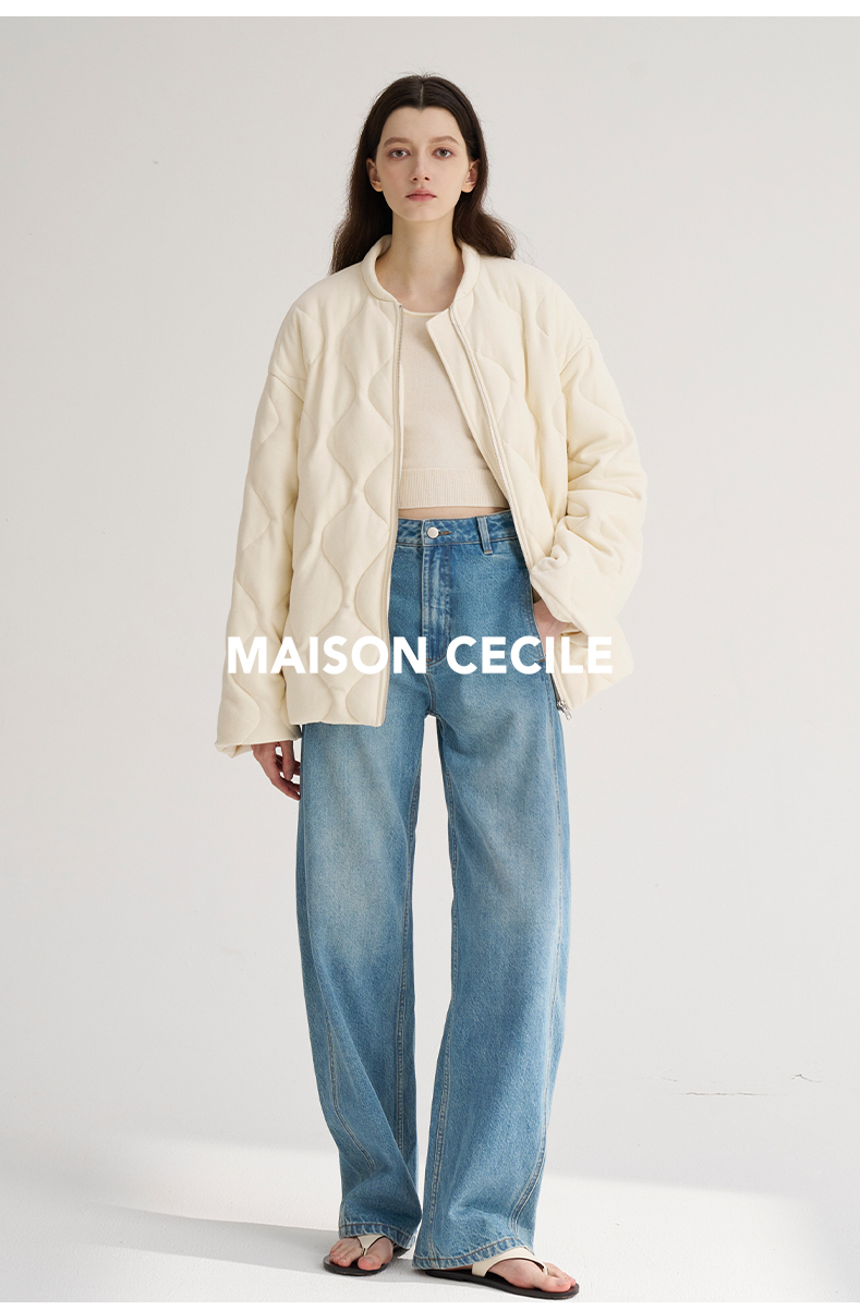 MAISON CECILE 秋冬温暖包裹感廓形百搭可立领长款纽扣棉服