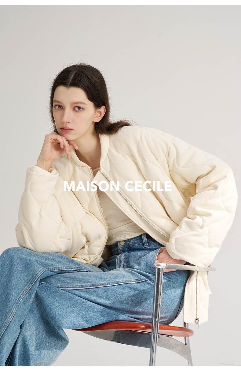 MAISON CECILE 白色飞行员夹克白鹅绒保暖羽绒服