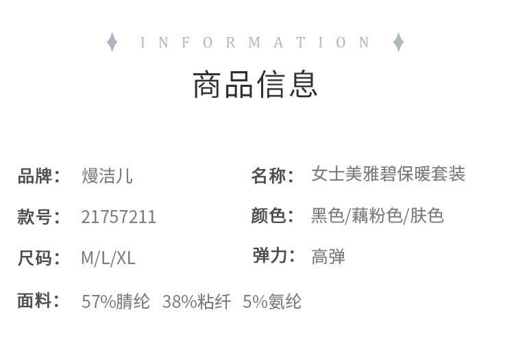 【美雅碧保暖套装】熳洁儿 秋冬圆领打底女士秋衣秋裤又轻又暖21757211