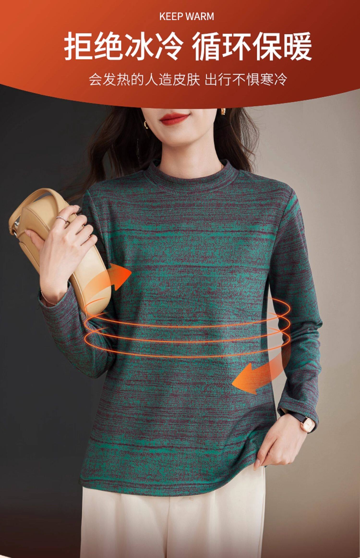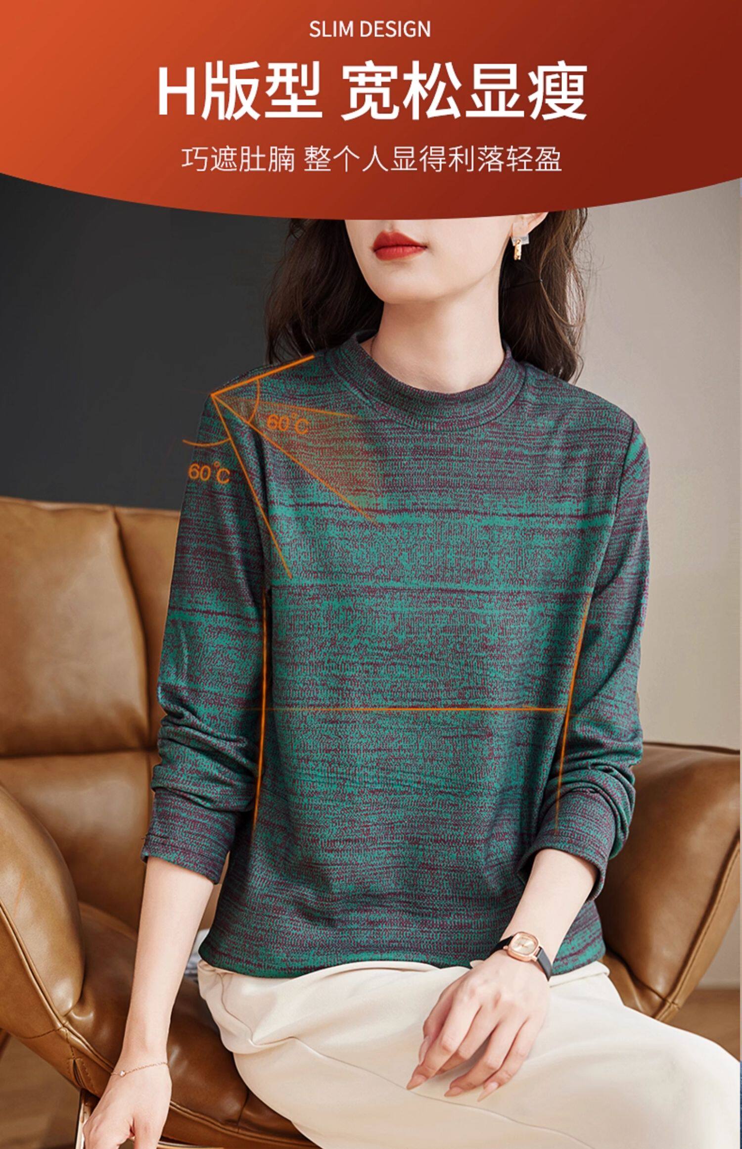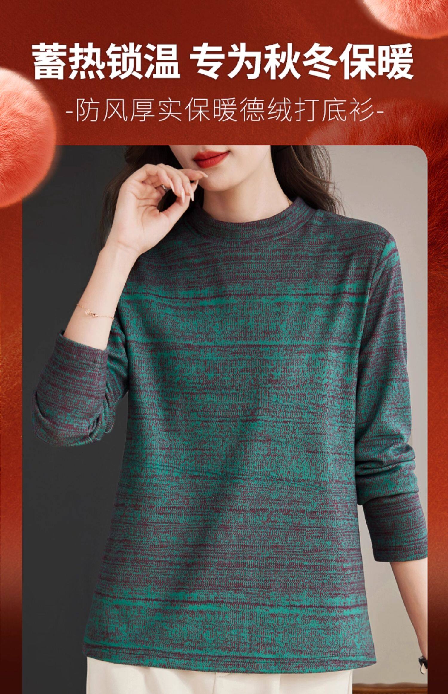 加绒加厚大码德绒打底衫女内搭2025新款长袖上衣妈妈半高领t恤冬