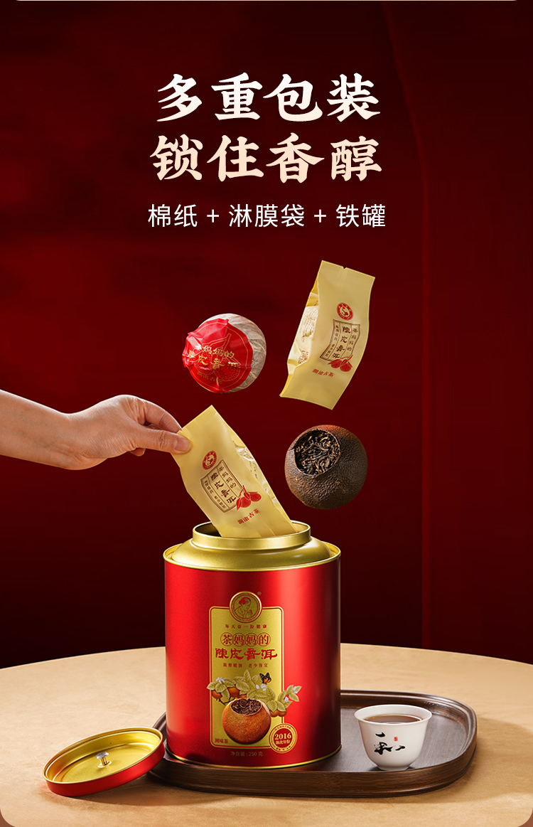 澜沧古茶2016年茶妈妈大红柑陈皮普洱茶熟茶新会橘普茶桔子250g