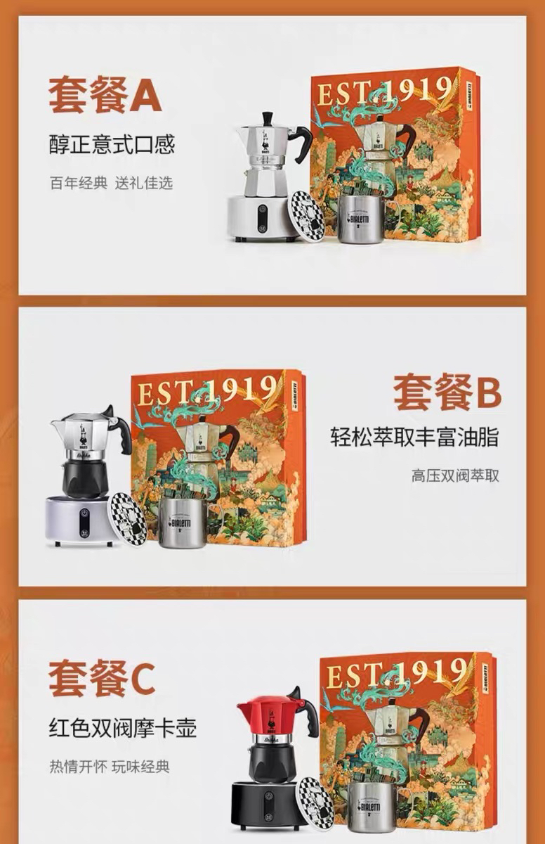 Bialetti比乐蒂蒸汽时代摩卡壶礼盒手冲咖啡壶套装