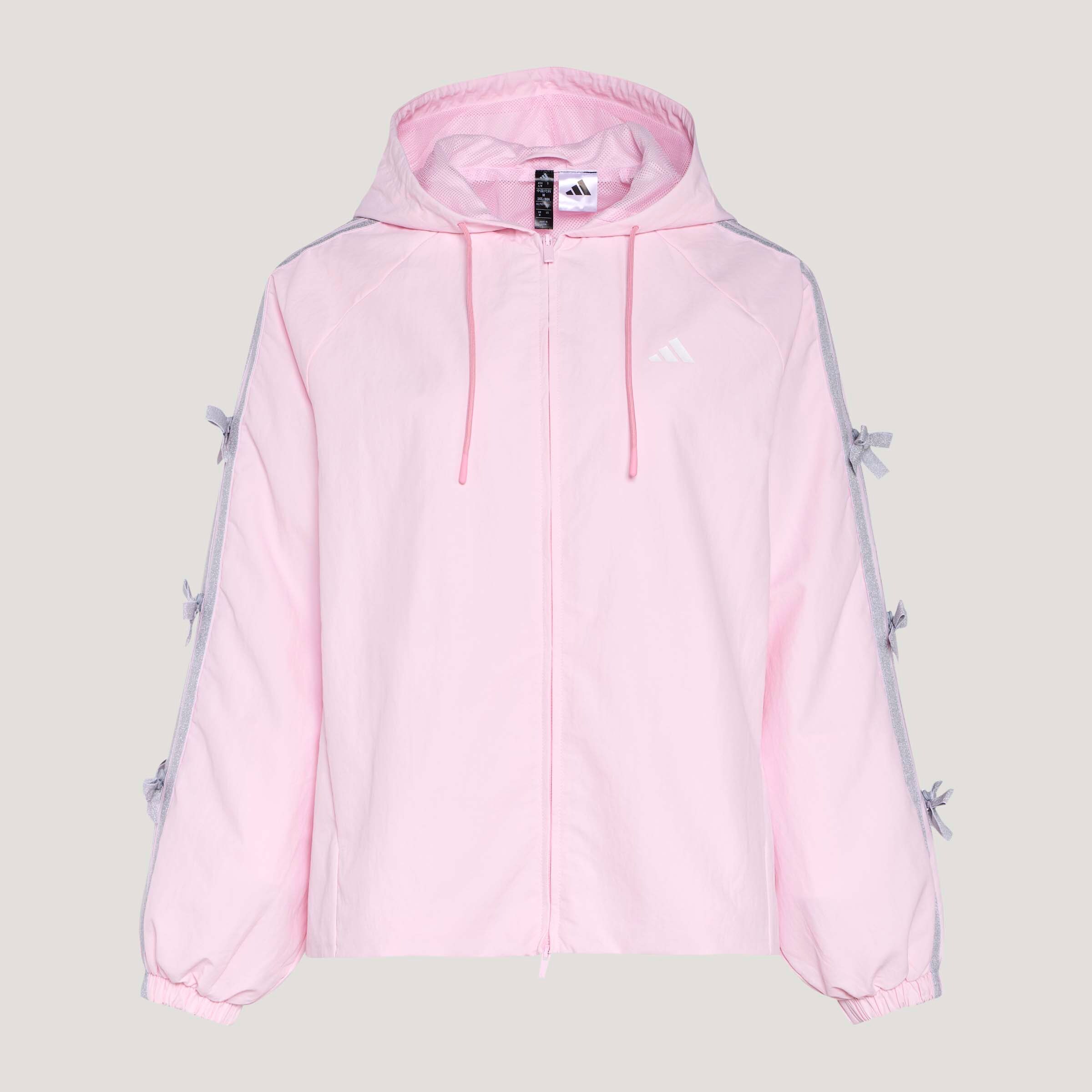 Adidas阿迪达斯DANCE LONG LENGTH JACKET 三条纹舞动系列拒水蝴蝶结运动休闲连帽夹克早春薄外套