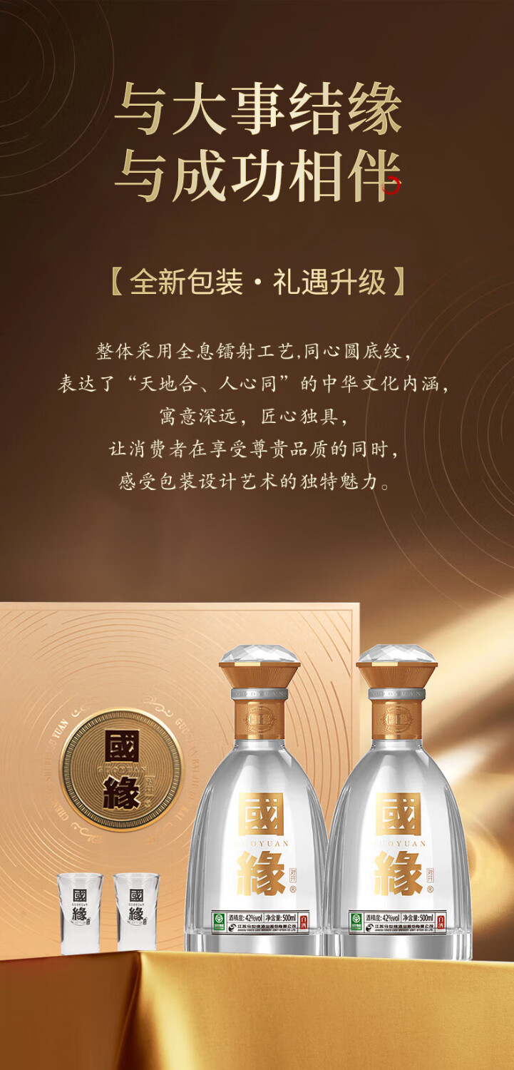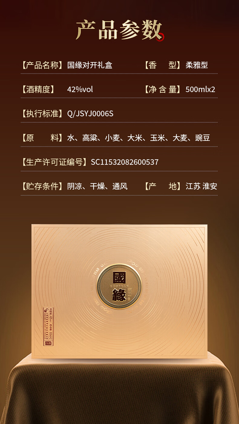 今世缘 国缘对开礼盒装 42度500ml*2瓶