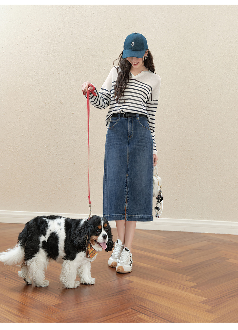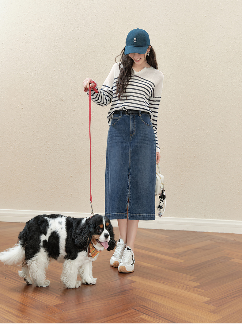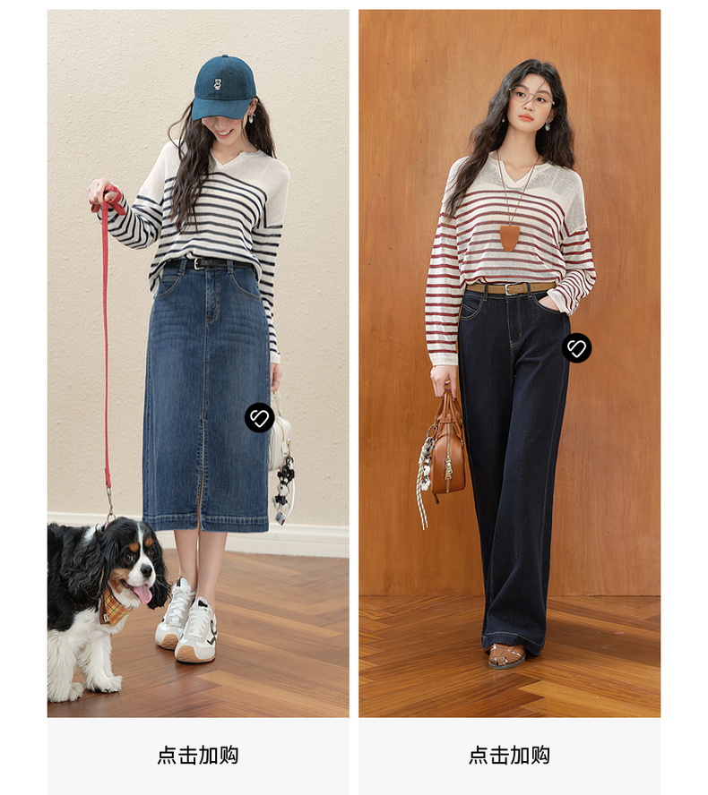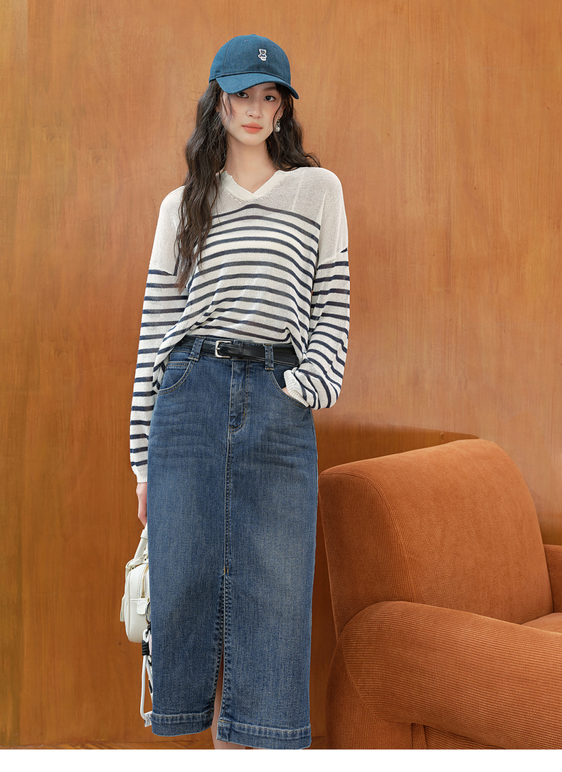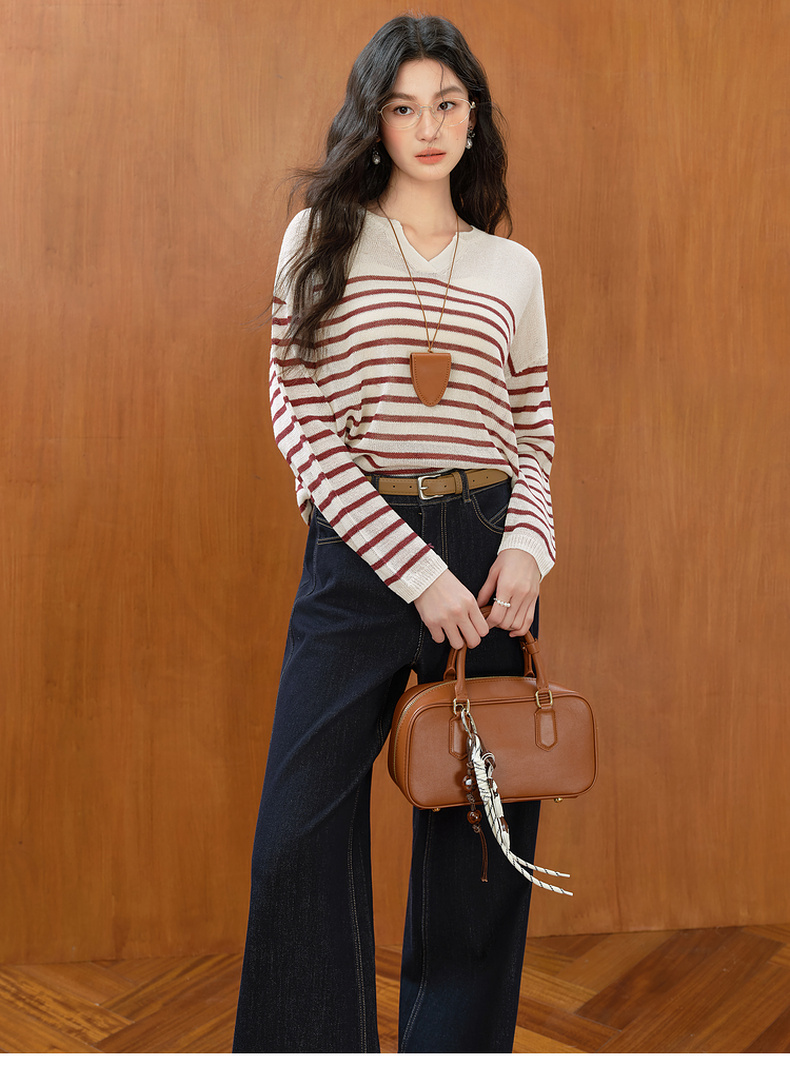 【严选】诗凡黎干爽透气条纹针织罩衫2025秋新款慵懒百搭松弛感小V领长袖7G7330931