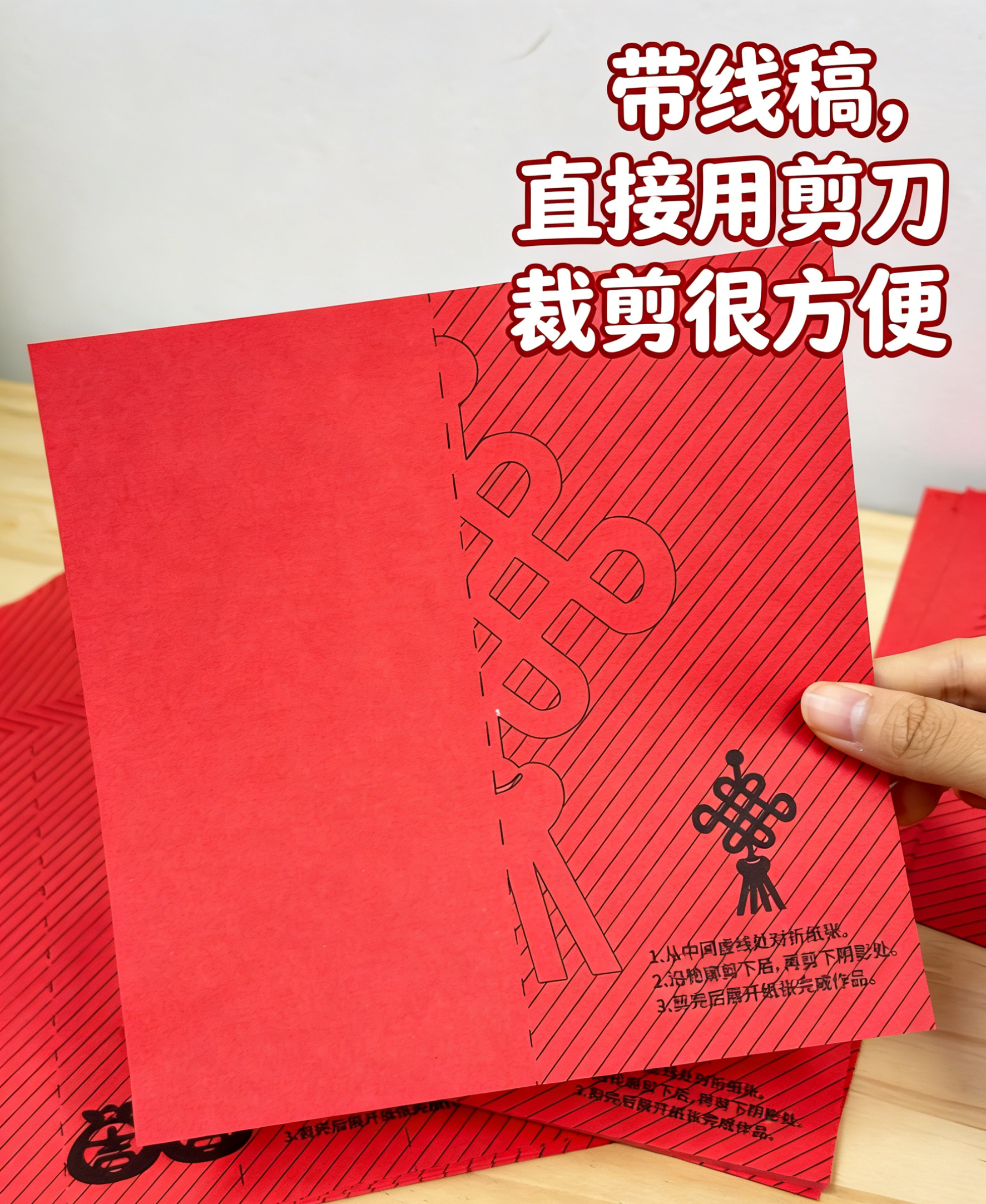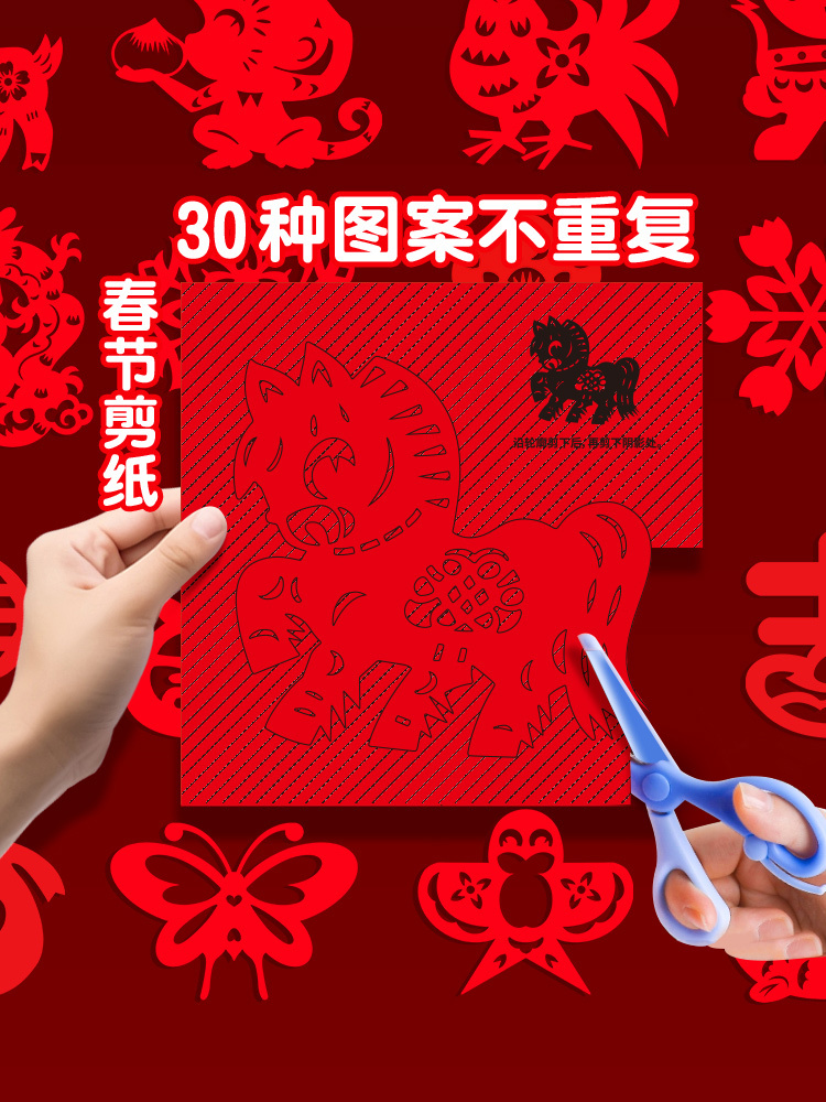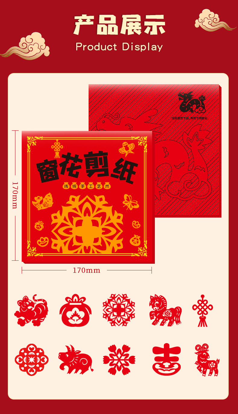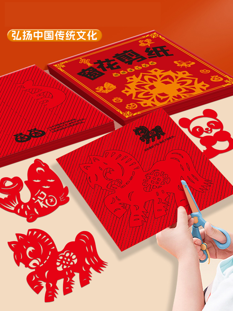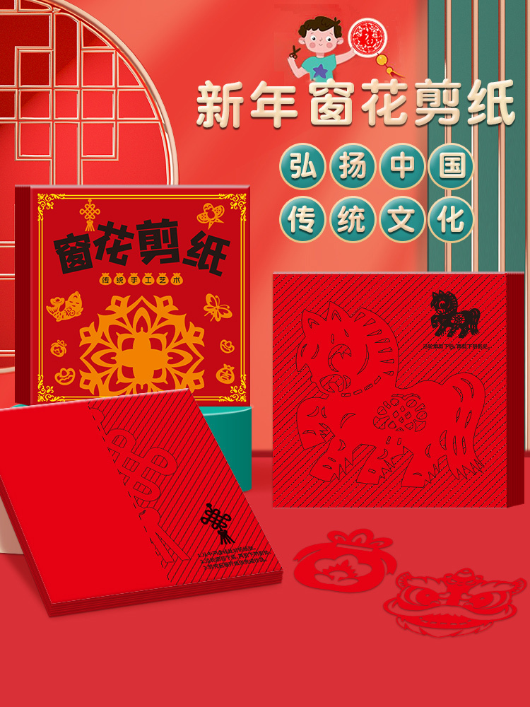 中国风传统剪纸实拍 传承非遗手工,贴在家里过年风味慢慢! ✔️中国红,70-80g易剪纸很厚实,带印刷线稿 折叠好沿着线剪就能🙌得到精美的剪纸咯 成品超好看(♥∀♥)