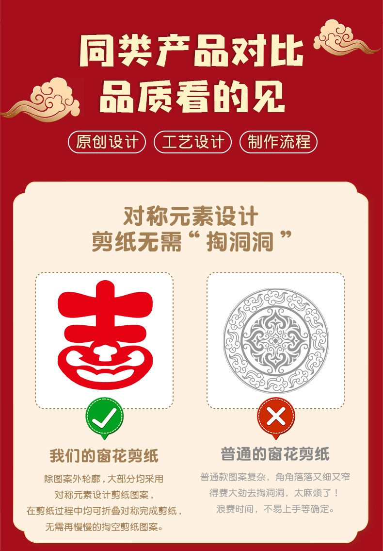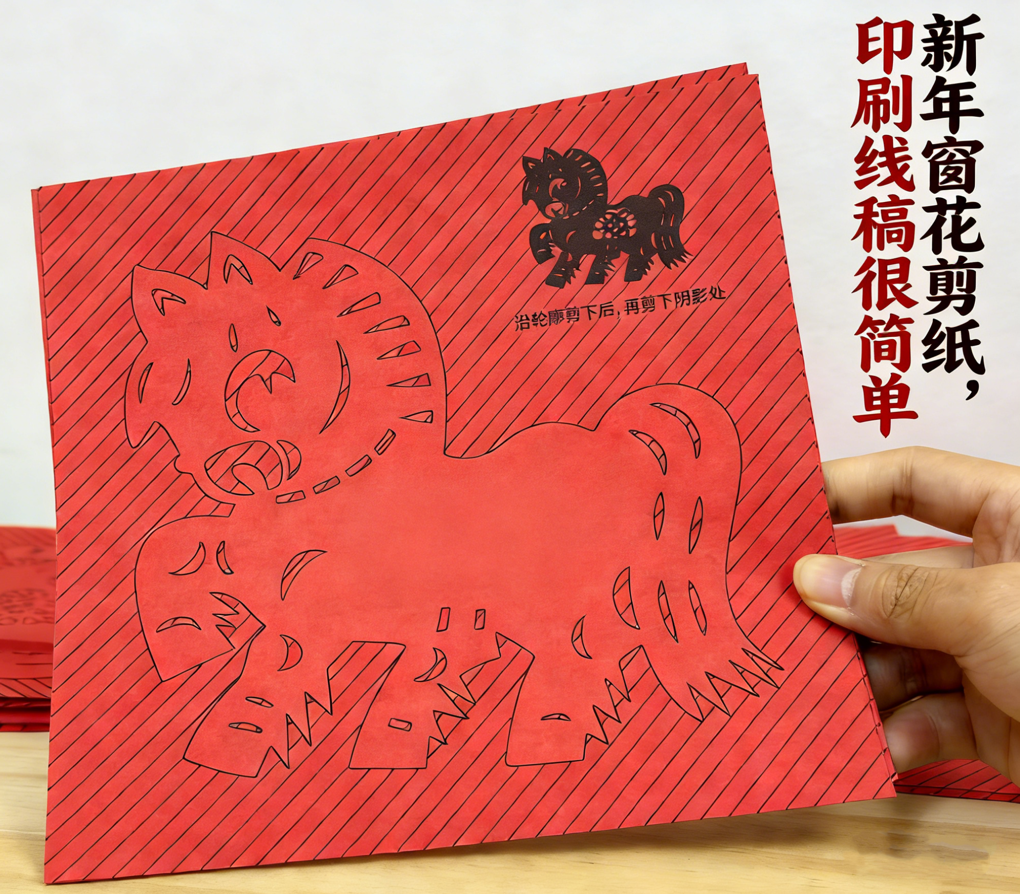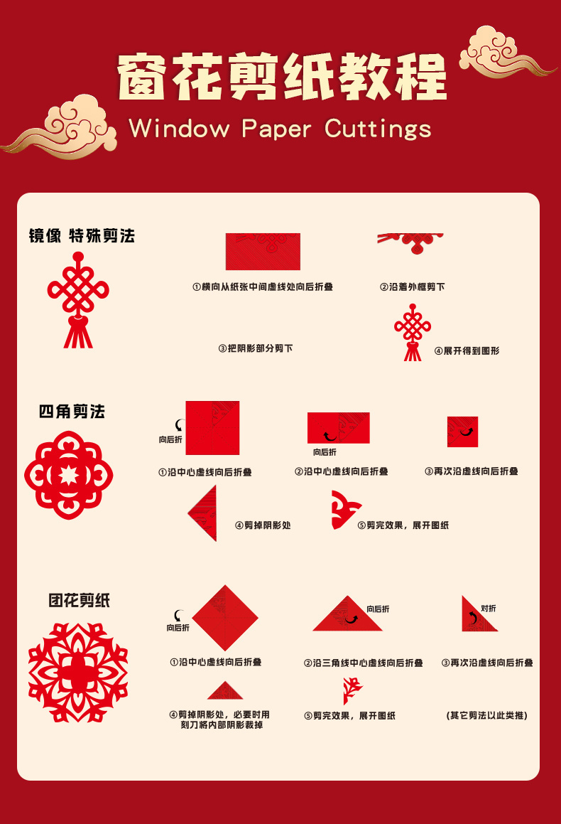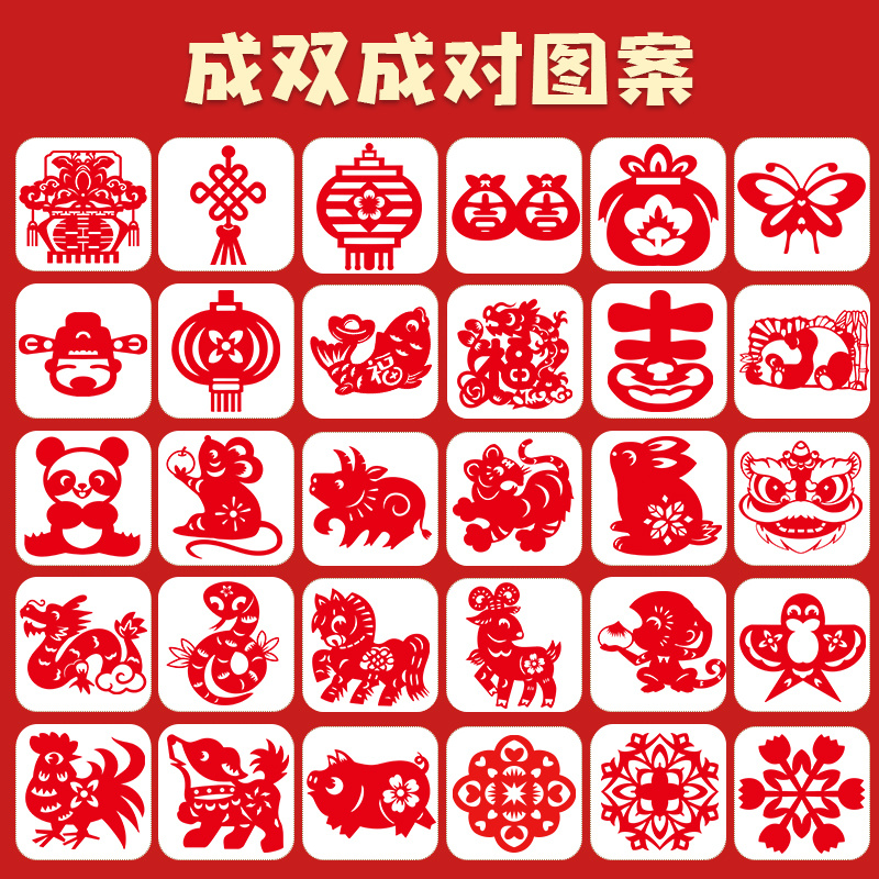 中国风传统剪纸实拍 传承非遗手工,贴在家里过年风味慢慢! ✔️中国红,70-80g易剪纸很厚实,带印刷线稿 折叠好沿着线剪就能🙌得到精美的剪纸咯 成品超好看(♥∀♥)