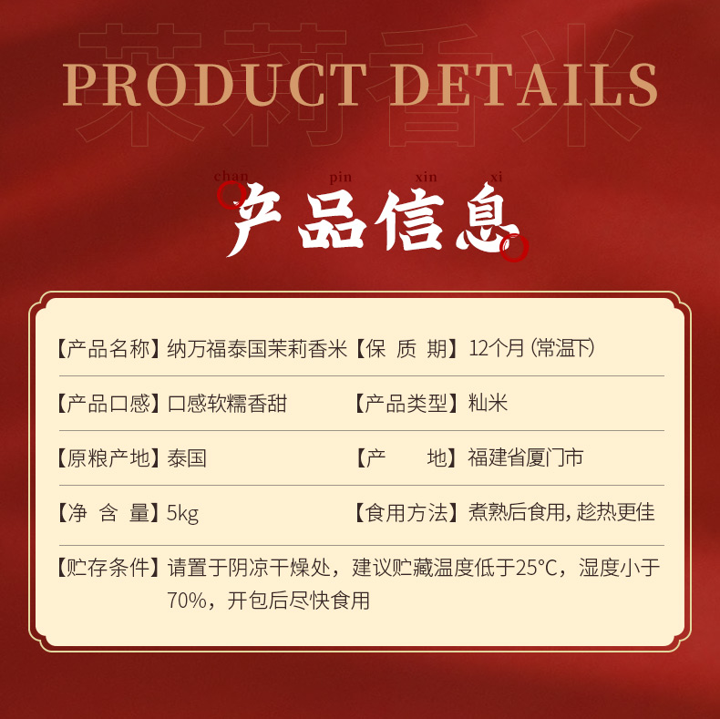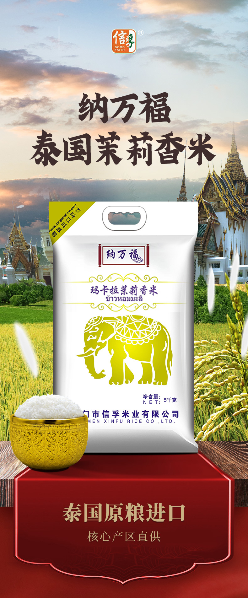 信孚纳万福玛卡拉茉莉香米(5kg/袋)生产日期: 2月