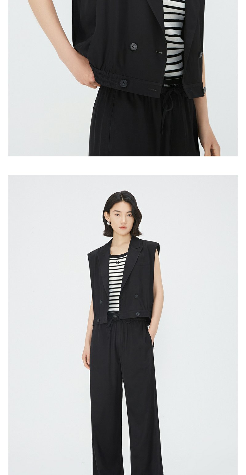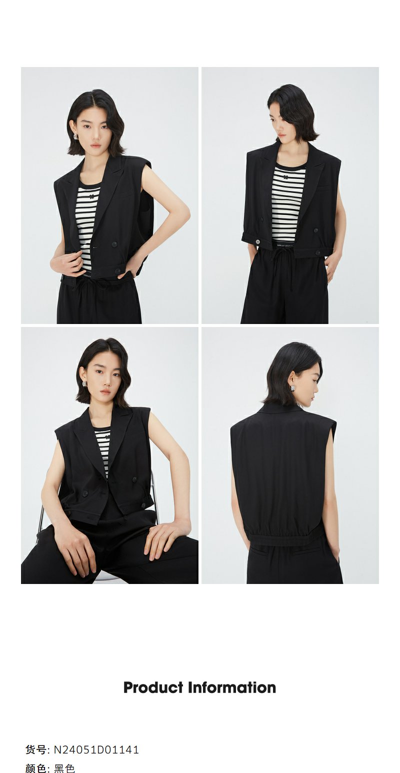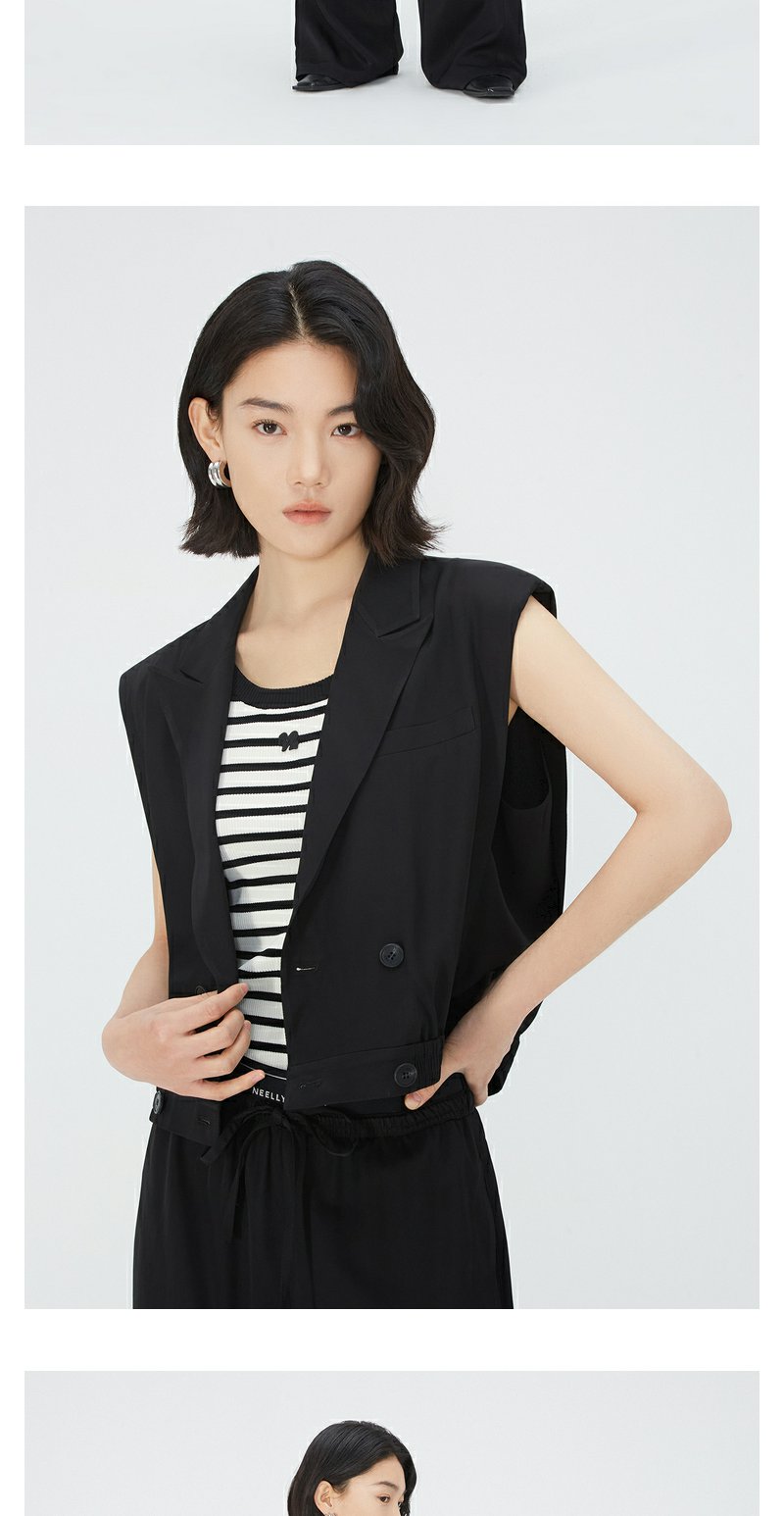 NEELLY纳俪商场同款V领双排扣马甲女夏季黑色洋气时髦高腰短外套N24051D01141