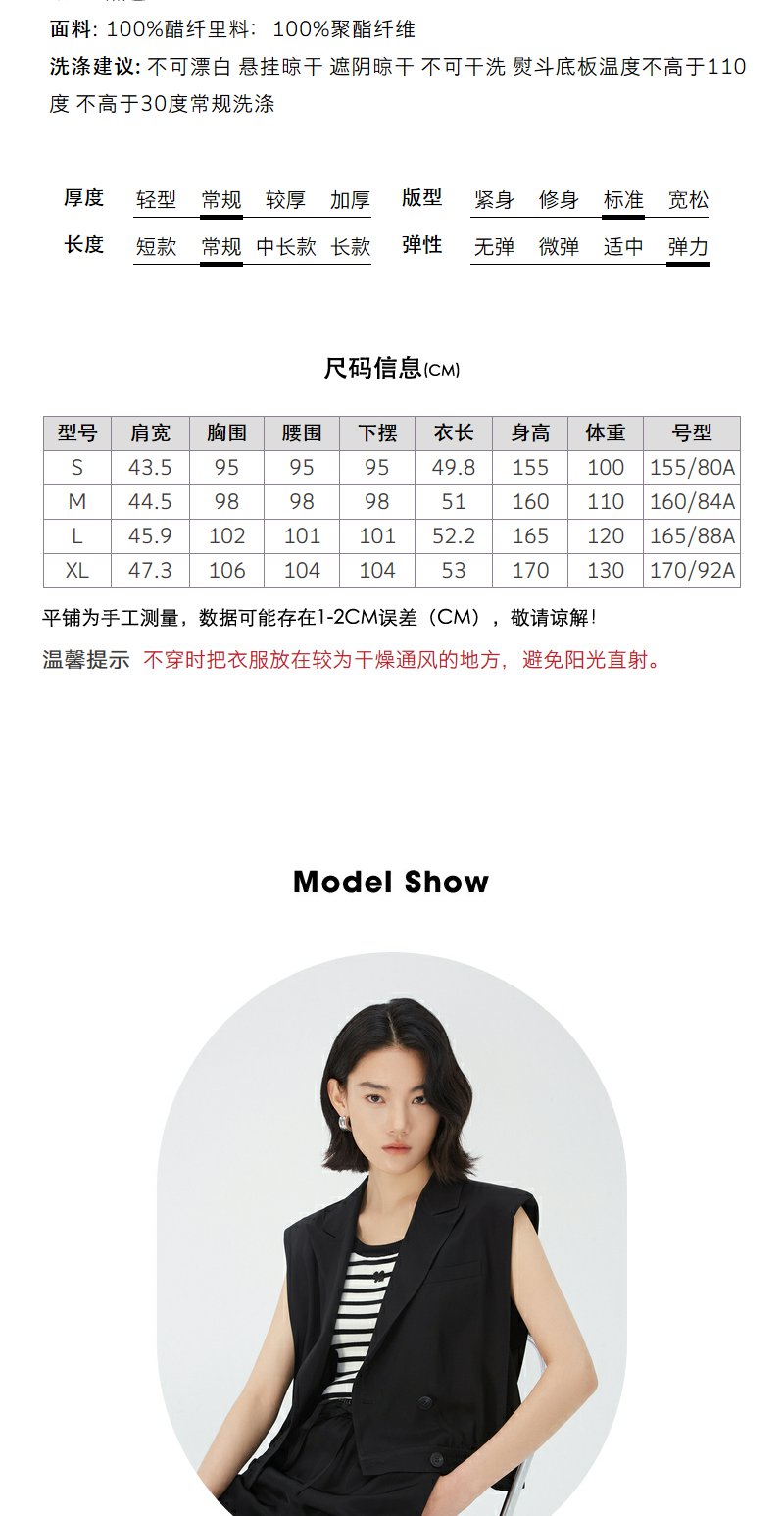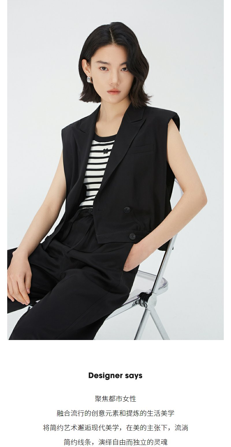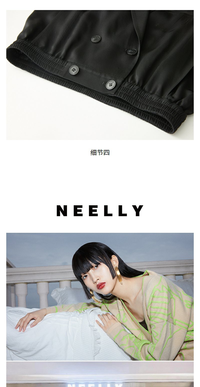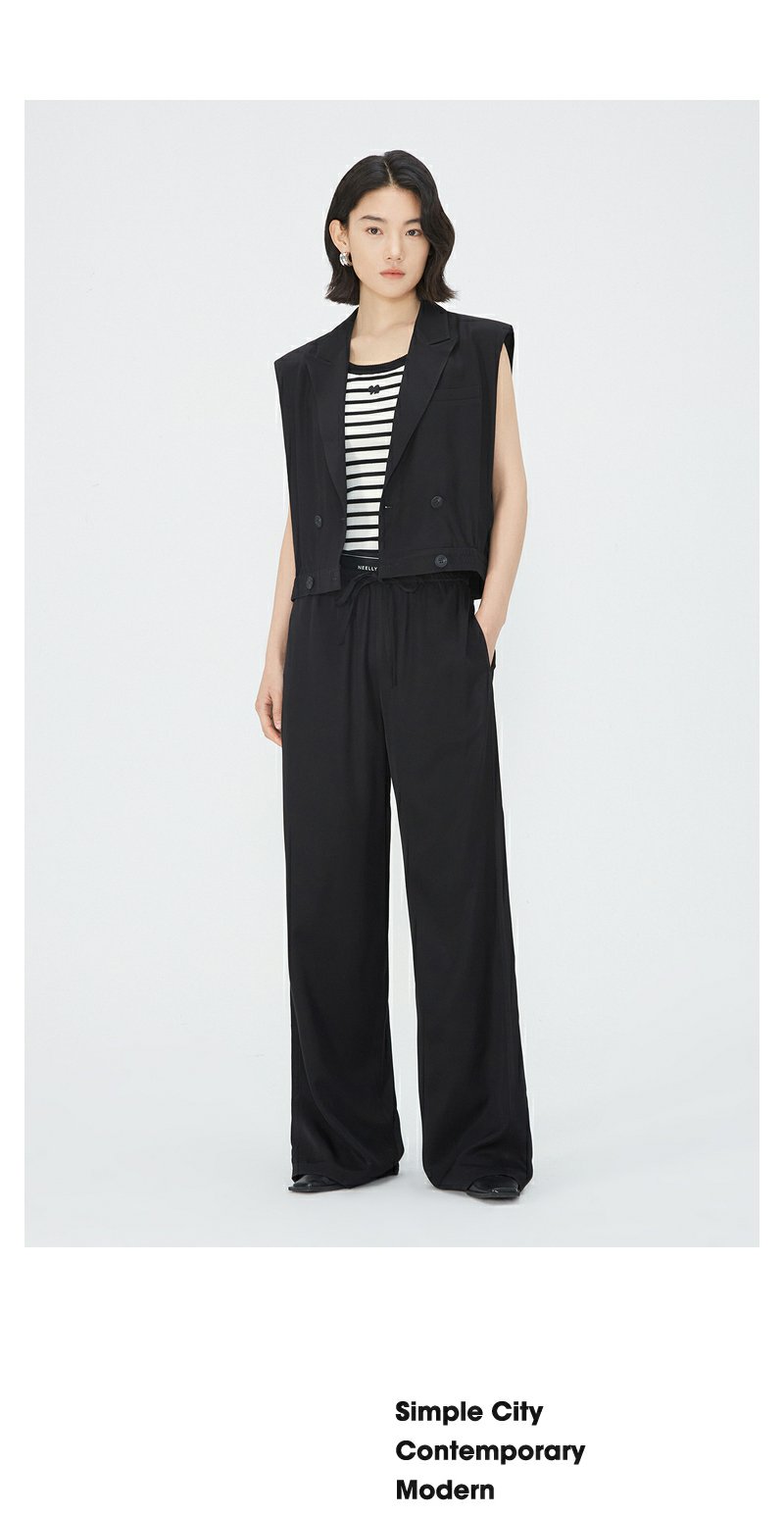 NEELLY纳俪商场同款V领双排扣马甲女夏季黑色洋气时髦高腰短外套N24051D01141