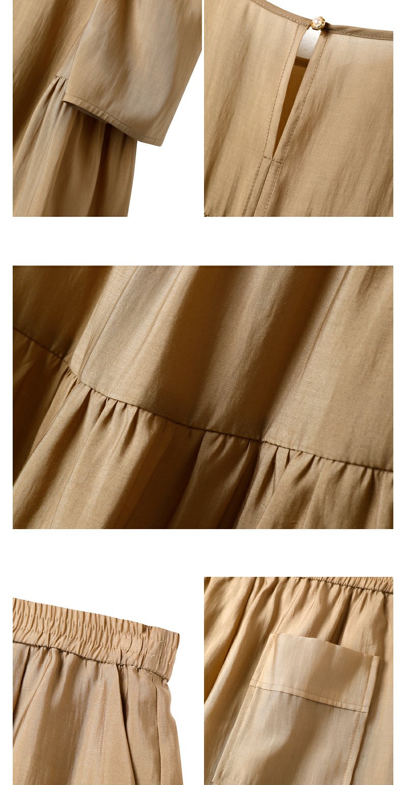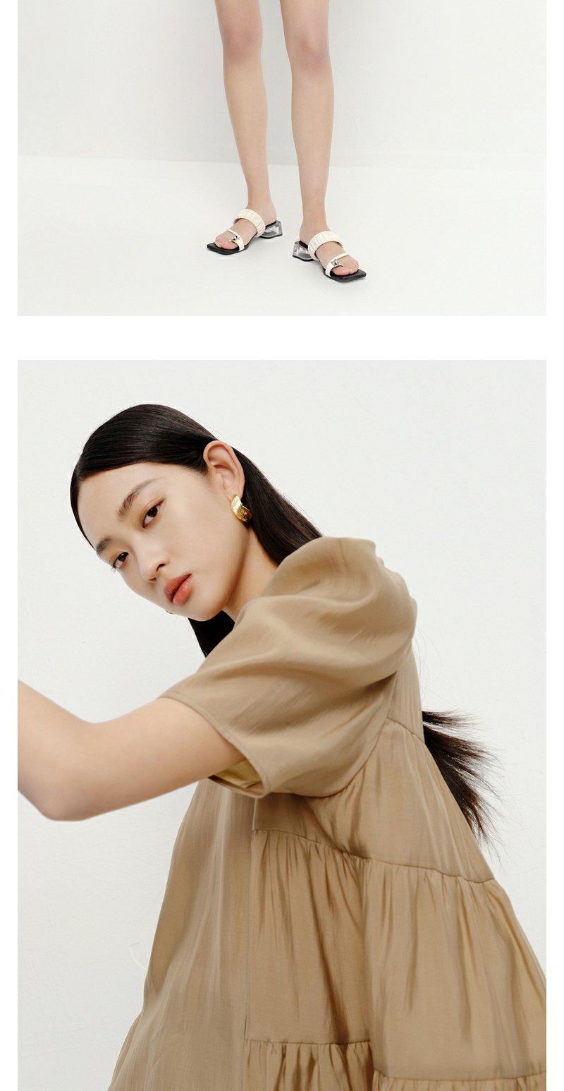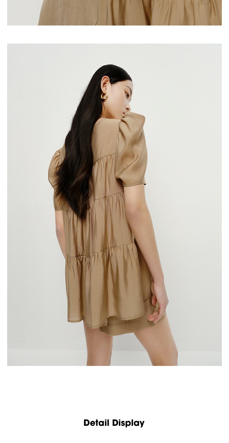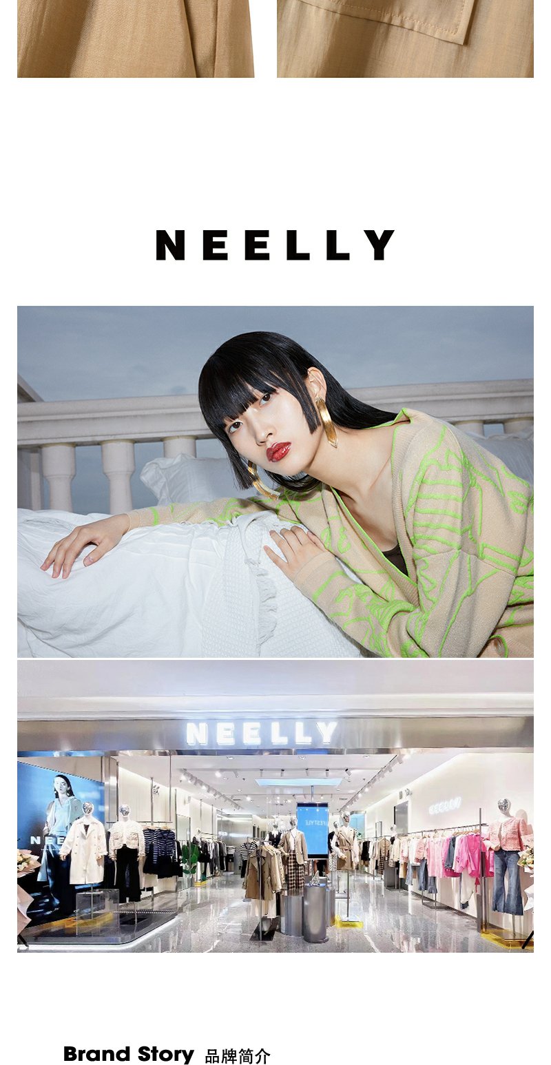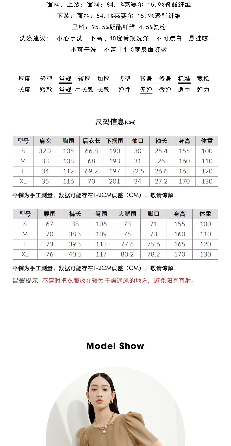 NEELLY纳俪商场同款夏季新款泡泡袖天丝衬衫女圆领套装阔腿短裤N23053Z01186