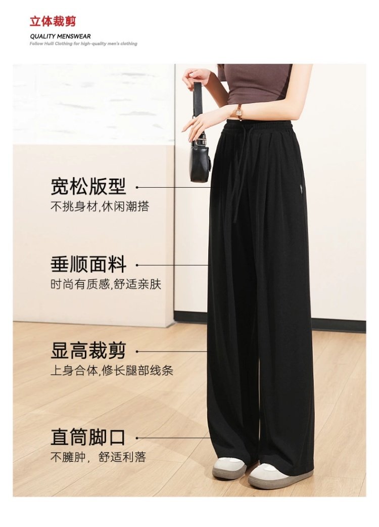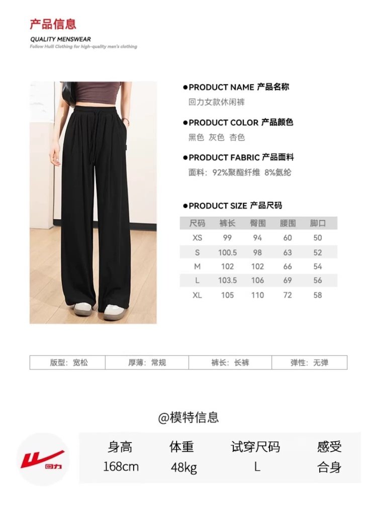 回力阔腿裤女2025秋季新款高腰直筒裤子宽松显瘦黑色休闲运动长裤