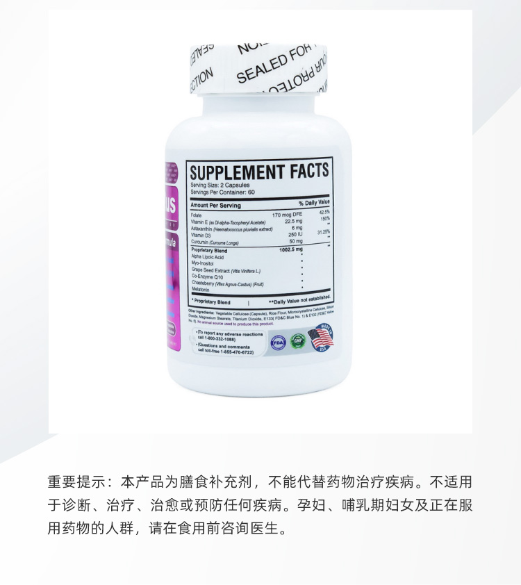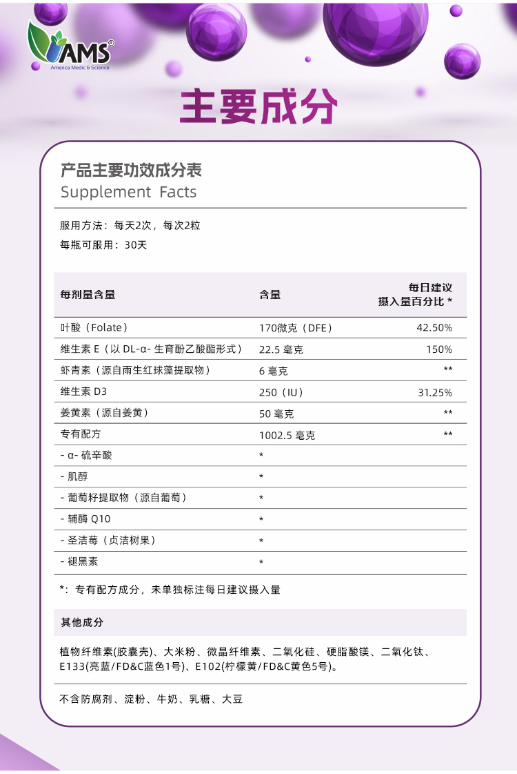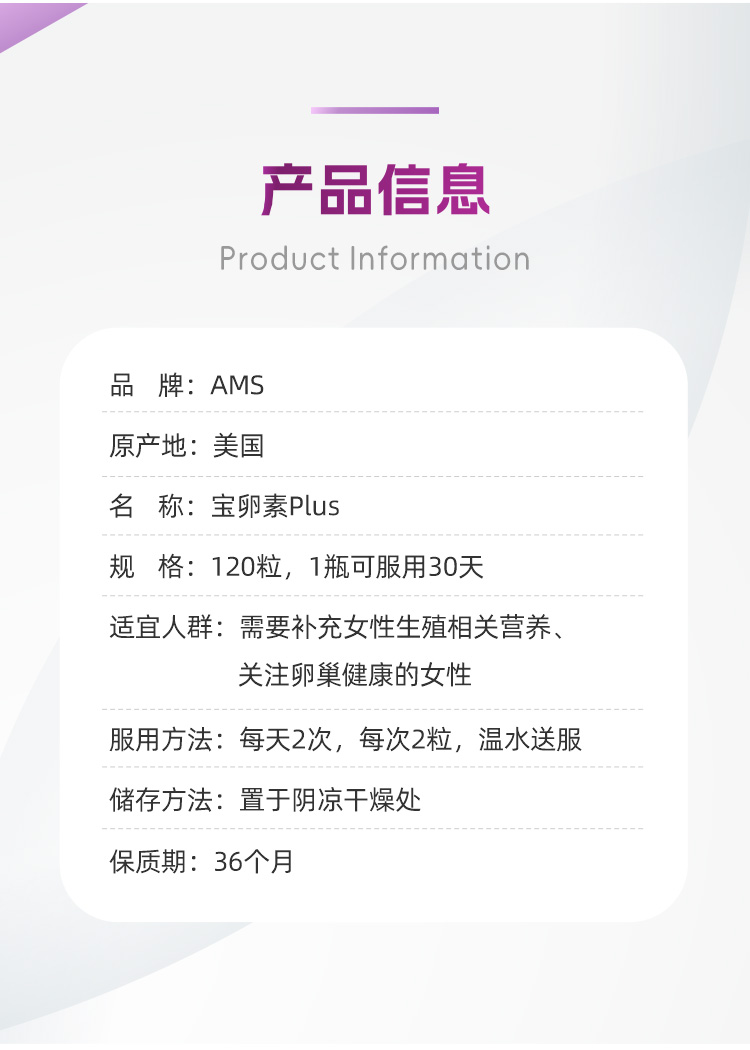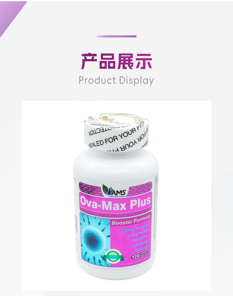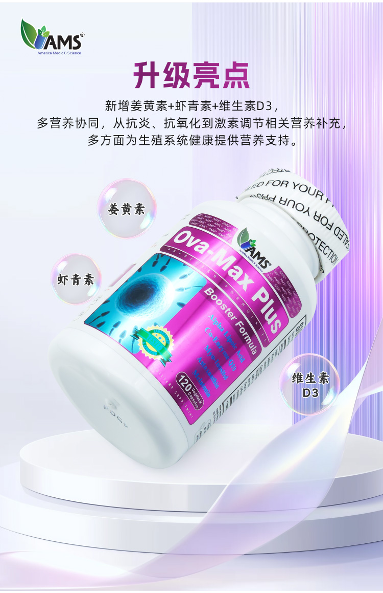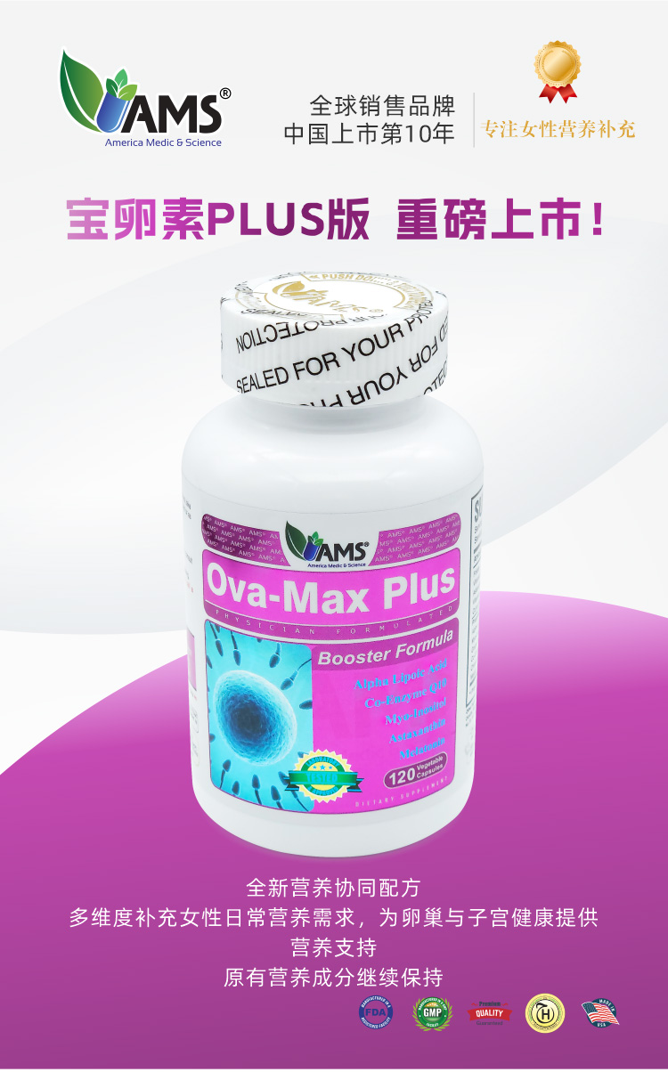 美国宝卵素加强版 AMS OvaMaxPLUS 升级版加量不加价 120粒/瓶