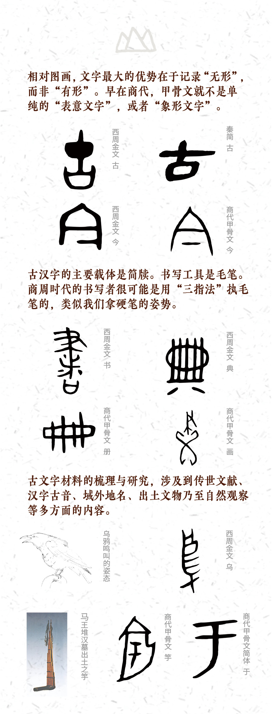 这是一本写给文史爱好者、书法研习者、语文教师和学生朋友们的古汉字通识读本, 用900多幅出土古文字例字, 介绍200多个常用汉字的源流, 旨在揭示关于汉字的“常识”中可能存在的问题, 探讨分析汉字源流的正确方法, 介绍甲骨、金文、简帛等出土文献及相关研究取得的新知。