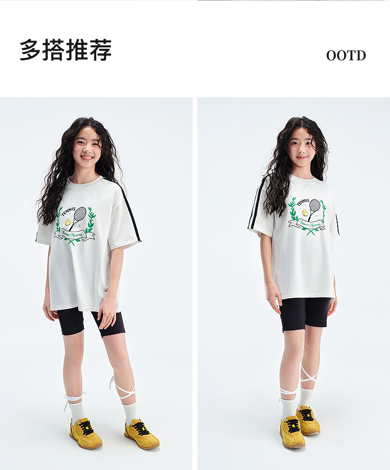 笛莎Deesha 2026年夏季新款青少年撞色插肩袖索罗娜原纱防晒吸湿速干T恤