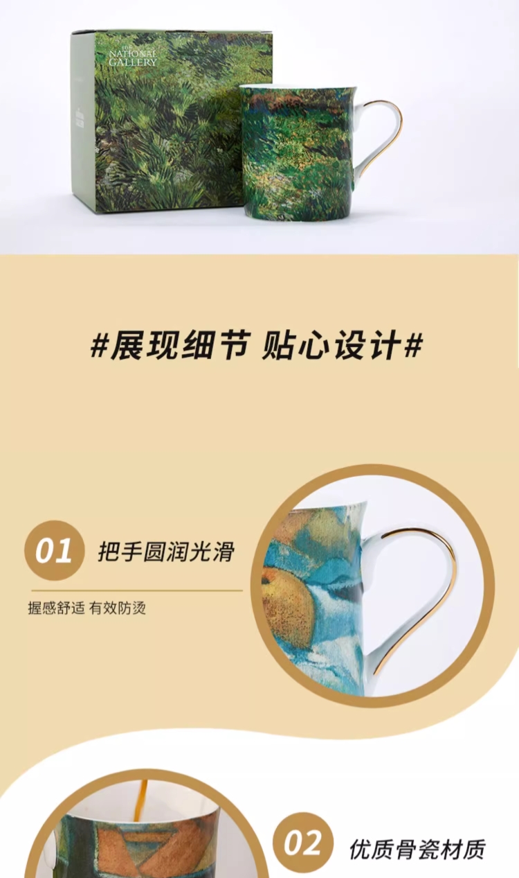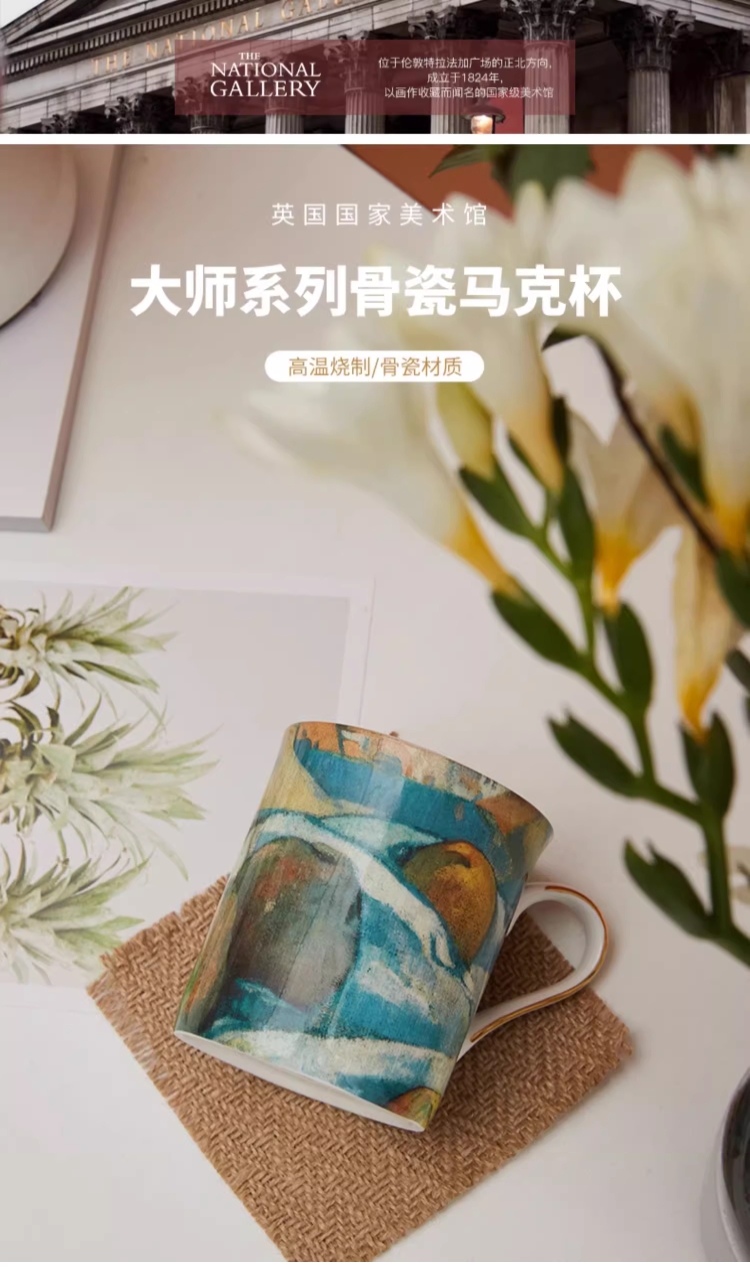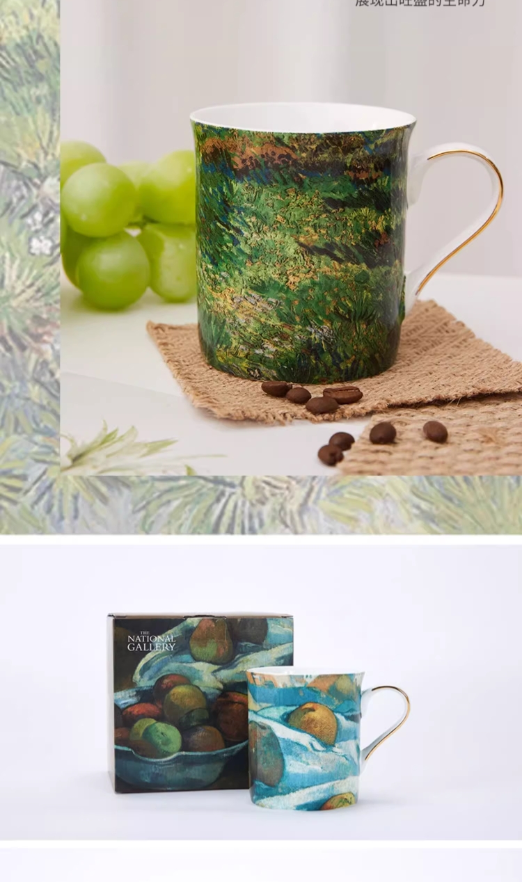 The National Gallery大师系列 高更苹果 梵高长草地 骨瓷马克杯320ml