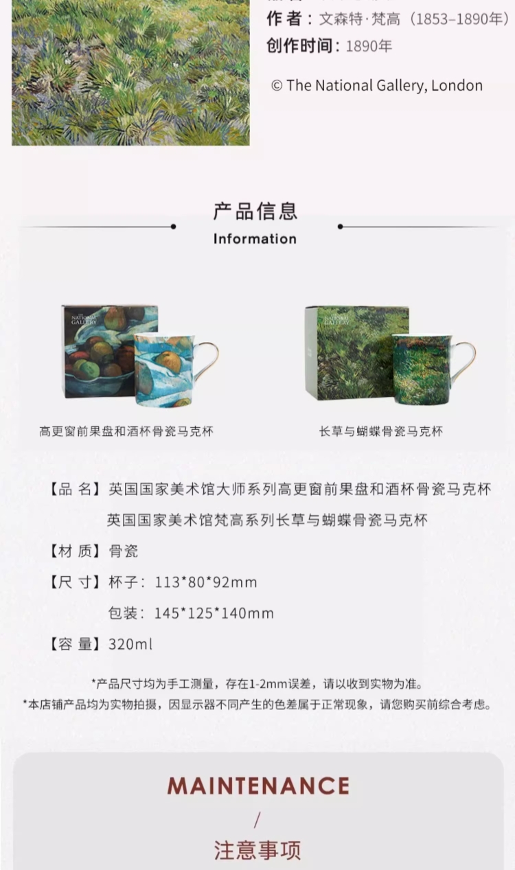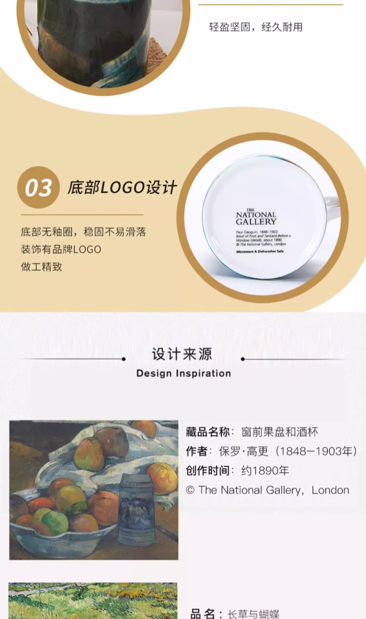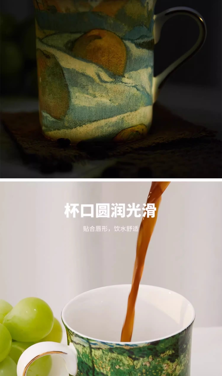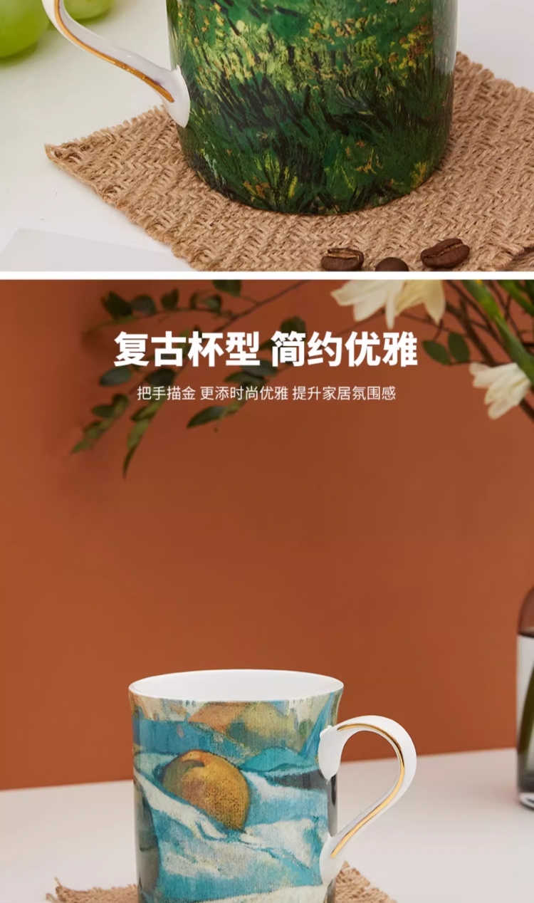 The National Gallery大师系列 高更苹果 梵高长草地 骨瓷马克杯320ml