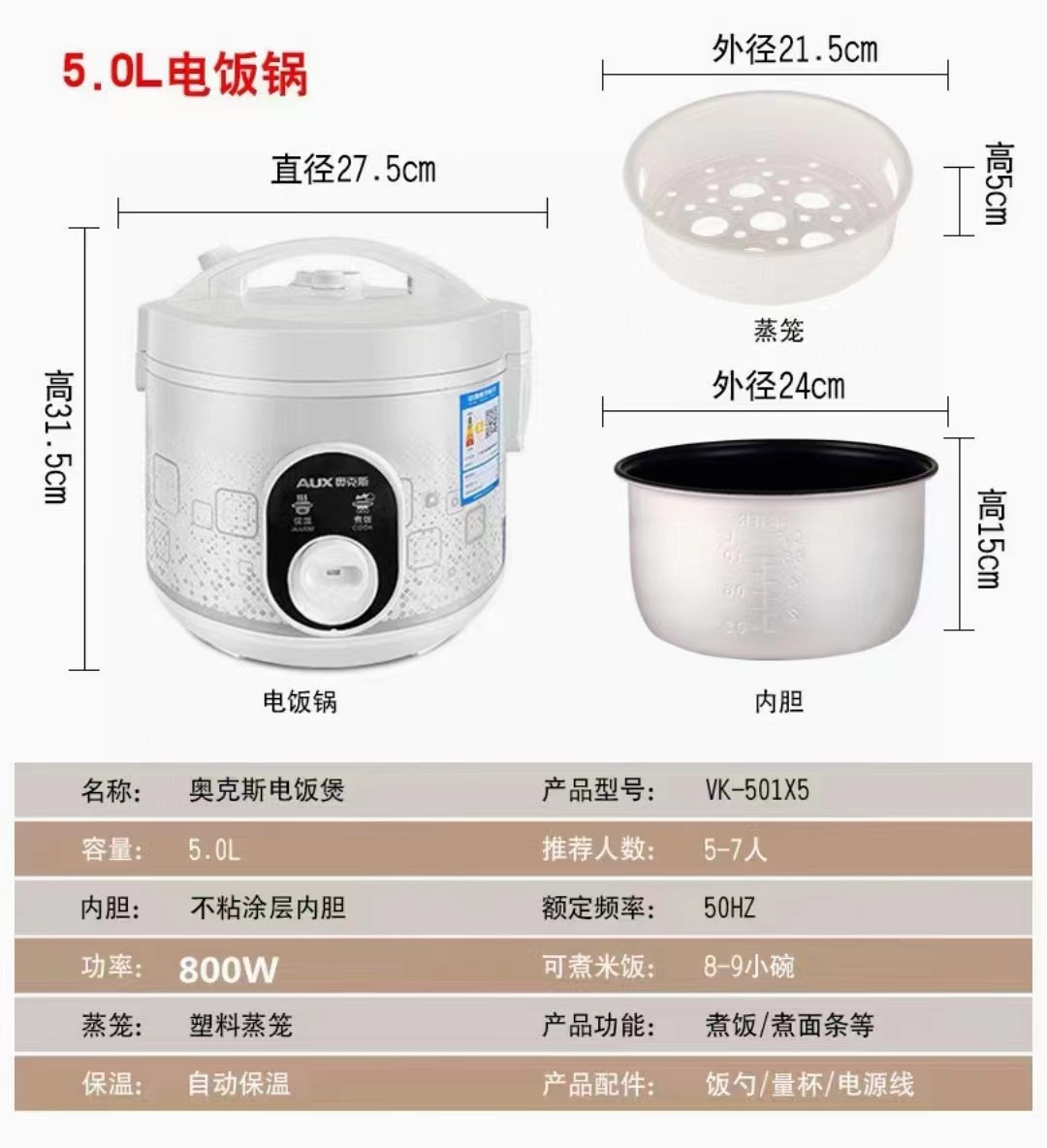 奥克斯 5L 多功能 蒸煮电饭锅 智能电饭煲 家用大容量 VK-501X5