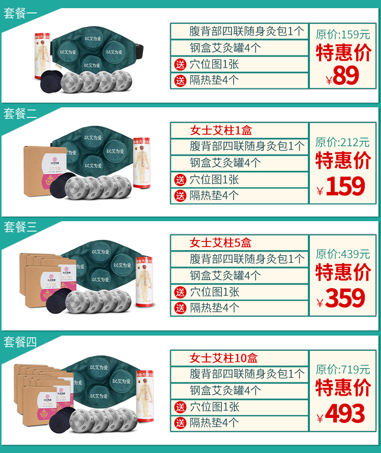 以艾为爱 腰腹部四联 无烟随身灸 温灸器(实惠装)