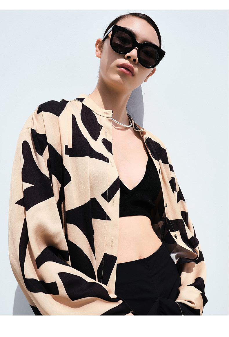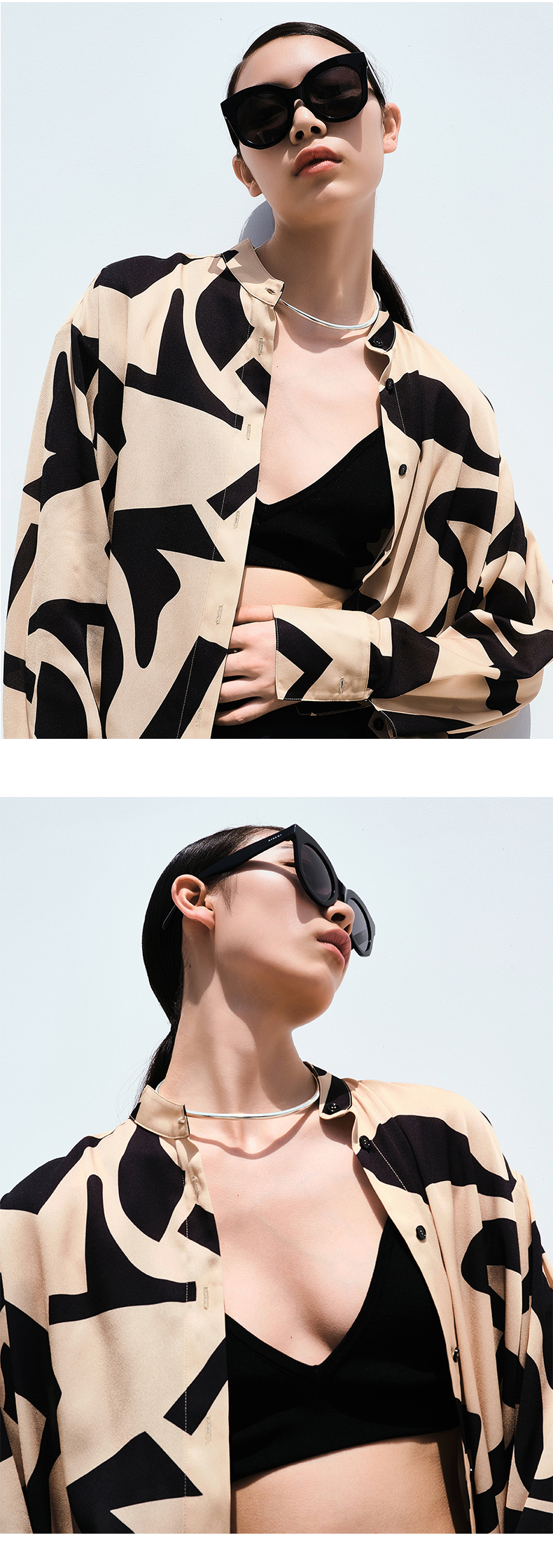 HIDEMI本期必入拉链褶皱廓形衬衫 黑色/白色
