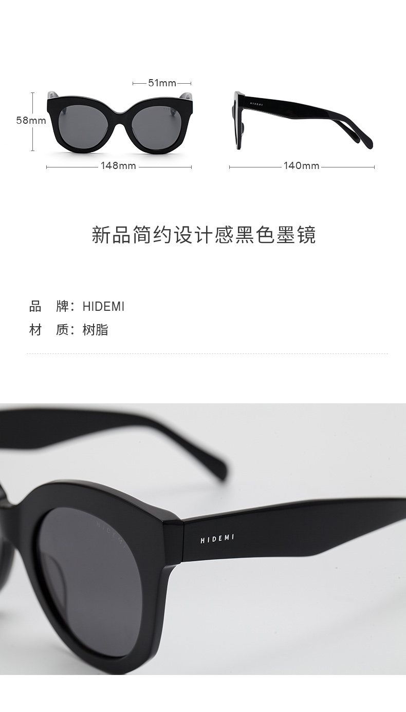 HIDEMI新品简约设计感黑色墨镜