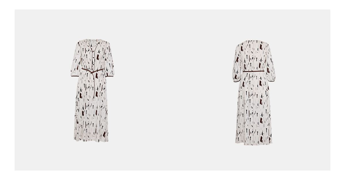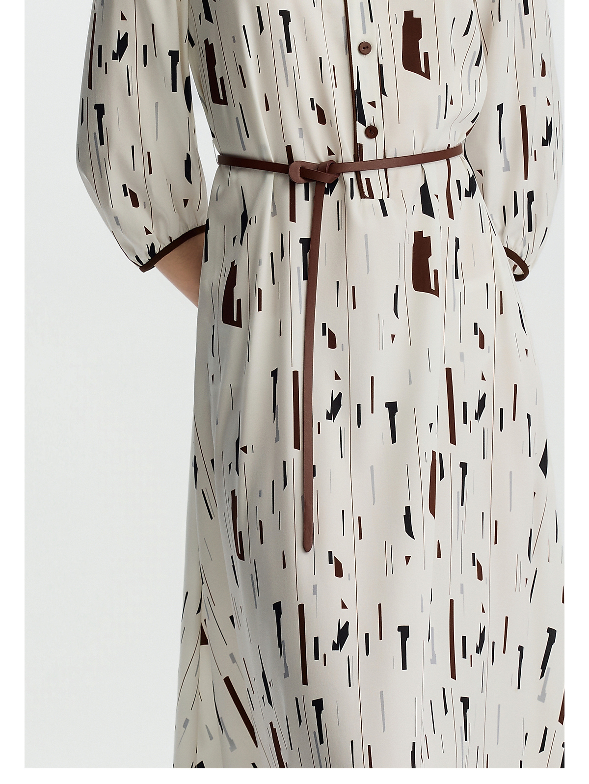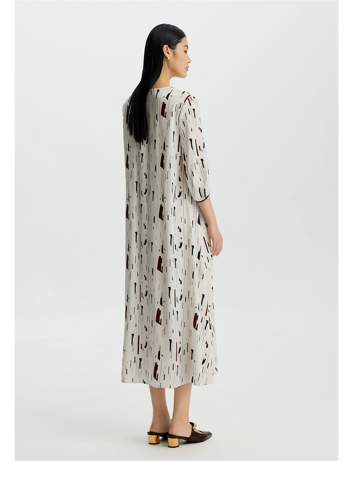 PURE TOUCH女装26夏新款印花连衣裙七分灯笼袖弹力斜纹蚕丝中长裙