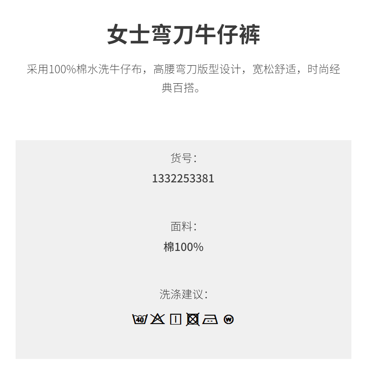 PURE TOUCH女装 25秋冬新款弯刀牛仔裤高腰纯棉阔腿宽松长裤
