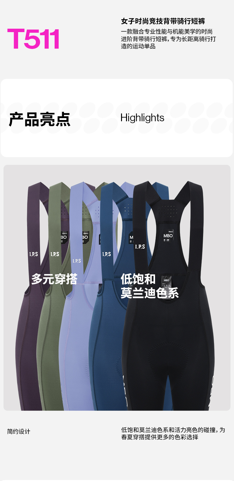 MBO女子肌理背带骑行短裤 25春夏新款EIT双箭头骑行裤T511 (经销商专拍链接,非经销商拍单不发货)
