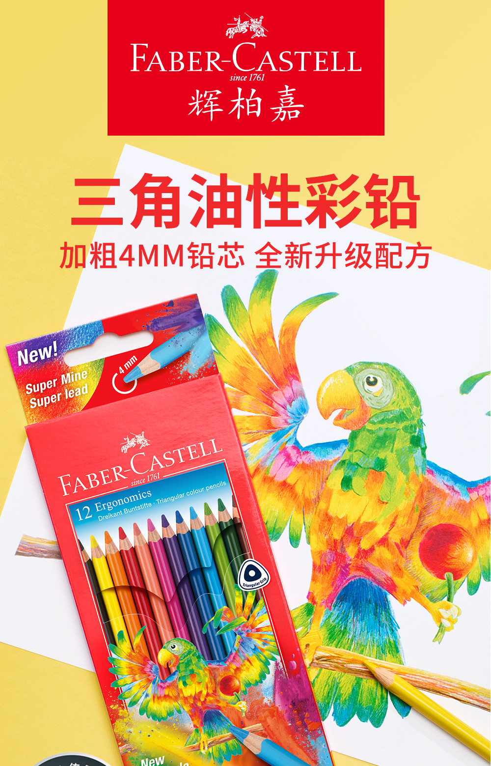 【福利购2026】【新品】德国辉柏嘉三角笔杆油性彩铅加粗4mm铅芯小学生儿童幼儿园初学者绘画手绘彩铅笔