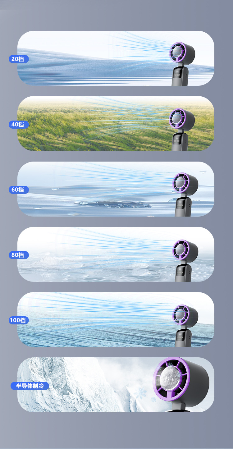 【199档风力调节、挂脖手持两用设计】新款手持制冷风扇199档制冷折叠便携式涡轮迷你半导体冰敷小风扇.TA