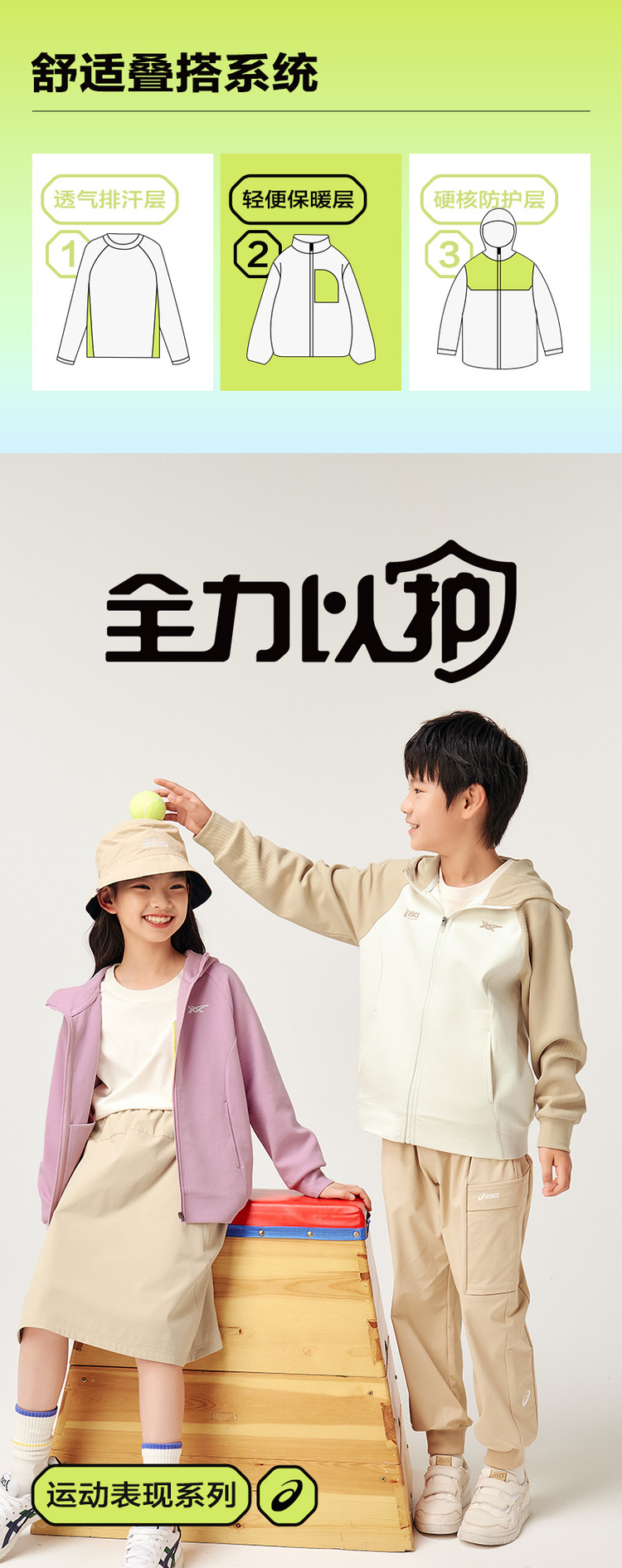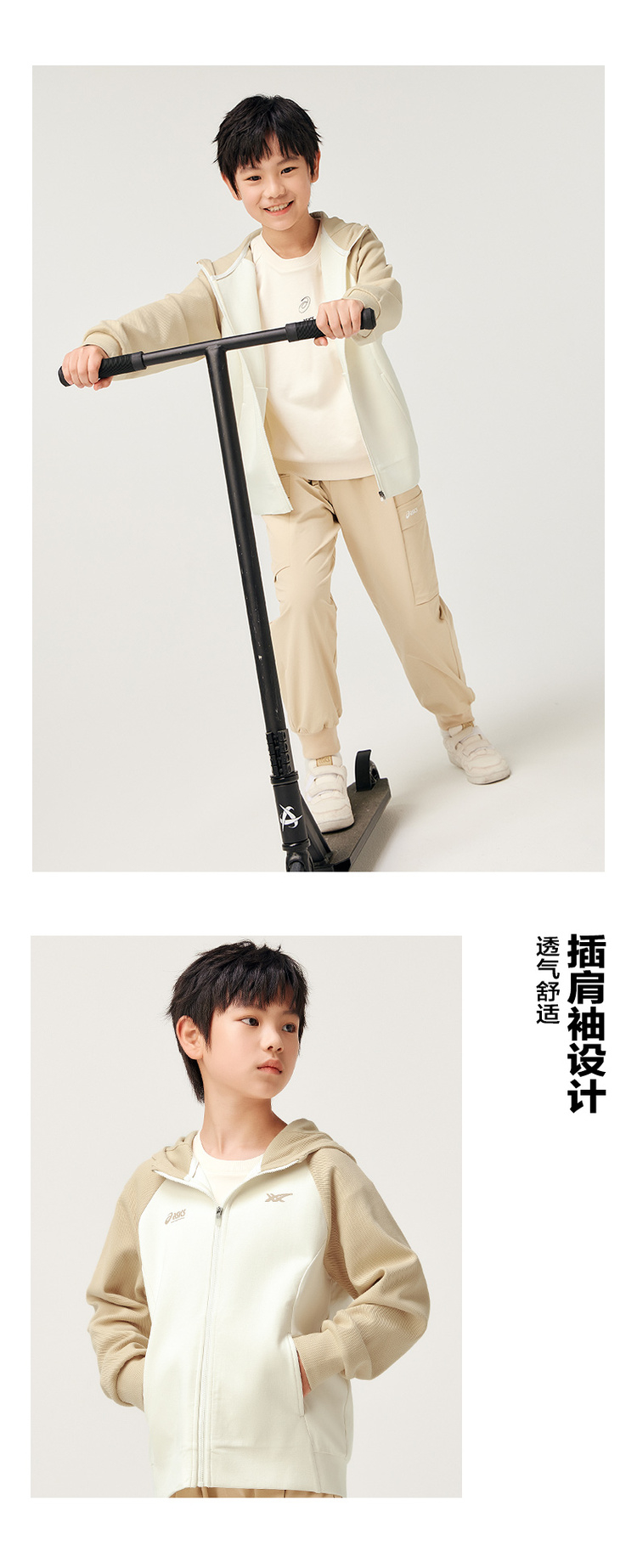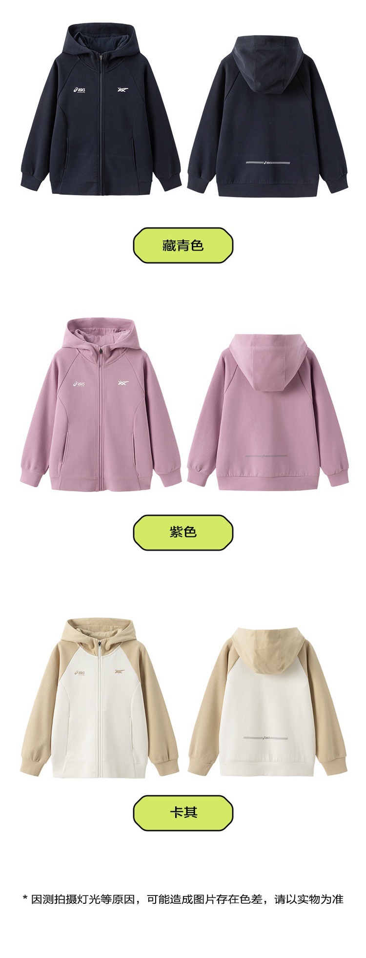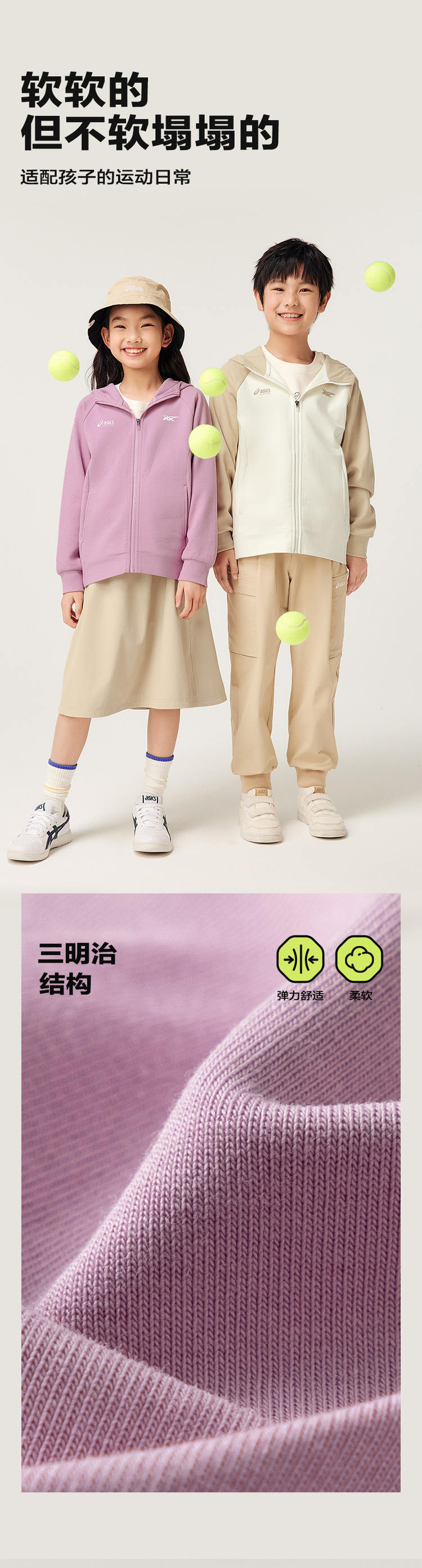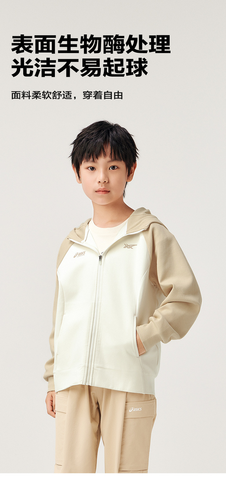 ASICS/亚瑟士童装中大童中性款插肩袖针织外套2024秋百搭时尚便服
