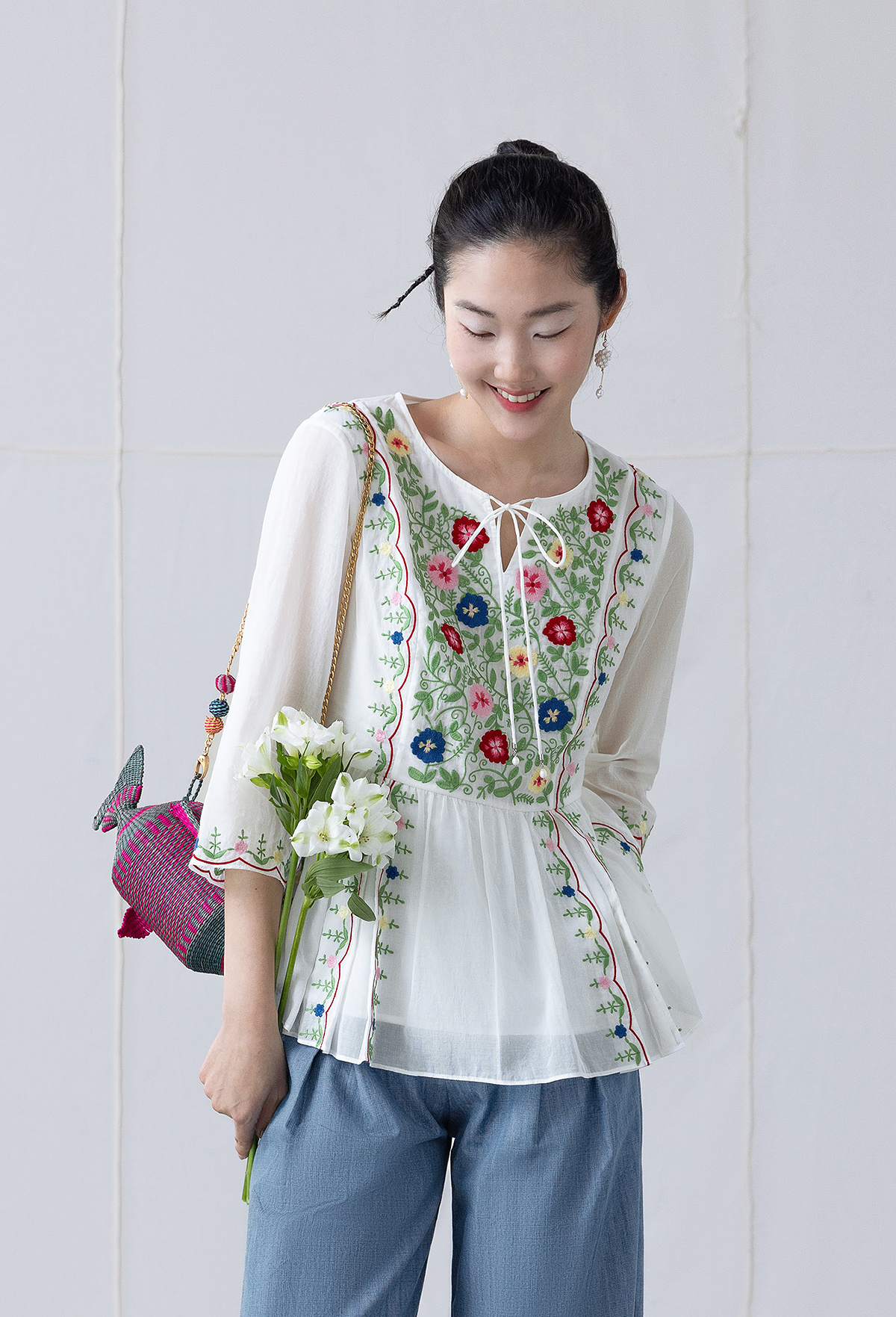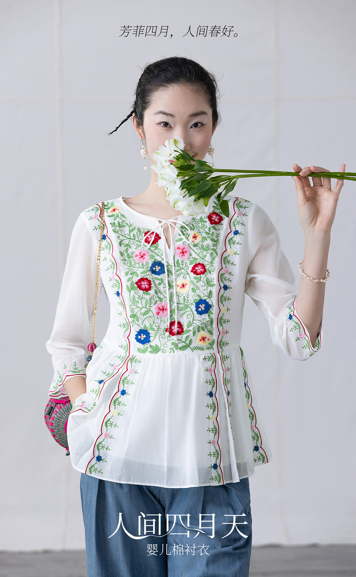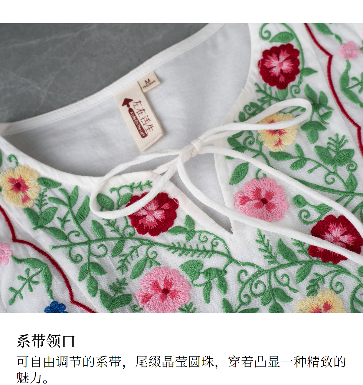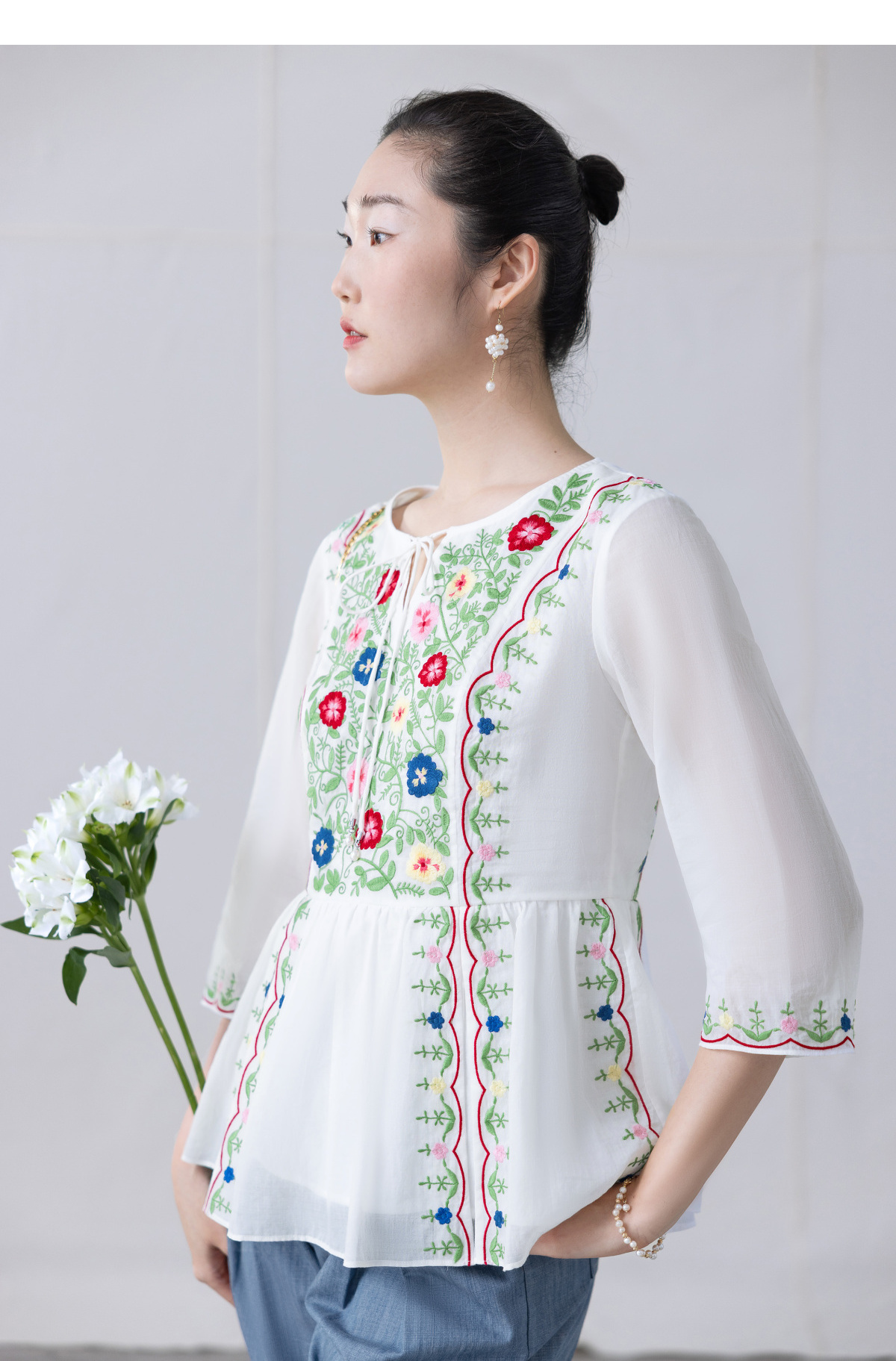 【林栖设计小店】【现货】婴儿棉衬衣墨西哥刺绣宽松显瘦2025夏季新品七分袖上衣女1952058