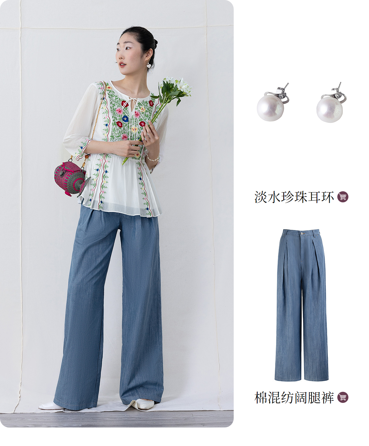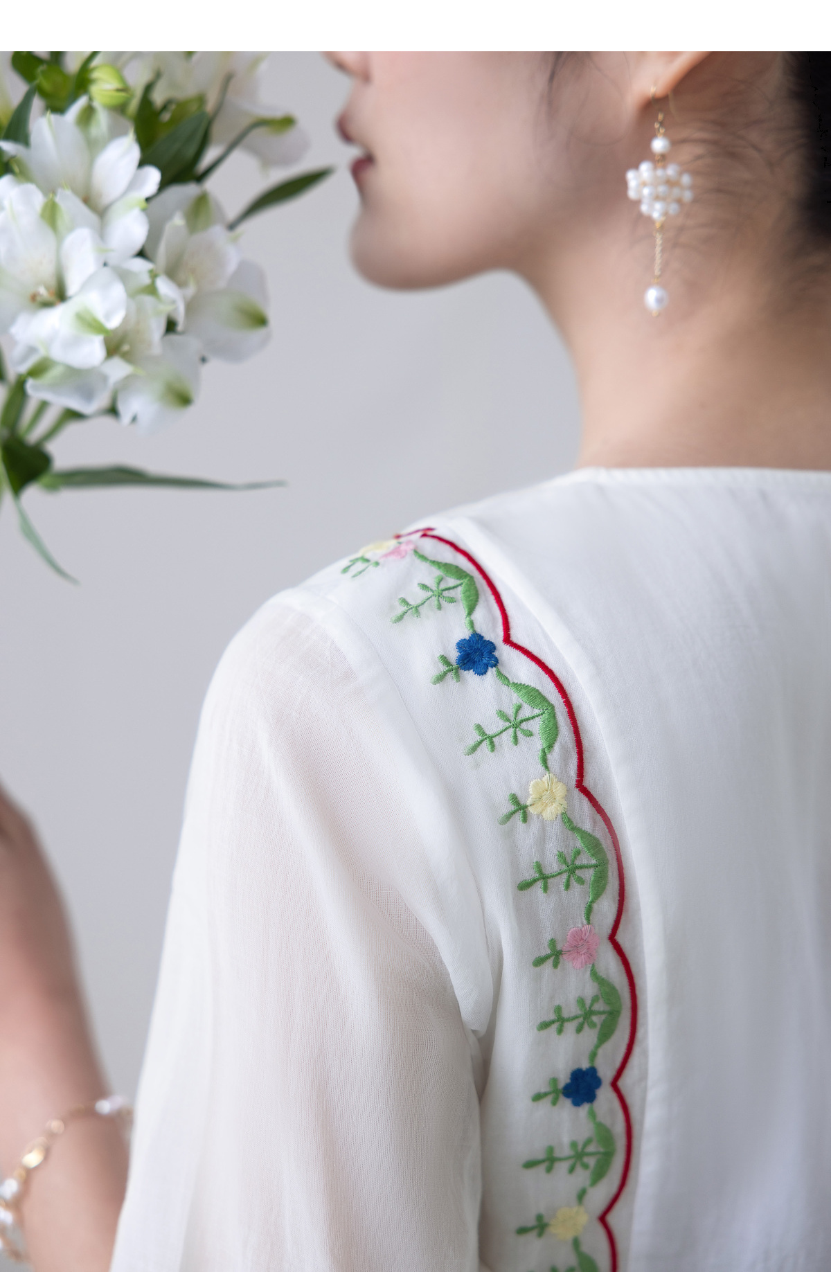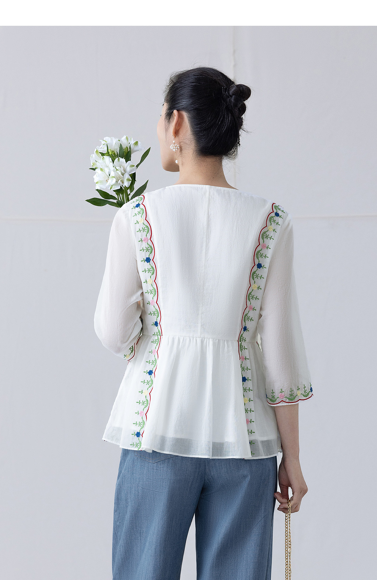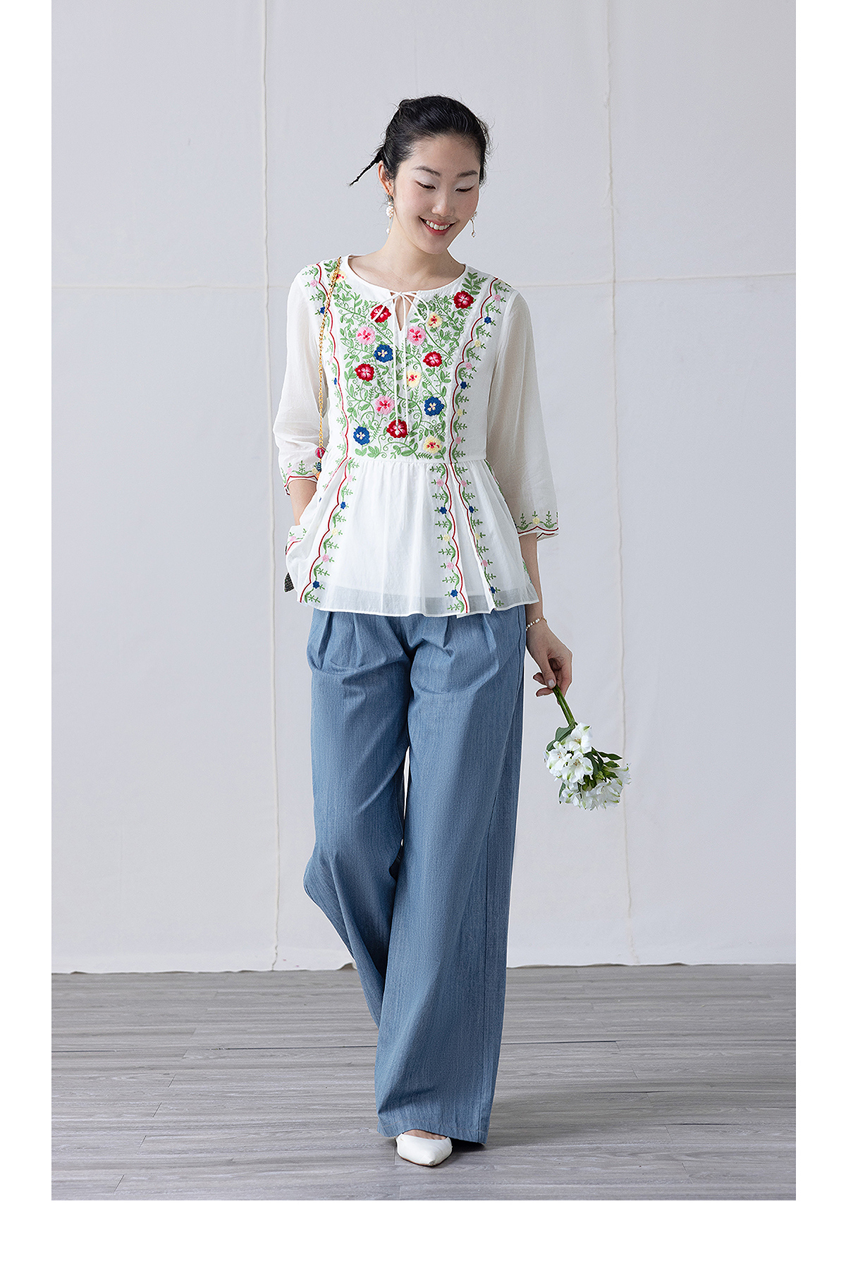 【林栖设计小店】【现货】婴儿棉衬衣墨西哥刺绣宽松显瘦2025夏季新品七分袖上衣女1952058