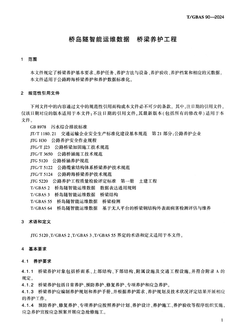 书名:桥岛隧智能运维数据 桥梁养护工程T/GBAS 90—2024